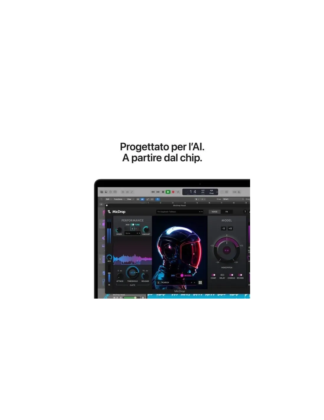 Caratteristiche principali- CON I SUPERPOTERI DI M5 – Oltre a una CPU e una memoria più veloci, il chip M5 ha una GPU più potente con un Neural Accelerator in ogni core, per mettere il turbo quando si usa l’AI. Così puoi sfrecciare a velocità incredibili anche nei lavori più complessi.- PROGETTATO PER APPLE INTELLIGENCE – Apple Intelligence è il sistema di intelligenza personale che rende più facile scrivere, creare e fare tutto ciò che vuoi. E grazie a una protezione totale della privacy, hai la certezza che nessuno potrà accedere ai tuoi dati, nemmeno Apple.- FINO A 24 ORE DI BATTERIA – MacBook Pro 14" ti dà performance incredibili costantemente, anche quando non è collegato alla corrente.- I CHIP APPLE METTONO IL TURBO ALLE APP – Tutti i tuoi programmi preferiti, da Microsoft 365 a Adobe Creative Cloud, vanno a tutta velocità su macOS.- SE AMI IL TUO IPHONE, AMERAI ANCHE IL MAC – Il Mac funziona in perfetta sintonia con gli altri dispositivi Apple. Puoi fare copia e incolla dall’iPhone al Mac. E anche usare il computer per inviare messaggi di testo o fare e ricevere chiamate FaceTime.- BRILLANTE DISPLAY PRO – Il display Liquid Retina XDR da 14,2" ha 1600 nit di luminosità di picco, fino a 1000 nit di luminosità costante e un contrasto di 1.000.000:1.- VIDEOCAMERA E AUDIO EVOLUTI – La videocamera Center Stage da 12MP ti tiene sempre al centro della scena, mentre i tre microfoni di livello professionale e i sei altoparlanti con audio spaziale e supporto per Dolby Atmos garantiscono un sonoro ottimale.- SI CONNETTE A TUTTO – Questo MacBook Pro ha tre porte Thunderbolt 4 e una porta MagSafe 3 per la ricarica, uno slot SDXC card, una porta HDMI e un jack per le cuffie. E ti permette di collegare fino a due monitor esterni.- PRIVACY E SICUREZZA SONO DI SERIE – Ogni Mac è dotato di robuste protezioni contro virus e malware. Se perdi il tuo Mac o ti viene rubato, l’app Dov’è può aiutarti a ritrovarlo. FileVault si assicura che i tuoi file siano protetti dalla crittografia, così solo tu puoi accedere. E gli aggiornamenti di sicurezza gratuiti contribuiscono a proteggerlo ancora di più.Sono forti e vanno forte.M5 si aggiunge a M4 Pro e M4 Max formando una squadra straordinaria: sono i tre chip più evoluti mai progettati per un portatile professionale. Con le fenomenali prestazioni della CPU single-thread e multi-thread e una memoria unificata più rapida, questi chip ti danno una velocità che sfiora l’impossibile. E grazie ai potenti Neural Accelerator di M5, sfrecci anche nelle attività che usano l’intelligenza artificiale.Fino a 6 volte più veloce con l’AI rispetto a M1Nel chip M5 ogni core della GPU ha un Neural Accelerator, per mettere il turbo all’intelligenza artificiale, per esempio durante la generazione di immagini con modelli di diffusione o nell’elaborazione dei prompt dei modelli linguistici di grandi dimensioni (LLM). E grazie al Neural Engine 16-core, base portante di Apple Intelligence, l’AI on-device è più potente e consuma meno batteria.M5Con M5, chi studia, lavora o ha voglia di creare può contare su una velocità eccezionale e su potenti funzioni AI on-device.Mac fa volare le app con AI.Ottimizzato per gestire app all’avanguardia nell’uso dell’intelligenza artificiale, Mac spinge al massimo programmi come DiffusionBee per la generazione di immagini, come Msty AI e LM Studio per i modelli LLM, e come Topaz Video per l’ottimizzazione video.Strumenti di AI nelle app: la magia è su Mac.Trasforma le registrazioni vocali grazie a plug-in basati sull’AI come MicDrop per Logic Pro. E ritocca le immagini apportando in pochi secondi modifiche complesse con il Riempimento generativo di Adobe Photoshop.Apple Intelligence, al tuo servizio.Con Apple Intelligence scrivere, creare e fare tutto ciò che vuoi diventa più facile. Trasforma una nota preparata al volo in un annuncio impeccabile. Elimina gli elementi di distrazione dalle foto con lo strumento Ripulisci. Crea immagini sfruttando i nuovi stili di ChatGPT su Image Playground. E usa le azioni intelligenti nell’app Comandi Rapidi per costruirti le automazioni che preferisci: per esempio confrontare la trascrizione di un audio con gli appunti che hai preso ed estrarre informazioni da un PDF. Apple Intelligence è l’intelligenza artificiale pensata apposta per te.Batteria. Un giorno intero di autonomia. Molla la presa.MacBook Pro ha l’autonomia migliore di sempre su un Mac: fino a 24 ore. E con la ricarica rapida arrivi al 50% della carica in soli 30 minuti. Tutti i modelli mantengono lo stesso livello di prestazioni anche quando non sono collegati alla corrente, così puoi concentrarti sulle tue attività senza perdere tempo a cercare una presa.macOS Tahoe. Ha un’altra faccia, ma il carattere rimane Mac.Il design con Liquid Glass dà a macOS Tahoe un look rinnovato, ma l’esperienza è la stessa che ami e conosci già. Grazie ai nuovi modi per lavorare meglio, interagire all’istante con iPhone e sfruttare al massimo Apple Intelligence, questa è la versione di macOS più potente e bella di sempre.Liquid Glass, il look da fare tuo.Con il nuovo design, il display sembra ancora più ampio e hai più possibilità di personalizzazione. Scegli tra icone chiare e scure, o prova l’elegante look trasparente.Spotlight passa subito all’azione.Con Spotlight puoi fare di tutto senza dover alzare un dito dalla tastiera: inviare un messaggio, eliminare una nota e tanto altro.“Traduzione in tempo reale” parla la tua linguaUsa questa funzione per tradurre automaticamente i testi nell’app Messaggi.Comandi rapidi. Come per magia.Velocizza il lavoro con comandi rapidi che si attivano da soli a un’ora specifica o quando esegui determinate azioni: per esempio puoi organizzare in automatico le immagini in base al loro contenuto.Mac + iPhone. Insieme sono ancora meglio.Mac e iPhone sono straordinari individualmente, ma insieme diventano imbattibili. Grazie a Cont