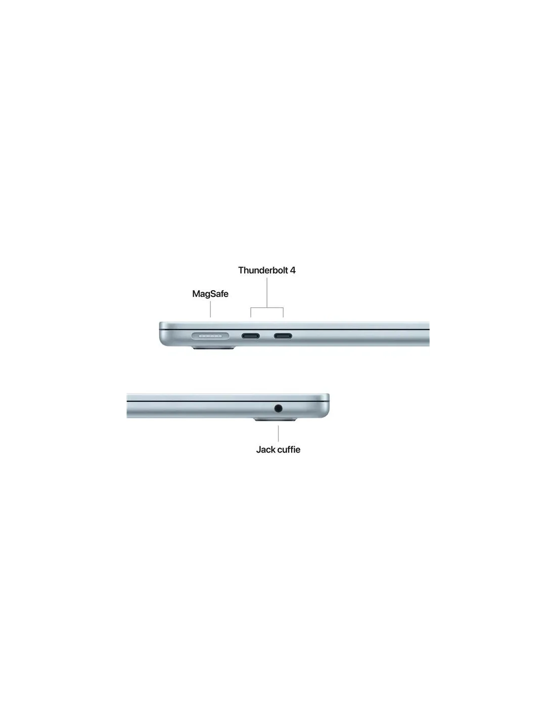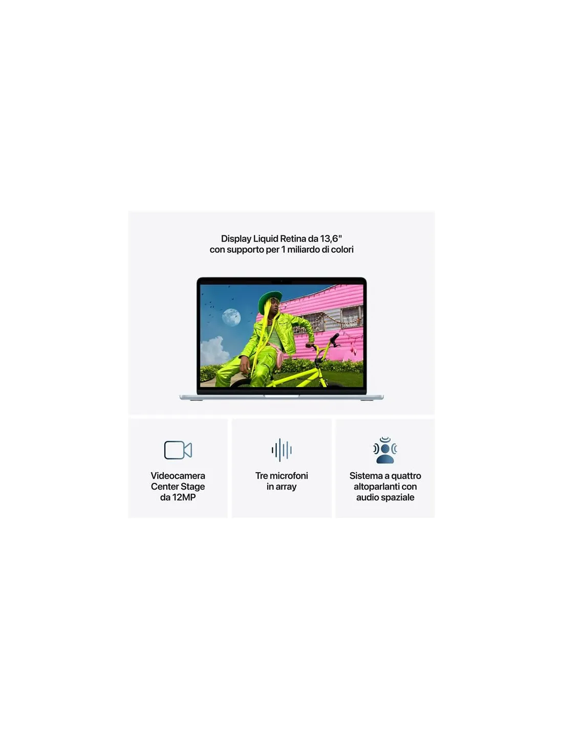 Apple MacBook Air 13" M5 chip 10‑core CPU 8‑core GPU, 16GB, 512GB SSD - Celeste. Tipo di prodotto: Computer portatile, Fattore di forma: Clamshell. Famiglia processore: Apple M, Modello del processore: M5. Dimensioni diagonale schermo: 34,5 cm (13.6"), Risoluzione del display: 2560 x 1664 Pixel. Memoria Interna: 16 GB. Capacità totale di archiviazione: 512 GB, Supporto di memoria: SSD. Modello scheda grafica integrata: Apple GPU. Sistema operativo incluso: macOS Tahoe. Colore del prodotto: Blu. Peso: 1,23 kg