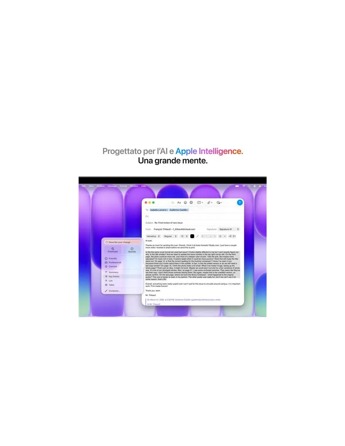 Sfreccia tra i task di tutti i giorni. Il chip A18 Pro è l’unione perfetta tra prestazioni ed efficienza, per far volare le tue app preferite e svolgere attività AI in scioltezza.Il trionfo dei sensi.Foto e video sembrano prendere vita grazie al grande contrasto e alla nitidezza dei dettagli. Il testo è ben definito per una lettura confortevole. E i due altoparlanti a diffusione laterale ti avvolgono con un suono bello pieno.Da detto a fatto.Le app e gli strumenti di intelligenza artificiale che usi di più, come ChatGPT e Canva, girano che è una bellezza su MacBook Neo. Con un’esperienza AI così fluida e versatile, il tuo lavoro e le tue passioni si aprono a nuovi orizzonti.Progettato per Apple Intelligence.Apple Intelligence è il sistema di intelligenza personale che rende più facile scrivere, creare e fare tutto ciò che vuoi. Ed è già integrata in MacBook Neo.