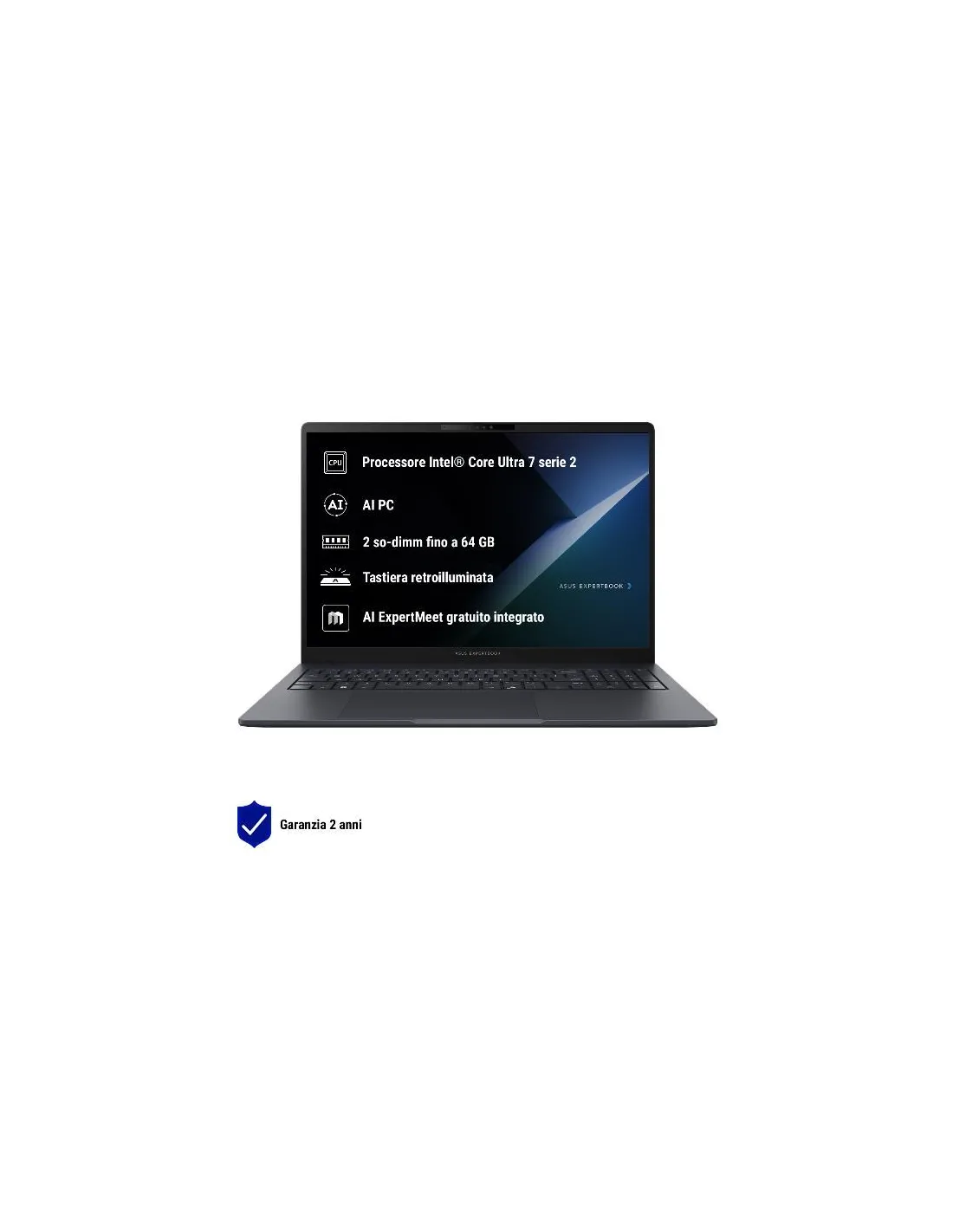 ASUS ExpertBook B3 AI PC offre un'ampia personalizzazione per soddisfare le tue esigenze lavorative quotidiane. Equipaggiato con il processore di ultima generazione fino a Intel® Core™ Ultra 7 con Intel vPro®, Intel AI Boost NPU e grafica Intel Arc, questo AI PC offre solide prestazioni per affrontare un'ampia gamma di attività in modo fluido. ASUS ExpertBook B3 dispone di strumenti AI come ASUS AI ExpertMeet1, Microsoft Copilot2 e la tecnologia AI per la cancellazione del rumore, offrendo un'esperienza di produttività senza pari. Grazie alla resistenza di livello militare3, alla gamma completa di porte I/O, al Wi-Fi 6E ultraveloce e alle funzioni di sicurezza avanzate, questo leggero PC AI garantisce flessibilità ed efficienza in movimento. Inoltre, grazie alla lunga durata della batteria, alle immagini e all'audio eccezionali e al design eco-compatibile, ASUS ExpertBook B3 supporta un flusso di lavoro sostenibile e ottimizzato, per mantenerti produttivo ovunque tu lavori.