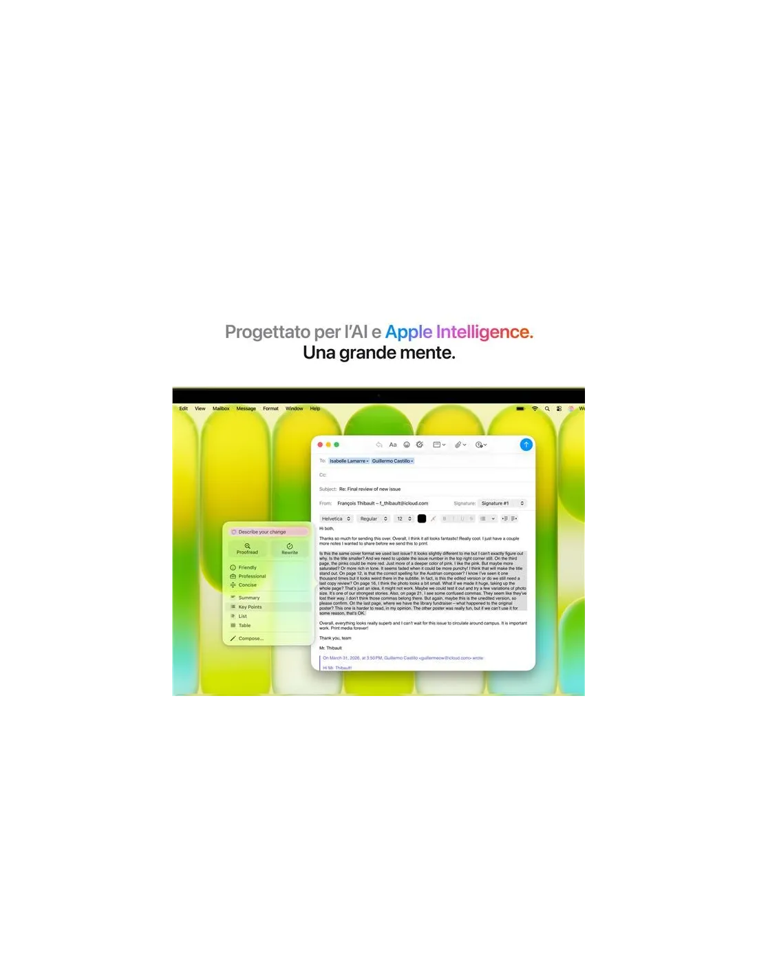 - PROGETTATO PER L’AI – Il chip Apple e i suoi principali componenti sono progettati per gestire in modo efficiente le attività AI on device. Apple Intelligence rende più facile scrivere, creare e fare tutto ciò che vuoi, con funzioni di ultima generazione per la tutela della privacy.