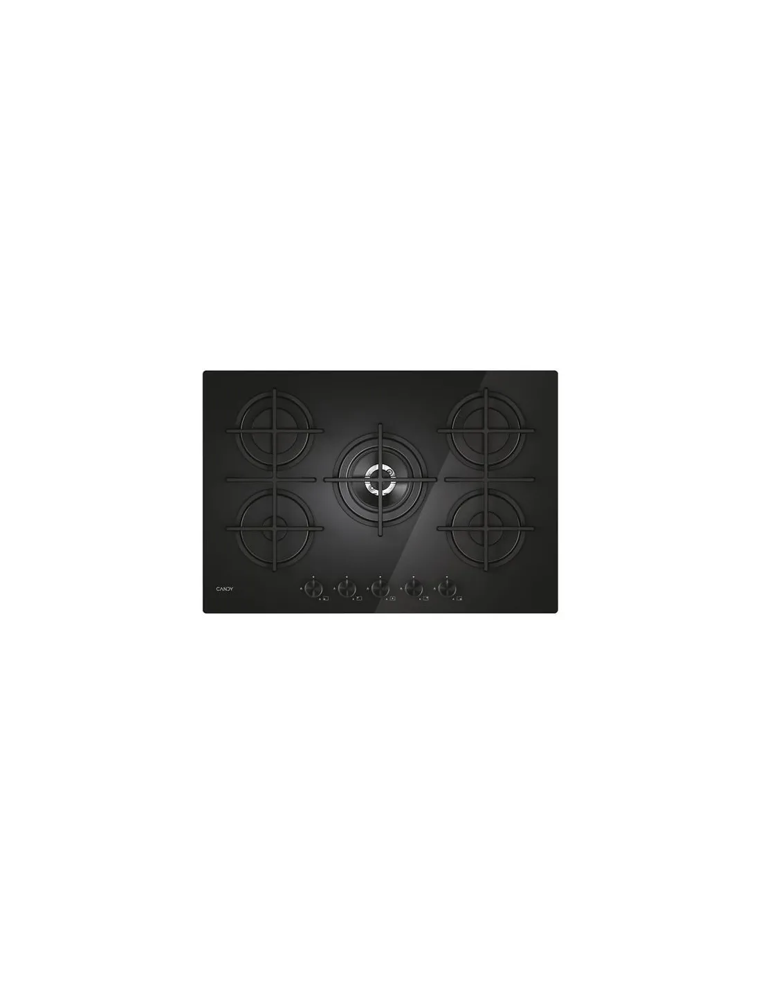 Candy CVG74WTB, Nero, Da incasso, 75 cm, Gas, Acciaio inox, 5 Fornello(i)Candy CVG74WTB. Colore del prodotto: Nero, Posizionamento dell'apparecchio: Da incasso, Dimensione della larghezza del piano cottura: 75 cm. Tipo di controllo: Manopola, Posizione di controllo: Front / Top front. Tensione di ingresso AC: 220-240 V. Applicazioni per il controllo supportate: hOn. Larghezza: 750 mm, Profondità: 510 mm, Altezza: 50 mm