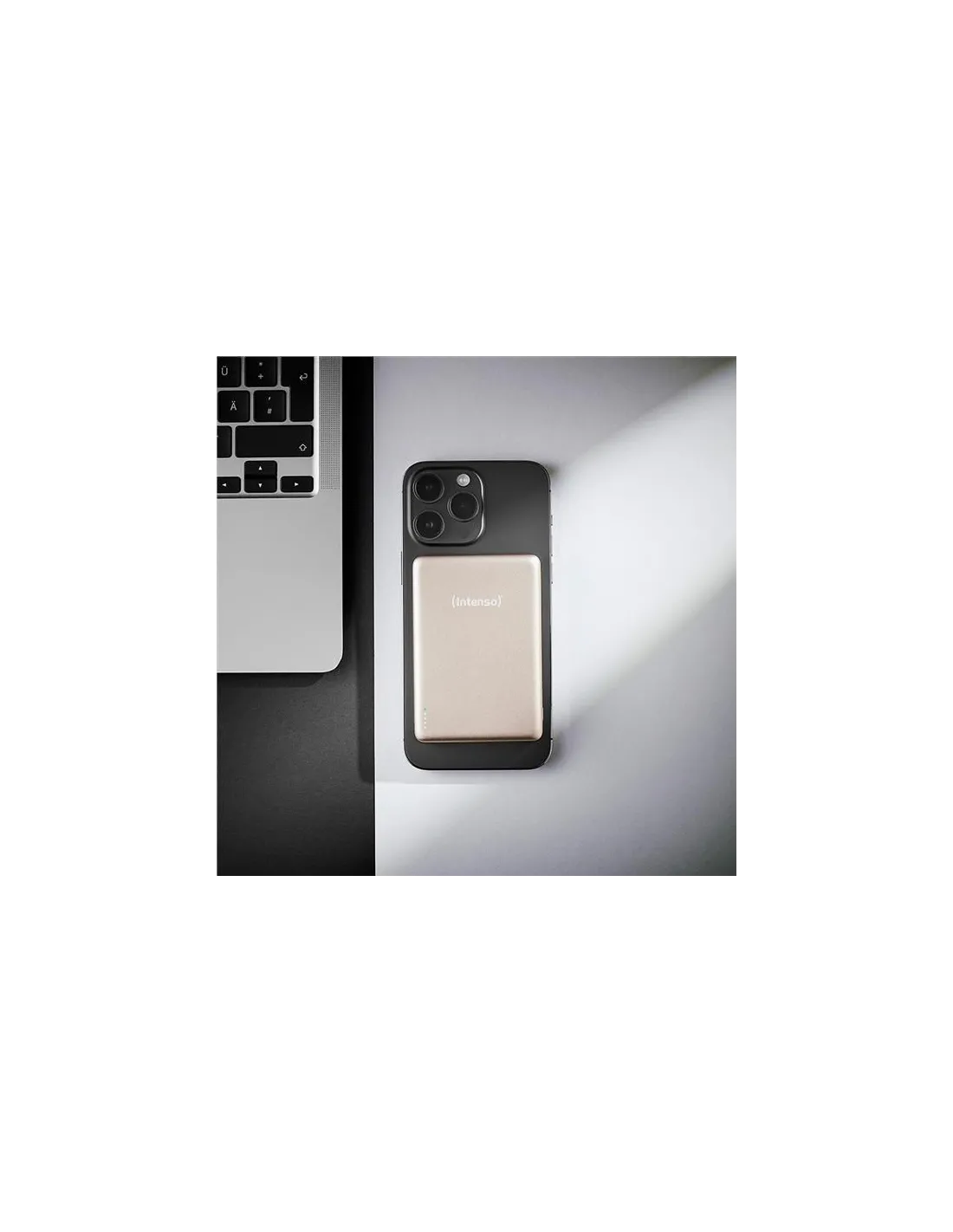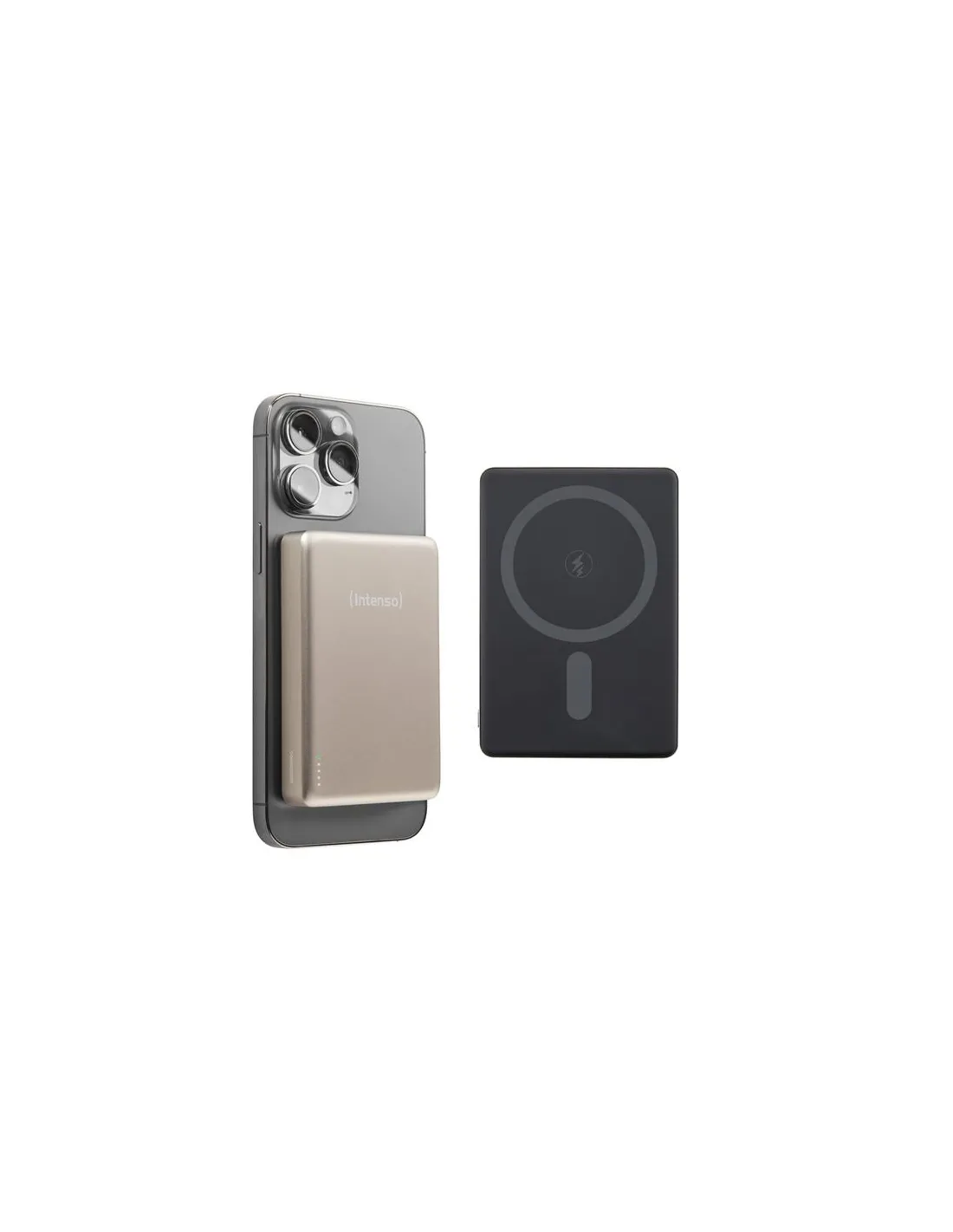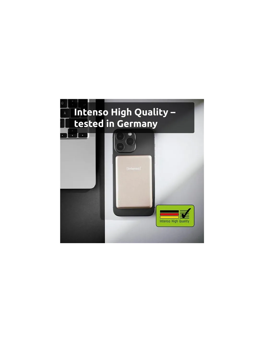 IntensoIntenso MW10000 Polimeri di litio (LiPo) 10000 mAh Carica wireless Champagne Completamente carica. Con o senza cavi. I powerbank MW5000 e MW10000 di Intenso forniscono energia mobile nella sua forma più elegante. Dotati di batterie ai polimeri di litio ad alte prestazioni rispettivamente da 5.000 e 10.000 mAh, consentono una ricarica rapida e sicura dei dispositivi moderni, siano essi smartphone, tablet o dispositivi compatibili con Qi. Grazie alla tecnologia Power Delivery integrata, forniscono una potenza fino a 20 W tramite USB-C e fino a 15 W in modalità wireless. Perfetti per chi apprezza le prestazioni elevate in movimento. Design ultrasottile. Disponibile in tre colori. Grazie alle loro dimensioni ultrasottili (solo 9,5 mm per MW5000 e 16 mm per MW10000), questi powerbank si adattano facilmente a qualsiasi tasca. Disponibili in eleganti colori champagne, rosa o grigio, sono perfetti per ogni occasione. Grazie alla compatibilità con MagSafe (da iPhone 12 in poi), si agganciano magneticamente al dispositivo e si ricaricano tramite le custodie compatibili: una vera comodità per tutti i giorni. Quattro LED di stato e un LED di funzione indicano in modo affidabile il livello di carica attuale e la modalità operativa.