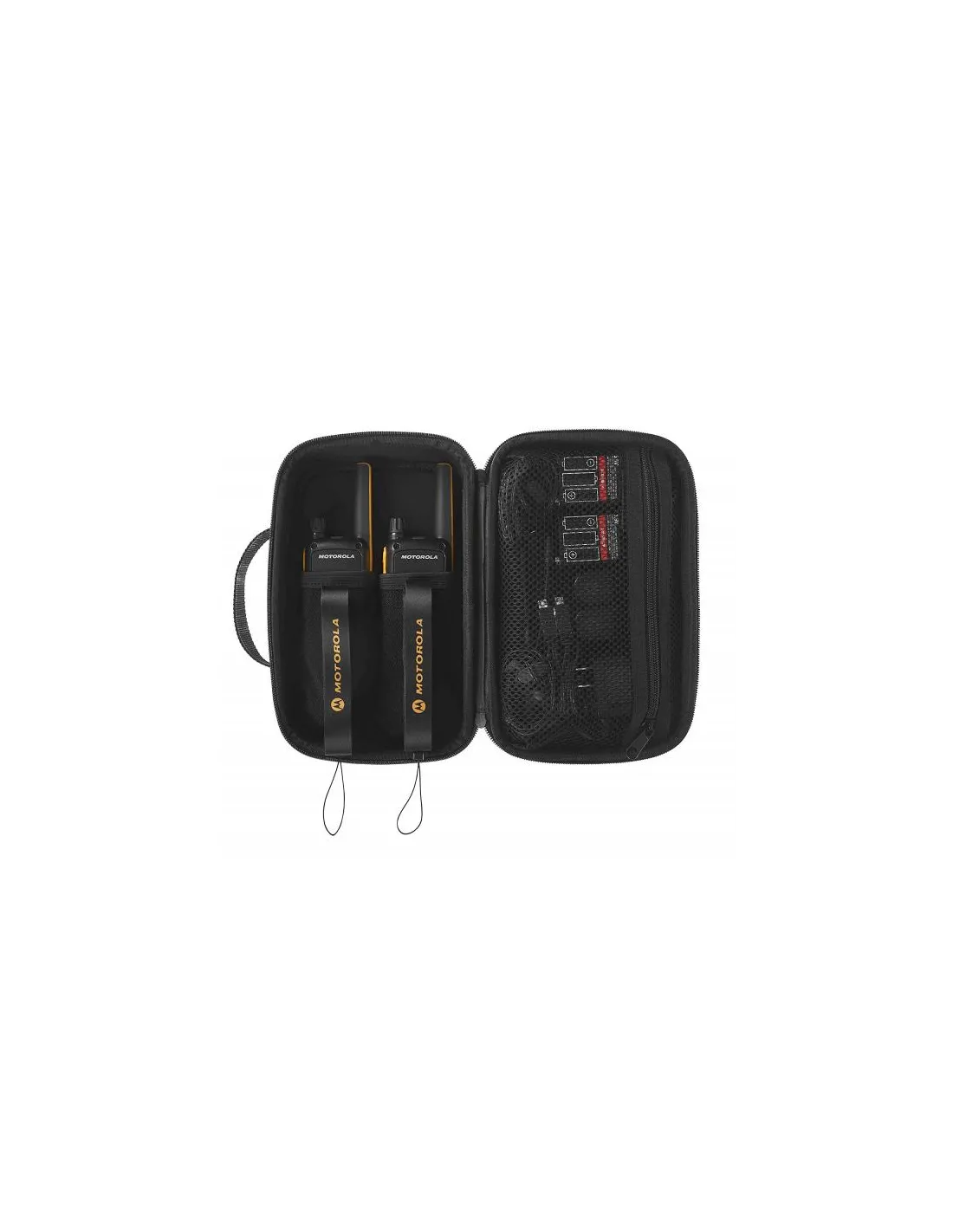 Il set include: custodia da trasporto, 2 radios, 2 auricolari, 2 cordini da collo, 2 batterie NiMH.