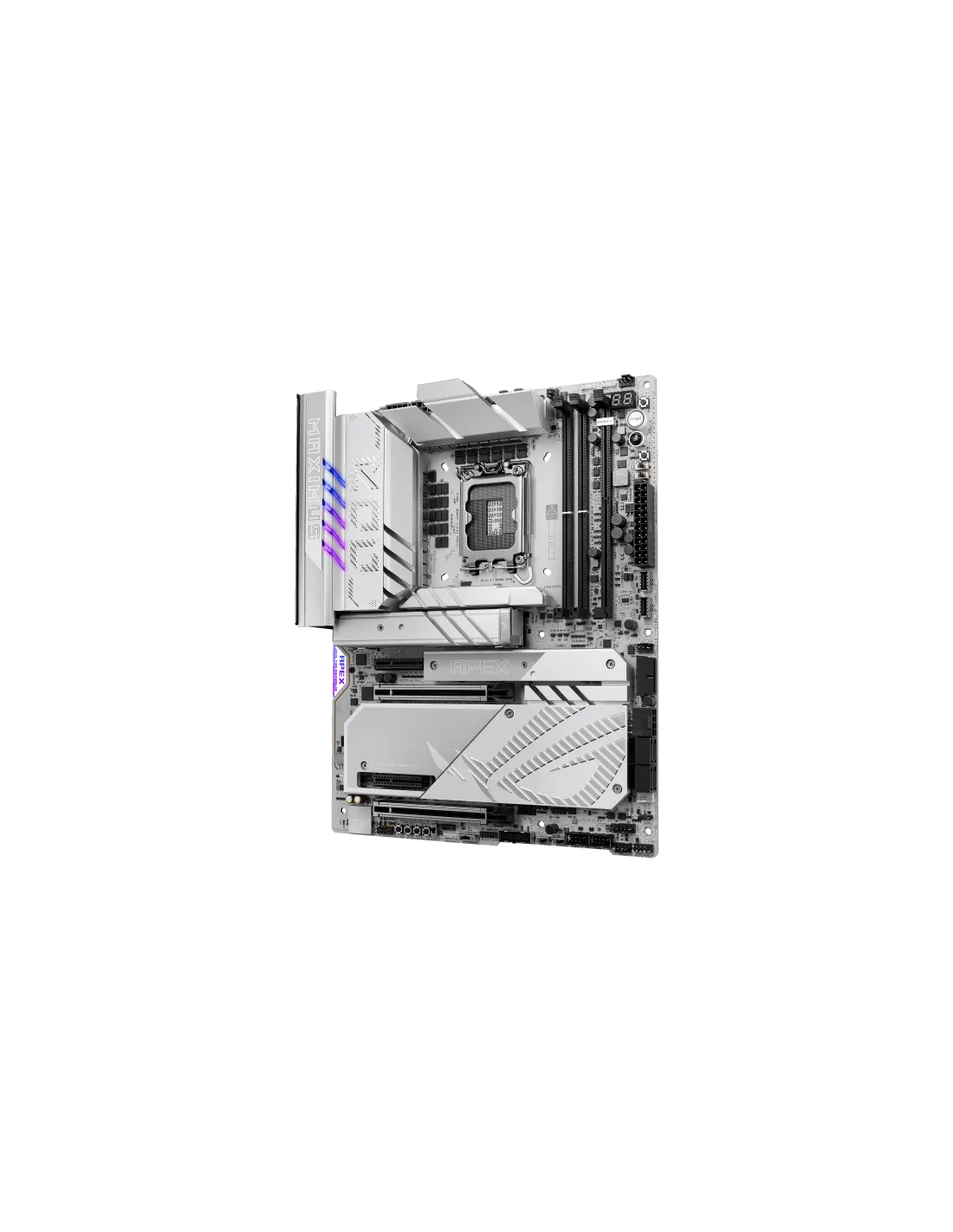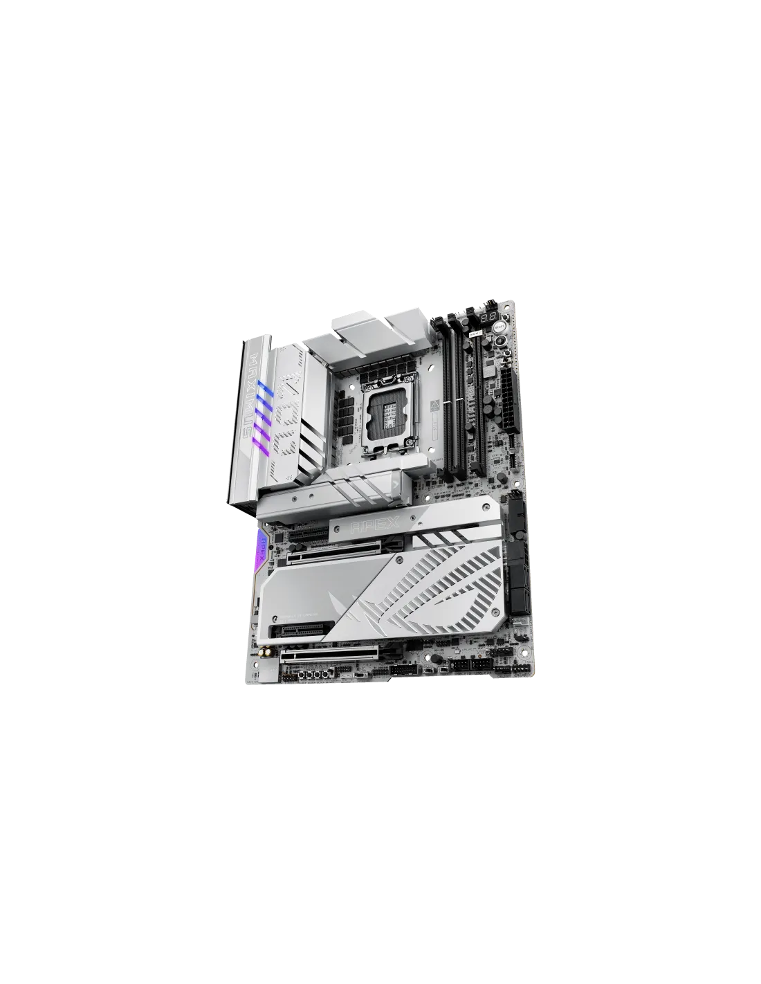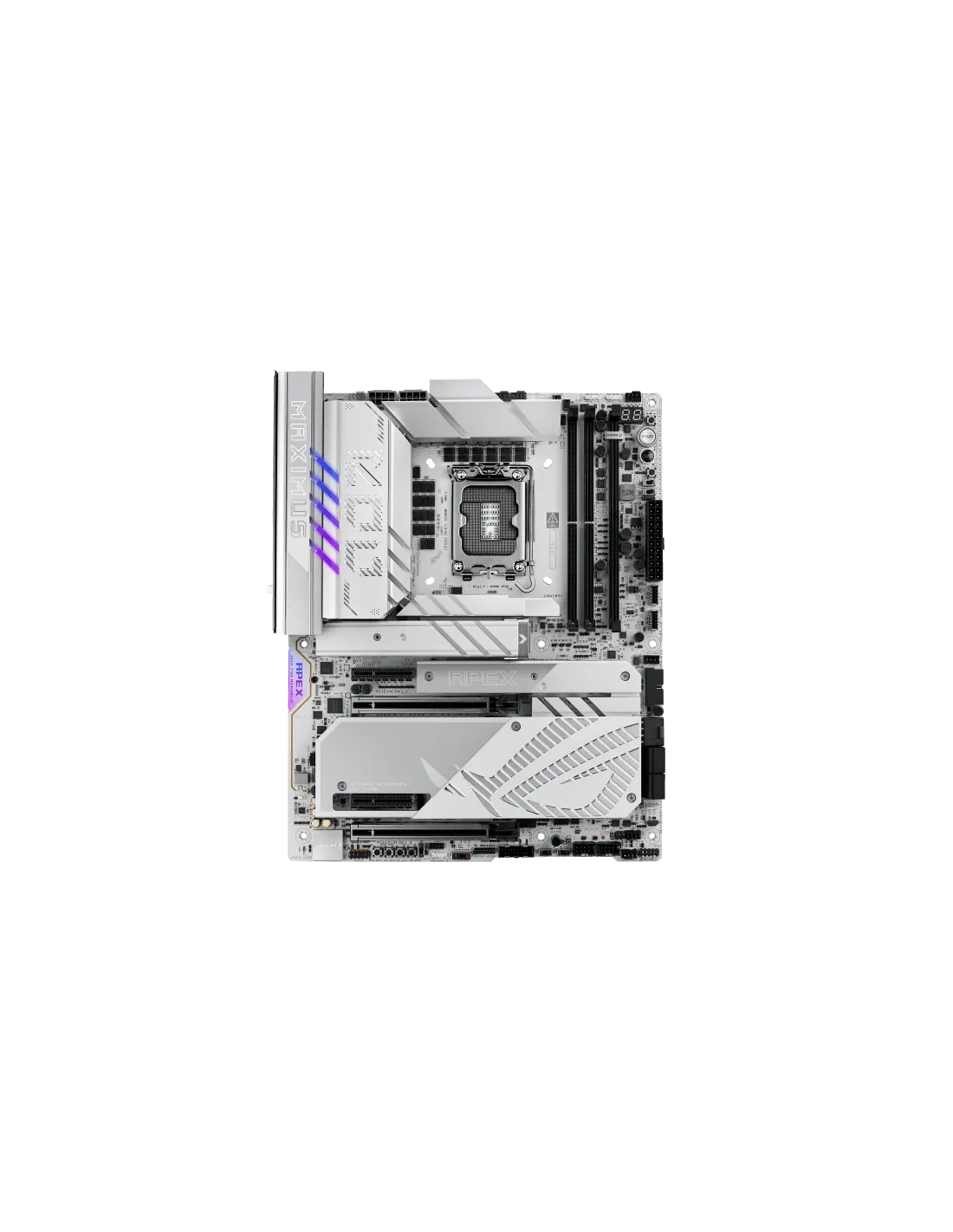 ROG Maximus Z890 Apex supporta pienamente i processori Intel® Core™ Ultra (Serie 2). Progettata con precisione per l'overclocking supremo, porta avanti l'eredità della serie in una nuova generazione. Grazie a un'eccezionale erogazione di potenza e a un layout di memoria DDR5 a due slot, gli overclocker possono soddisfare e superare le loro ambizioni di prestazioni da record per CPU e memoria. Per coloro che prediligono colori più chiari per l'estetica della propria struttura, la ROG Maximus Z890 Apex è caratterizzata da una superficie grigio ciottolo, accenti metallici lucidi, contorni eleganti e una tavolozza prevalentemente argentata.