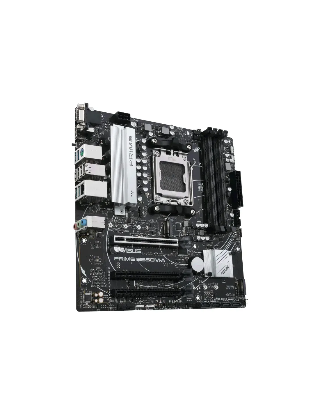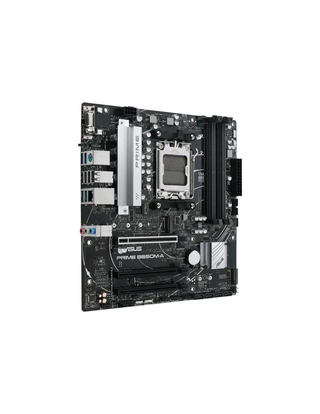 ASUS PRIME B650M-A. Produttore processore: AMD, Presa per processore: Socket AM5, Processori compatibili: AMD Ryzen™ 7. Tipi di memoria supportati: DDR5-SDRAM, RAM massima supportata: 128 GB, tipo di slot di memoria: DIMM. Interfacce dell'unità di archiviazione supportate: M.2, SATA III, Tipi di unità di archiviazione supportate: HDD & SSD, Livelli RAID: 0, 1, 10. Tipo di interfaccia Ethernet: 2.5 Gigabit Ethernet. Componente per: PC, Fattore di forma scheda madre: micro ATX, Famiglia di chipset per scheda madre: AMD