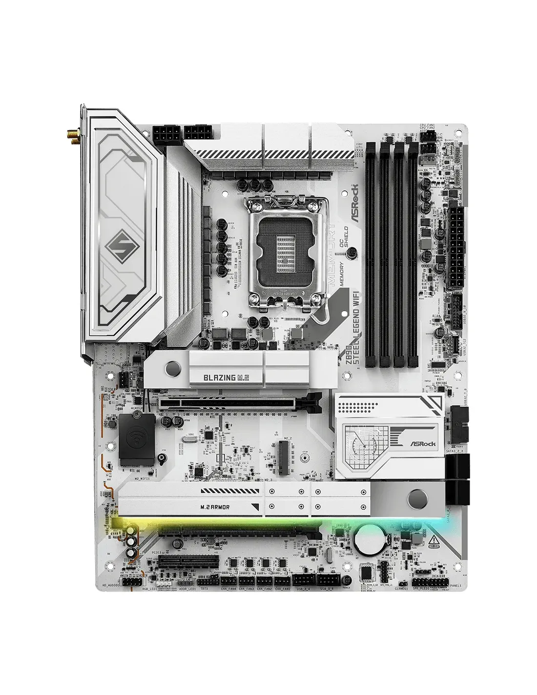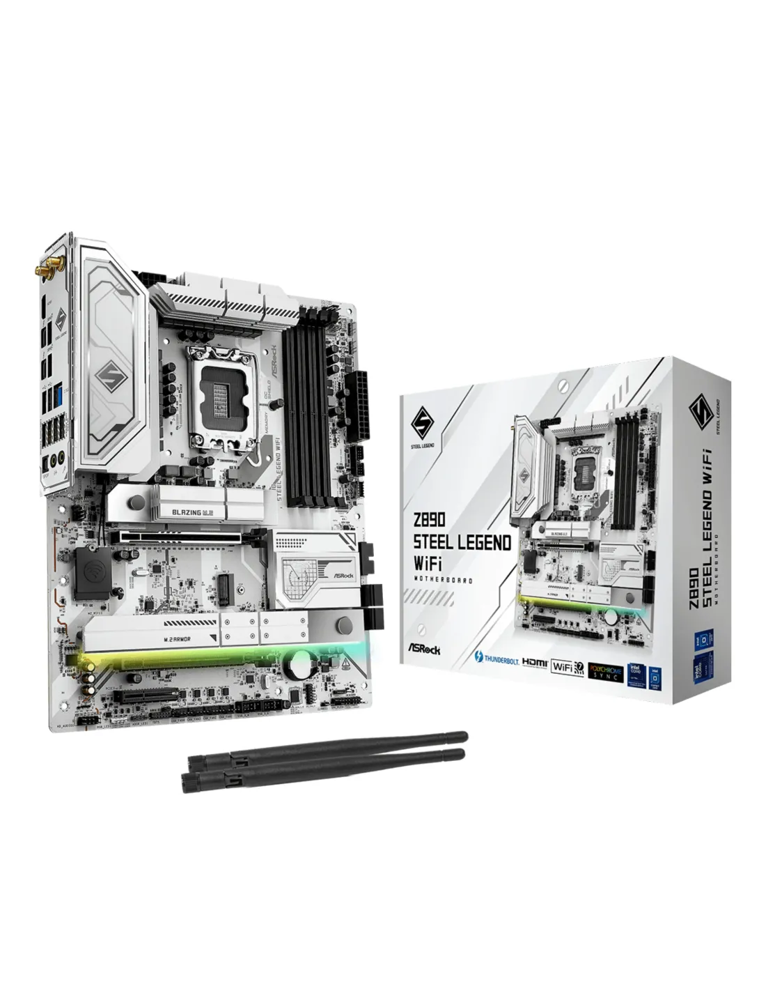 Asrock Z890 Steel Legend WiFi. Produttore processore: Intel, Presa per processore: LGA 1851 (Socket V1), Processori compatibili: Intel Core Ultra (Series 2). Tipi di memoria supportati: DDR5-SDRAM, RAM massima supportata: 256 GB, tipo di slot di memoria: DIMM. Interfacce dell'unità di archiviazione supportate: M.2, SATA III, Livelli RAID: 0, 1, 5, 10. Tipo di interfaccia Ethernet: 2.5 Gigabit Ethernet, Controller LAN: Dragon RTL8125BG, Wi-Fi standard: Wi-Fi 7 (802.11be). Componente per: PC, Fattore di forma scheda madre: ATX, Famiglia di chipset per scheda madre: Intel
