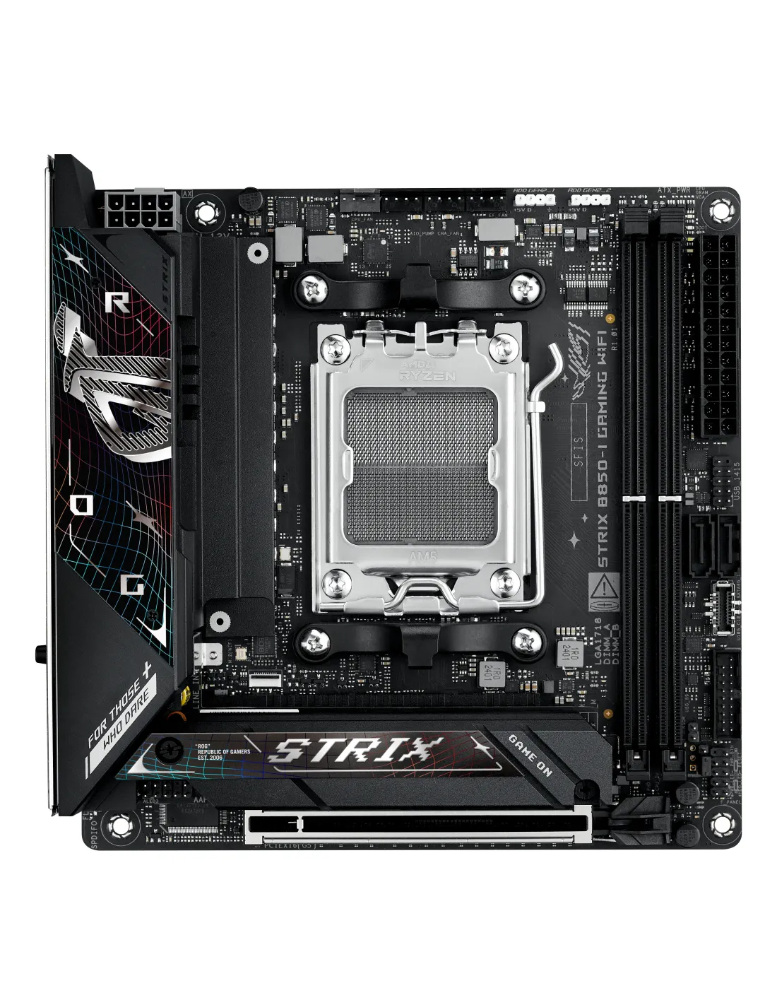 ASUS ROG STRIX B850-I GAMING WIFI. Produttore processore: AMD, Presa per processore: Socket AM5, Processori compatibili: AMD Ryzen 7000 Series, AMD Ryzen 8000 Series, AMD Ryzen 9000 Series. Tipi di memoria supportati: DDR5-SDRAM, RAM massima supportata: 96 GB, tipo di slot di memoria: DIMM. Interfacce dell'unità di archiviazione supportate: M.2, SATA III, Tipi di unità di archiviazione supportate: HDD & SSD. Risoluzione massima: 4096 x 2160 Pixel. Tipo di interfaccia Ethernet: 2.5 Gigabit Ethernet, Wi-Fi standard: Wi-Fi 7 (802.11be), Standard Wi-Fi: Wi-Fi 7 (802.11be)