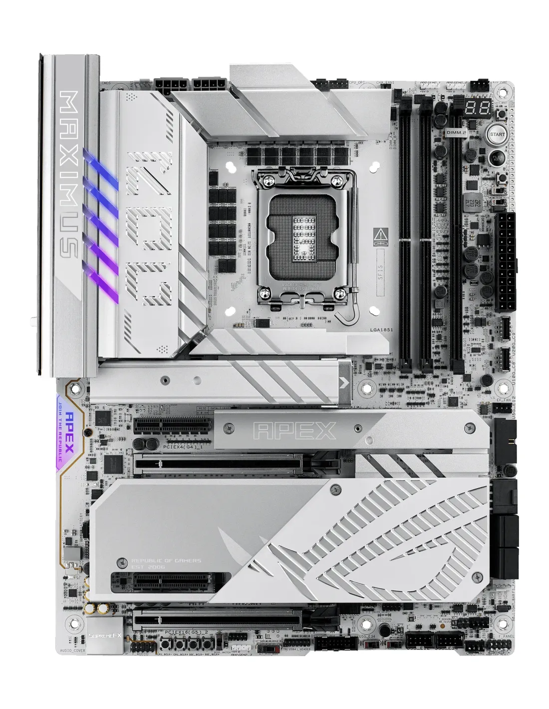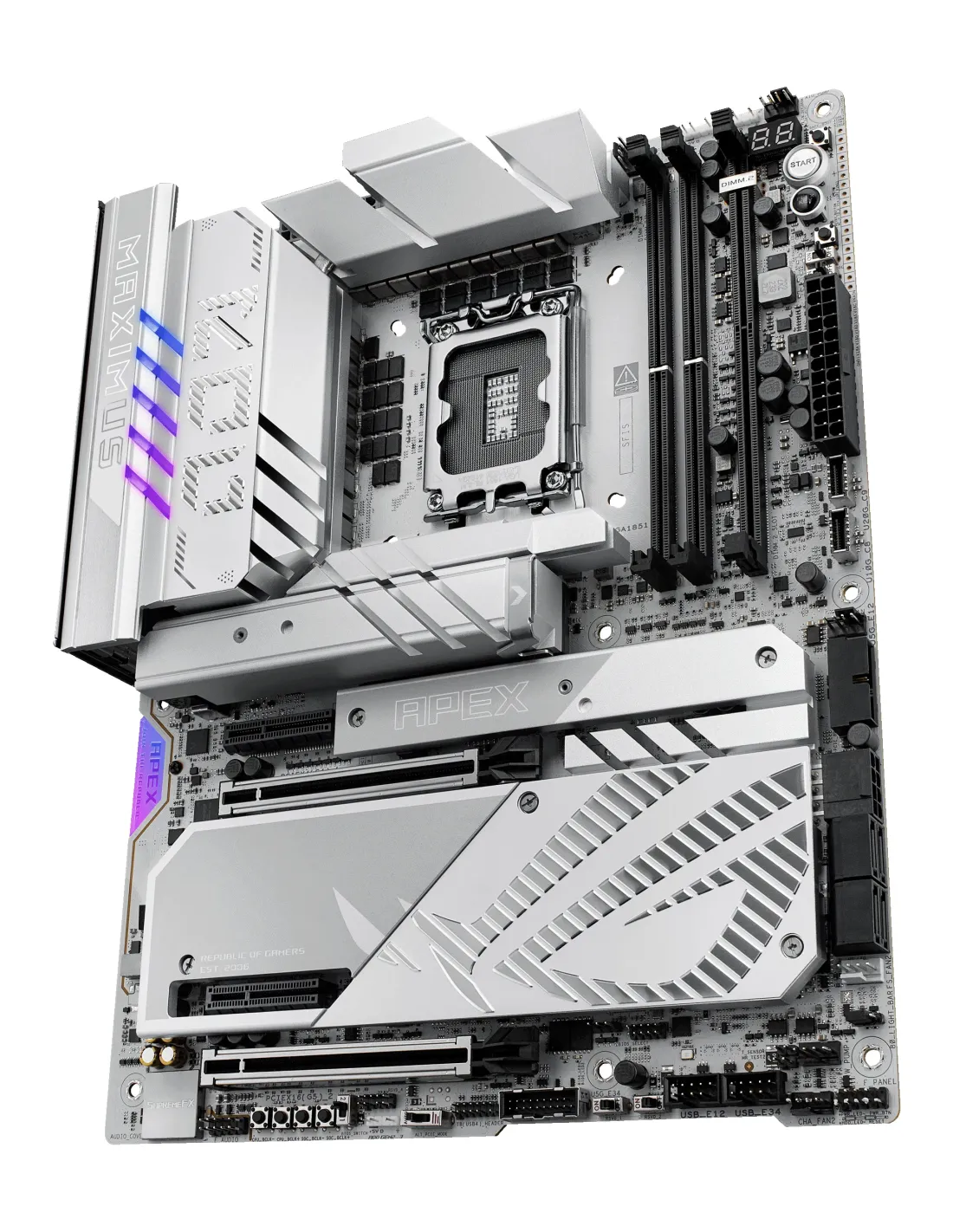 ASUS ROG MAXIMUS Z890 APEX. Produttore processore: Intel, Presa per processore: LGA 1851 (Socket V1), Processori compatibili: Intel Core Ultra (Series 2). Tipi di memoria supportati: DDR5-SDRAM, RAM massima supportata: 96 GB, tipo di slot di memoria: DIMM. Interfacce dell'unità di archiviazione supportate: M.2, SATA III, Tipi di unità di archiviazione supportate: HDD & SSD, Livelli RAID: 0, 1, 5, 10. Tipo di interfaccia Ethernet: 5 Gigabit Ethernet, Wi-Fi standard: Wi-Fi 7 (802.11be), Standard Wi-Fi: Wi-Fi 7 (802.11be). Componente per: PC, Fattore di forma scheda madre: ATX, Famiglia di chipset per scheda madre: Intel