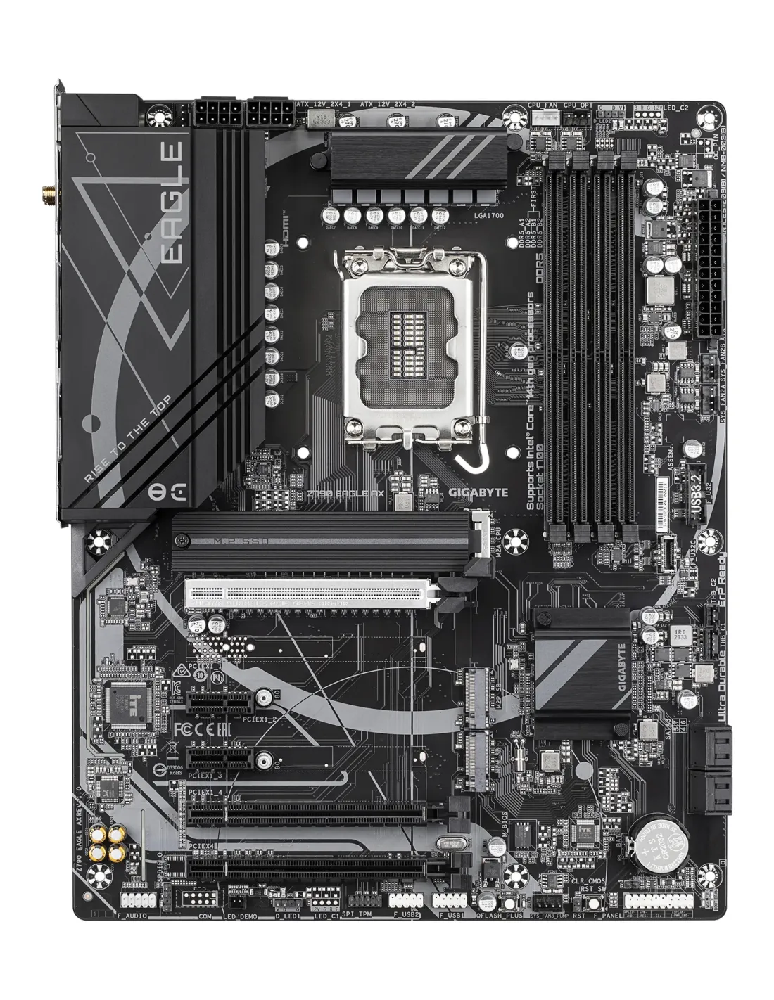 GIGABYTE Z790 EAGLE AX Scheda madre - Supporta CPU Intel Core di 14a generazione, VRM digitale a 12+1+1 fasi, fino a 7600MHz DDR5 (OC), 3xPCIe 4.0 M.2, Wi-Fi 6E, LAN 2.5GbE, USB 3.2 Gen 2, Intel, LGA 1700, Intel® Celeron®, Intel® Core™ i3, Intel® Core™ i5, Intel® Core™ i7, Intel® Core™ i9,..., LGA 1700, 192 GB, DDR5-SDRAM