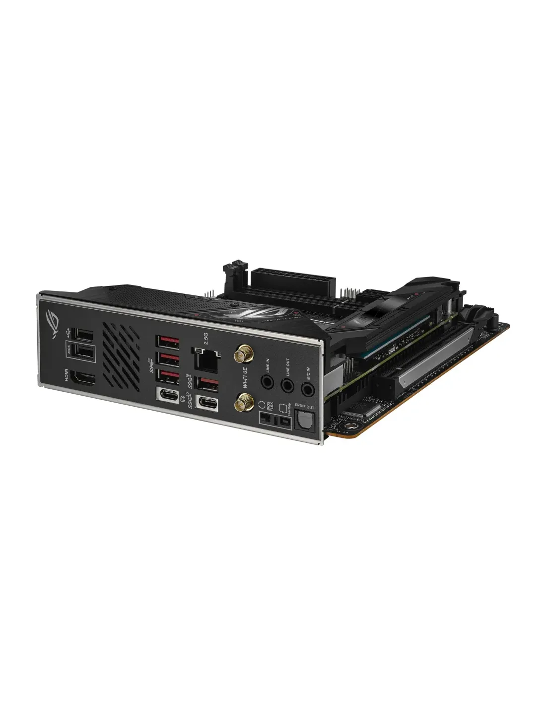 ASUS ROG STRIX B650E-I GAMING WIFI. Produttore processore: AMD, Presa per processore: Socket AM5, Processori compatibili: AMD Ryzen™ 7. Tipi di memoria supportati: DDR5-SDRAM, RAM massima supportata: 64 GB, tipo di slot di memoria: DIMM. Interfacce dell'unità di archiviazione supportate: M.2, SATA III, Tipi di unità di archiviazione supportate: HDD & SSD, Livelli RAID: 0, 1. Tipo di interfaccia Ethernet: 2.5 Gigabit Ethernet, Wi-Fi standard: Wi-Fi 6E (802.11ax), Standard Wi-Fi: 802.11a, 802.11b, 802.11g, Wi-Fi 4 (802.11n), Wi-Fi 5 (802.11ac), Wi-Fi 6 (802.11ax), Wi-Fi 6E.... Componente per: PC, Fattore di forma scheda madre: mini ITX, Famiglia di chipset per scheda madre: AMD