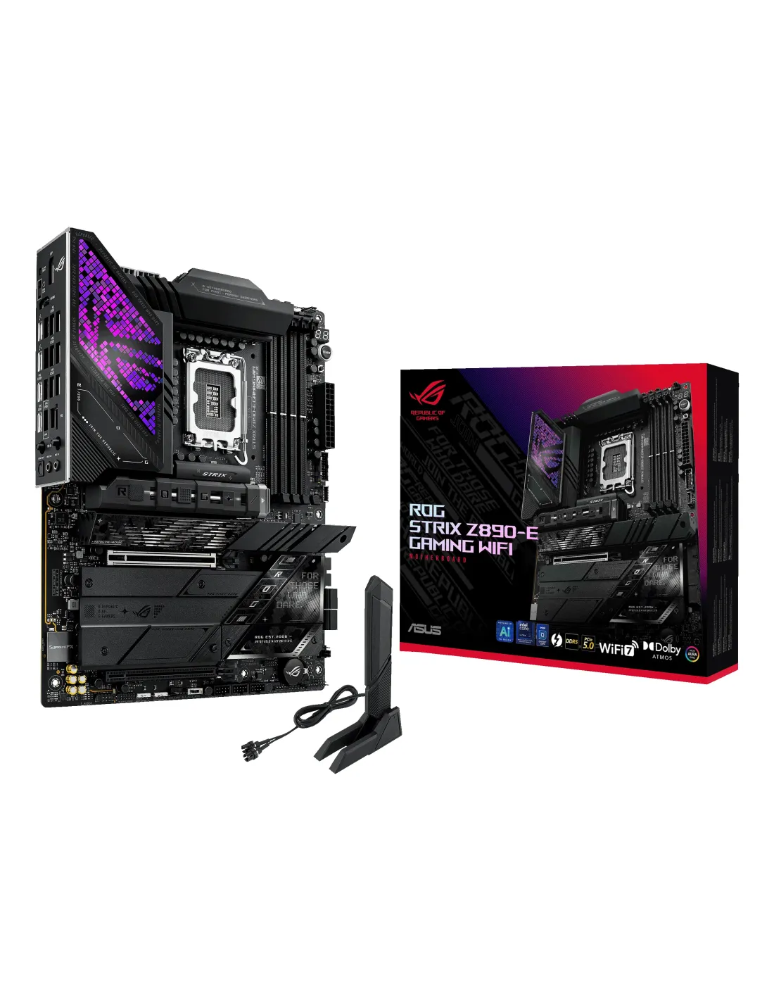 ASUS ROG STRIX Z890-E GAMING WIFI. Produttore processore: Intel, Presa per processore: LGA 1851 (Socket V1), Processori compatibili: Intel Core Ultra (Series 2). Tipi di memoria supportati: DDR5-SDRAM, RAM massima supportata: 192 GB, tipo di slot di memoria: DIMM. Interfacce dell'unità di archiviazione supportate: M.2, SATA III, Tipi di unità di archiviazione supportate: HDD & SSD, Livelli RAID: 0, 1, 5, 10. Connettore USB: USB tipo A, USB tipo-C. Tipo di interfaccia Ethernet: 5 Gigabit Ethernet, Wi-Fi standard: Wi-Fi 7 (802.11be)