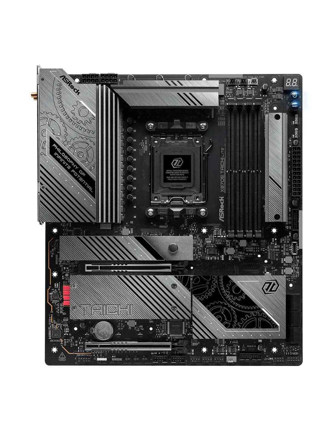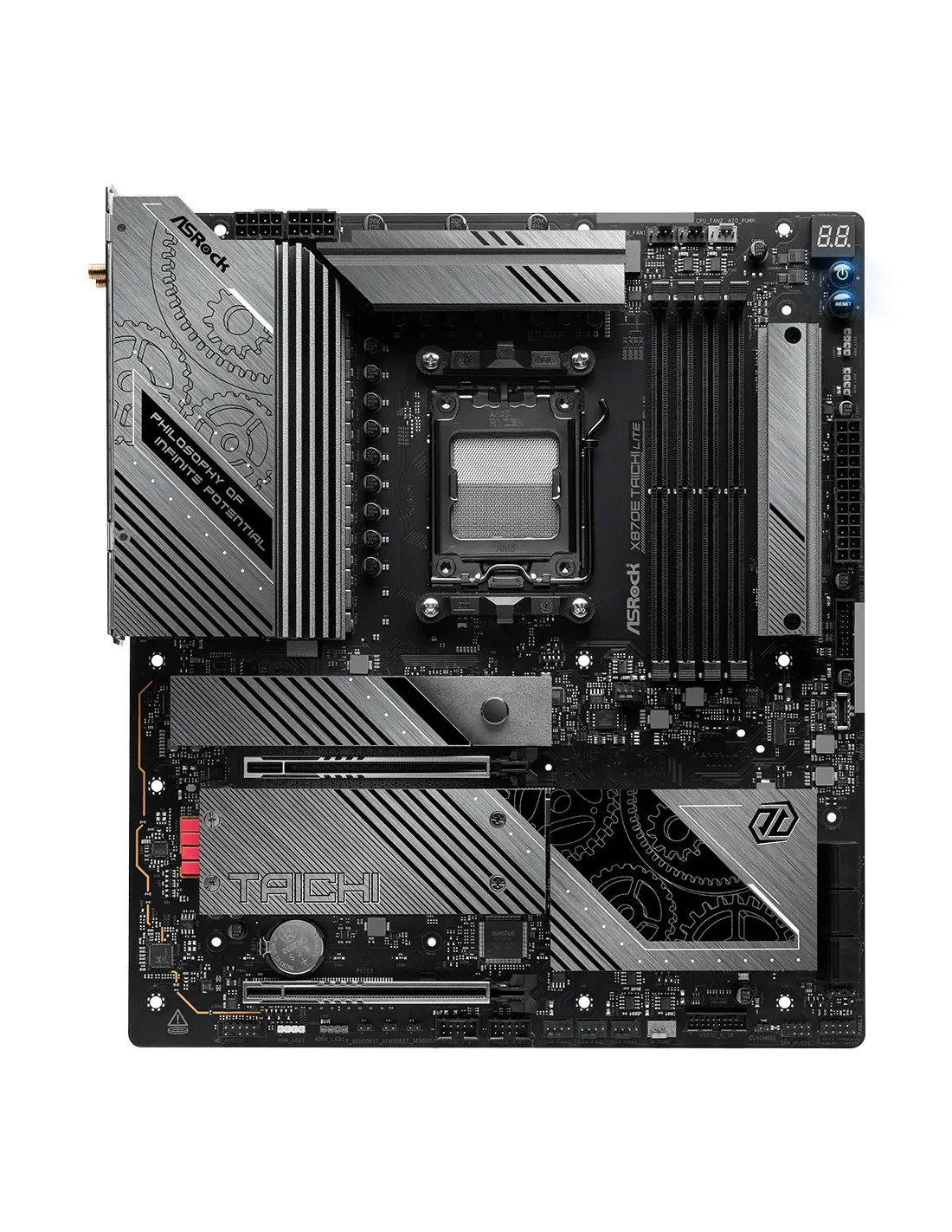 Asrock 90-MXBPA0-A0UAYZ. Produttore processore: AMD, Presa per processore: Socket AM5, Processori compatibili: AMD Ryzen 7000 Series, AMD Ryzen 8000 Series, AMD Ryzen 9000 Series. Tipi di memoria supportati: DDR5-SDRAM, RAM massima supportata: 256 GB, tipo di slot di memoria: DIMM. Interfacce dell'unità di archiviazione supportate: M.2, SATA III, Tipi di unità di archiviazione supportate: HDD & SSD, Livelli RAID: 0, 1. Tecnologia di processo parallela: CrossFire. Tipo di interfaccia Ethernet: 2.5 Gigabit Ethernet, Controller LAN: Dragon RTL8125BG, Wi-Fi standard: Wi-Fi 7 (802.11be)