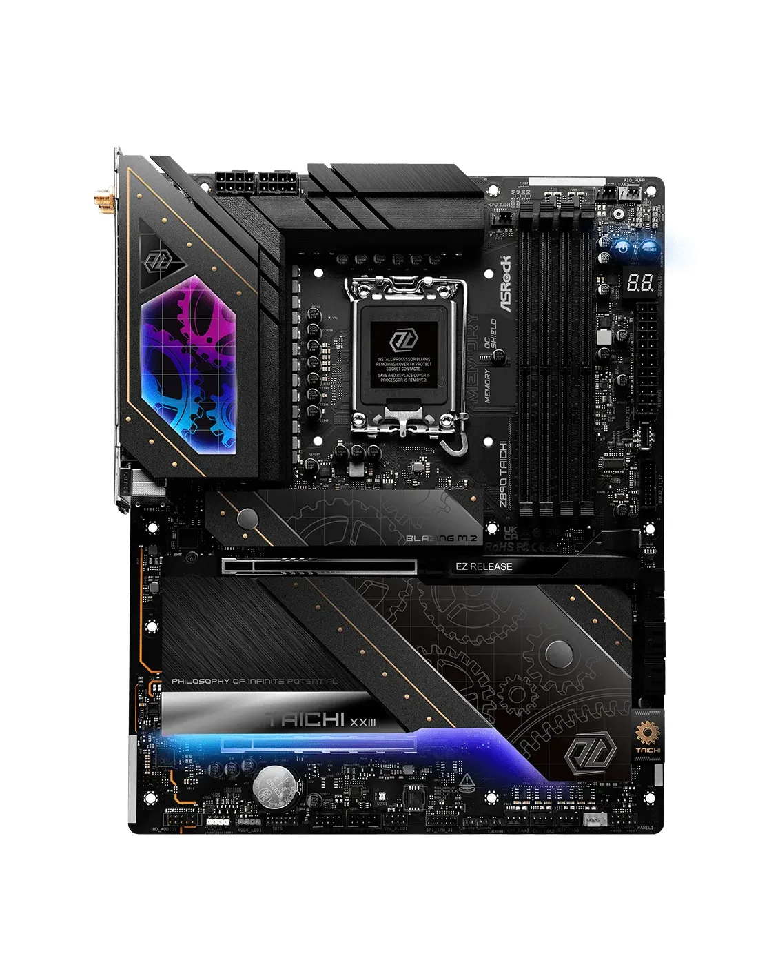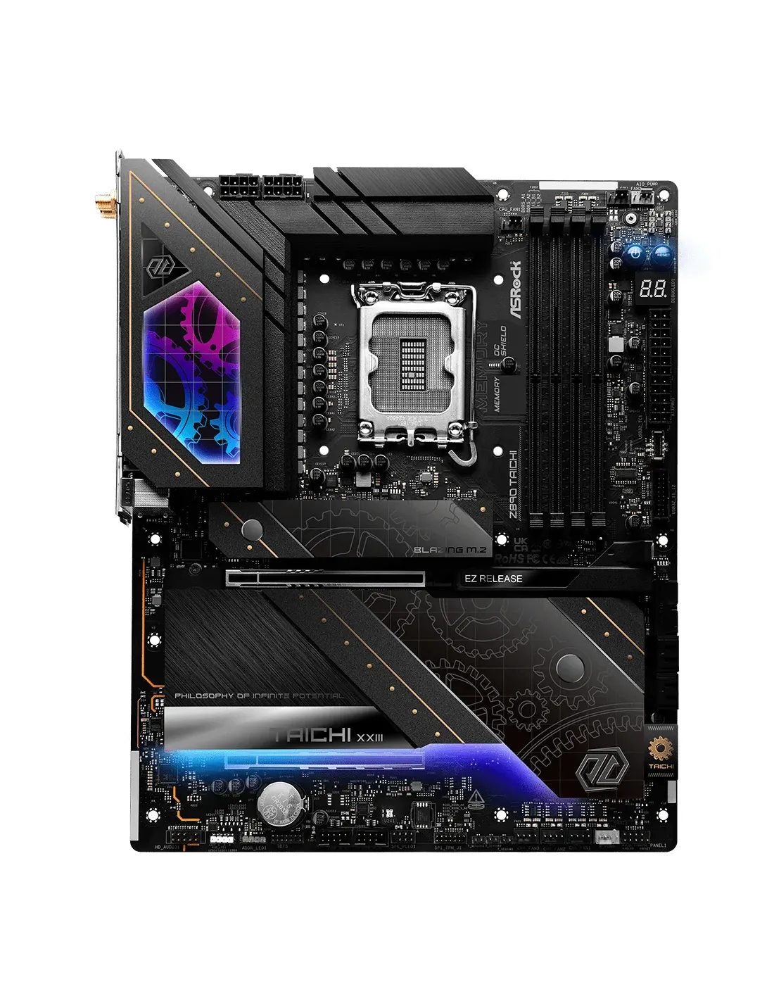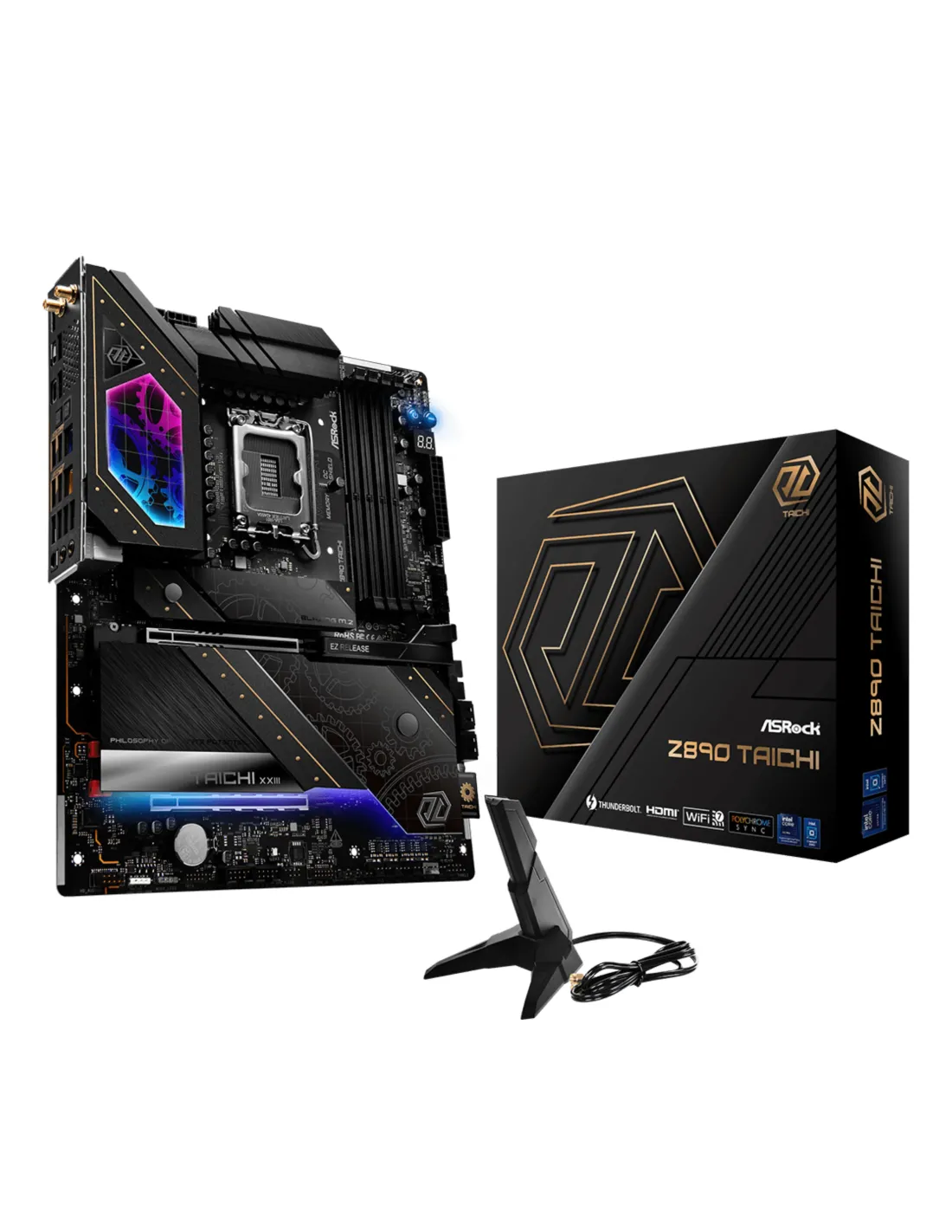 Asrock Z890 Taichi. Produttore processore: Intel, Presa per processore: LGA 1851 (Socket V1), Processori compatibili: Intel Core Ultra (Series 2). Tipi di memoria supportati: DDR5-SDRAM, RAM massima supportata: 256 GB, tipo di slot di memoria: DIMM. Interfacce dell'unità di archiviazione supportate: PCI Express 4.0, PCI Express 5.0, SATA III, Tipi di unità di archiviazione supportate: HDD & SSD, Livelli RAID: 0, 1, 5, 10. Risoluzione massima: 7680 x 4320 Pixel. Connettore USB: USB tipo A, USB tipo-C