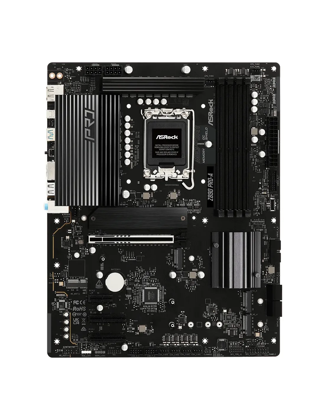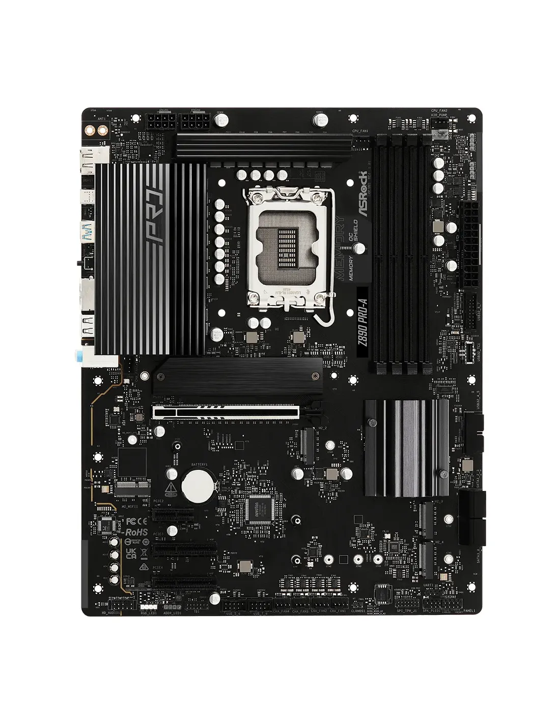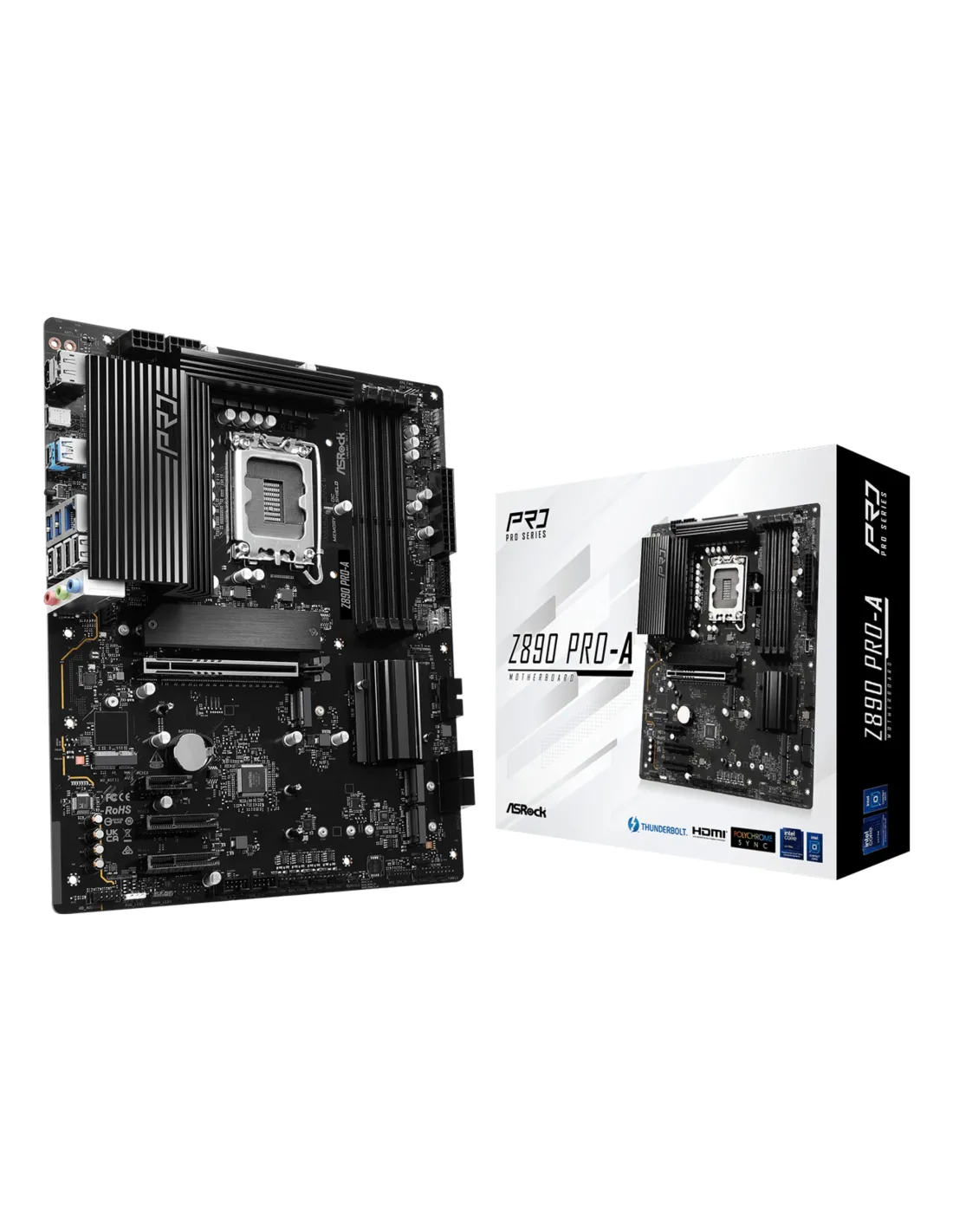 Asrock Z890 Pro-A. Produttore processore: Intel, Presa per processore: LGA 1851 (Socket V1), Processori compatibili: Intel Core Ultra (Series 2). Tipi di memoria supportati: DDR5-SDRAM, RAM massima supportata: 256 GB, tipo di slot di memoria: DIMM. Interfacce dell'unità di archiviazione supportate: M.2, SATA III, Tipi di unità di archiviazione supportate: HDD & SSD, Livelli RAID: 0, 1, 5, 10. Tipo di interfaccia Ethernet: 2.5 Gigabit Ethernet, Controller LAN: Dragon RTL8125BG. Componente per: PC, Fattore di forma scheda madre: ATX, Famiglia di chipset per scheda madre: Intel