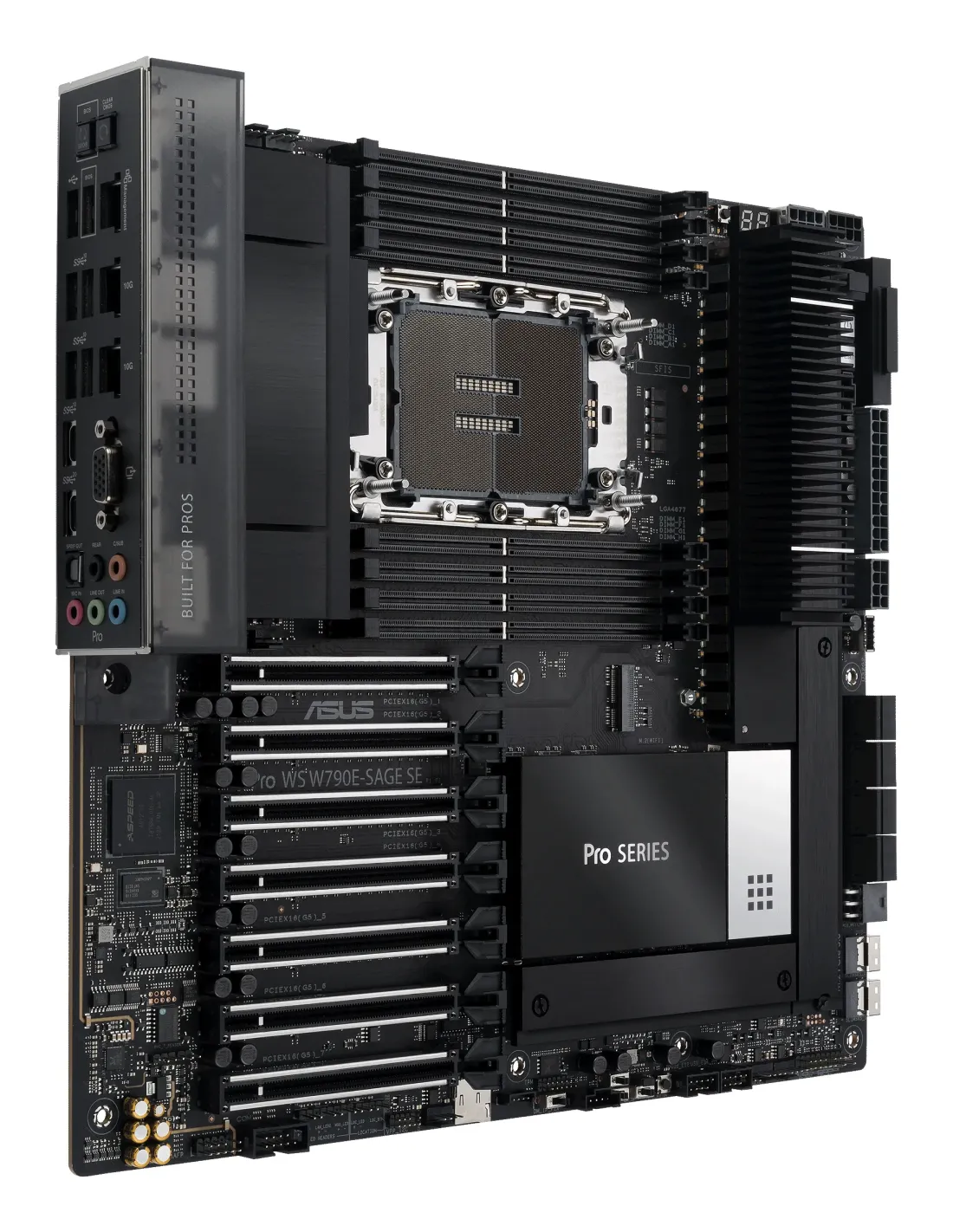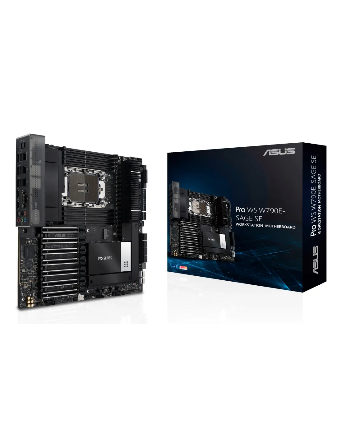 ASUS PRO WS W790E-SAGE SE. Produttore processore: Intel, Presa per processore: LGA 4677 (Socket E), Processori compatibili: Intel® Xeon® W. Tipi di memoria supportati: DDR5-SDRAM, RAM massima supportata: 2 TB, tipo di slot di memoria: DIMM. Interfacce dell'unità di archiviazione supportate: SlimSAS, M.2, SATA III, Tipi di unità di archiviazione supportate: HDD & SSD, Livelli RAID: 0, 1, 5, 10. Tipo di interfaccia Ethernet: 10 Gigabit Ethernet, Gigabit Ethernet. Componente per: Stazione di lavoro, Fattore di forma scheda madre: EEB, Famiglia di chipset per scheda madre: Intel
