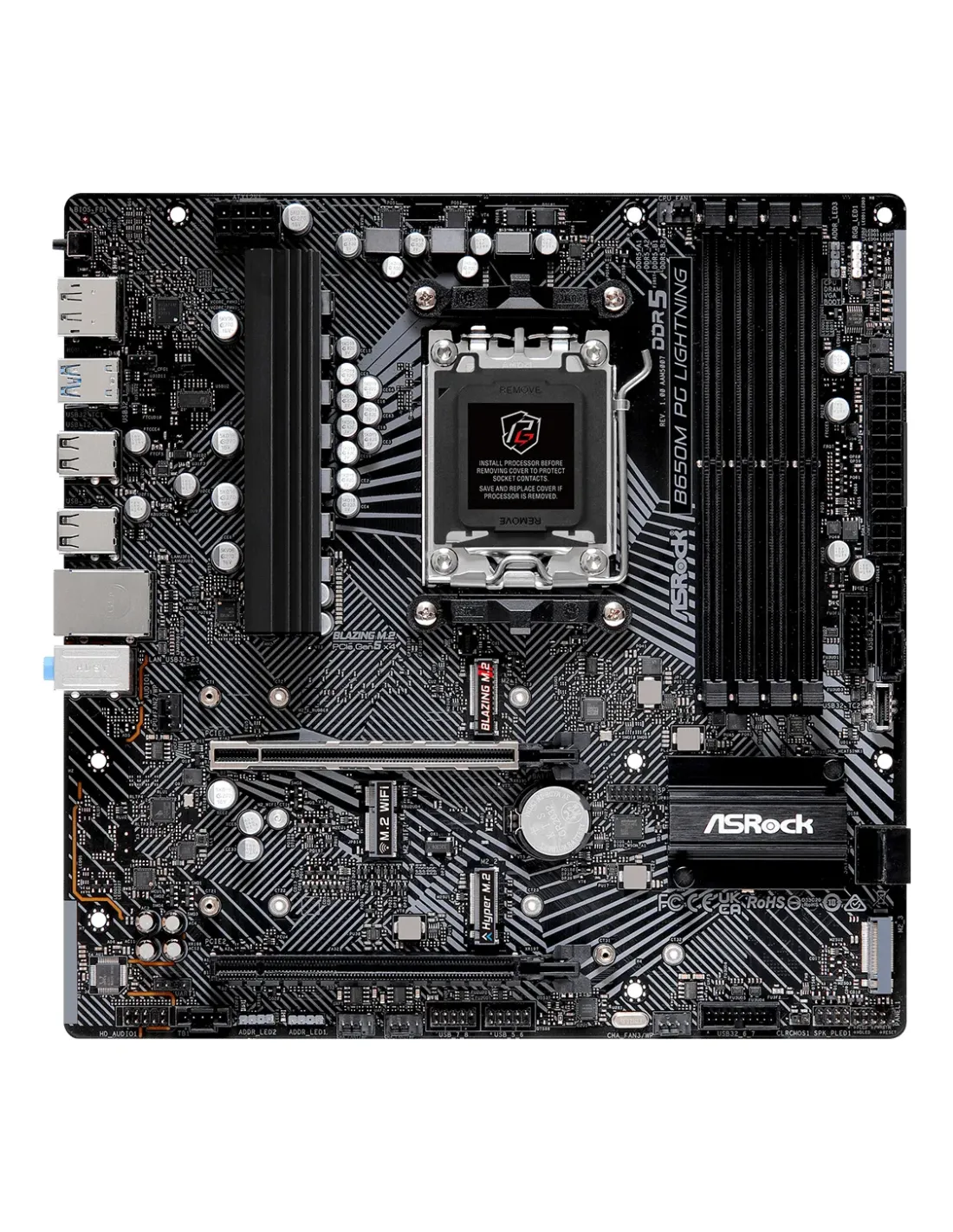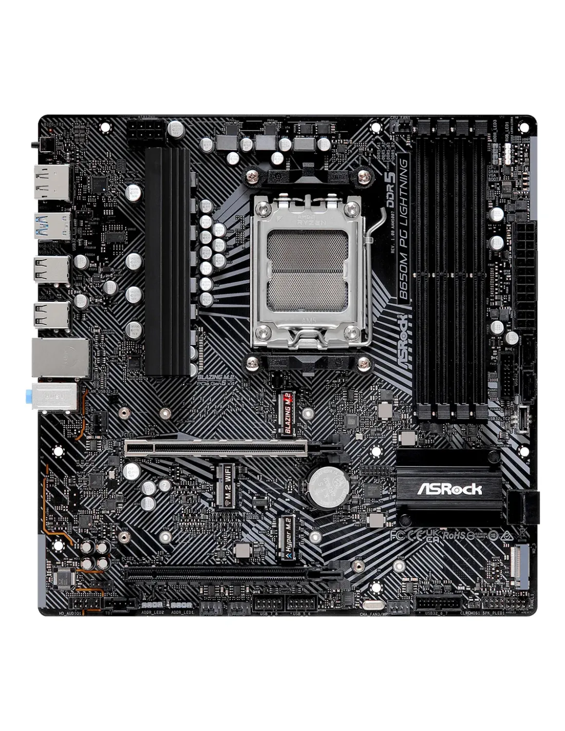 Asrock B650M PG Lightning. Produttore processore: AMD, Presa per processore: Socket AM5, Processori compatibili: AMD Ryzen 7000 Series. Tipi di memoria supportati: DDR5-SDRAM, RAM massima supportata: 192 GB, tipo di slot di memoria: DIMM. Interfacce dell'unità di archiviazione supportate: M.2, PCI Express 4.0, PCI Express 5.0, SATA III, Tipi di unità di archiviazione supportate: HDD & SSD, Livelli RAID: 0, 1, 10. Tecnologia di processo parallela: CrossFire, Risoluzione massima: 3840 x 2160 Pixel. Connettore USB: USB tipo A, USB tipo-C
