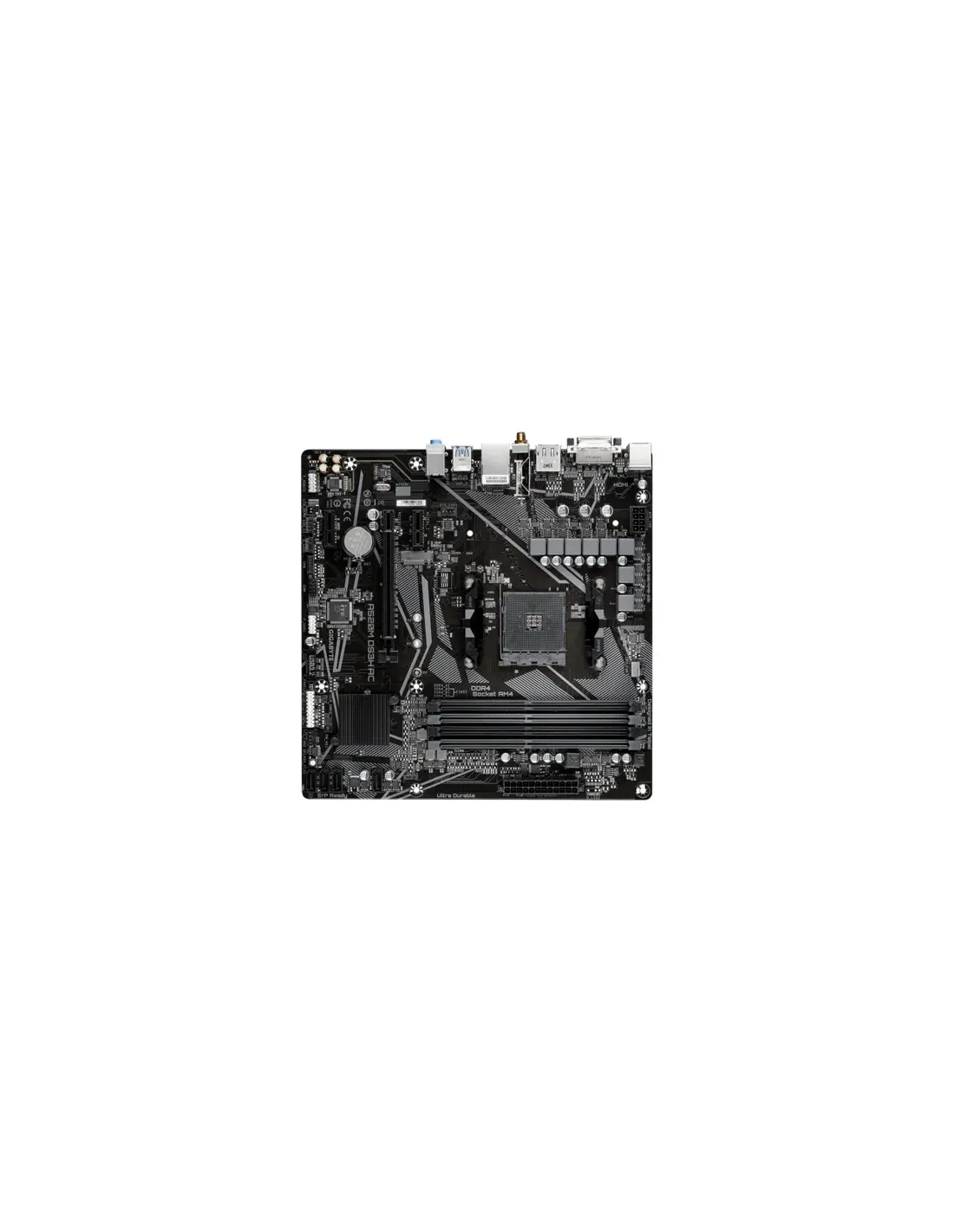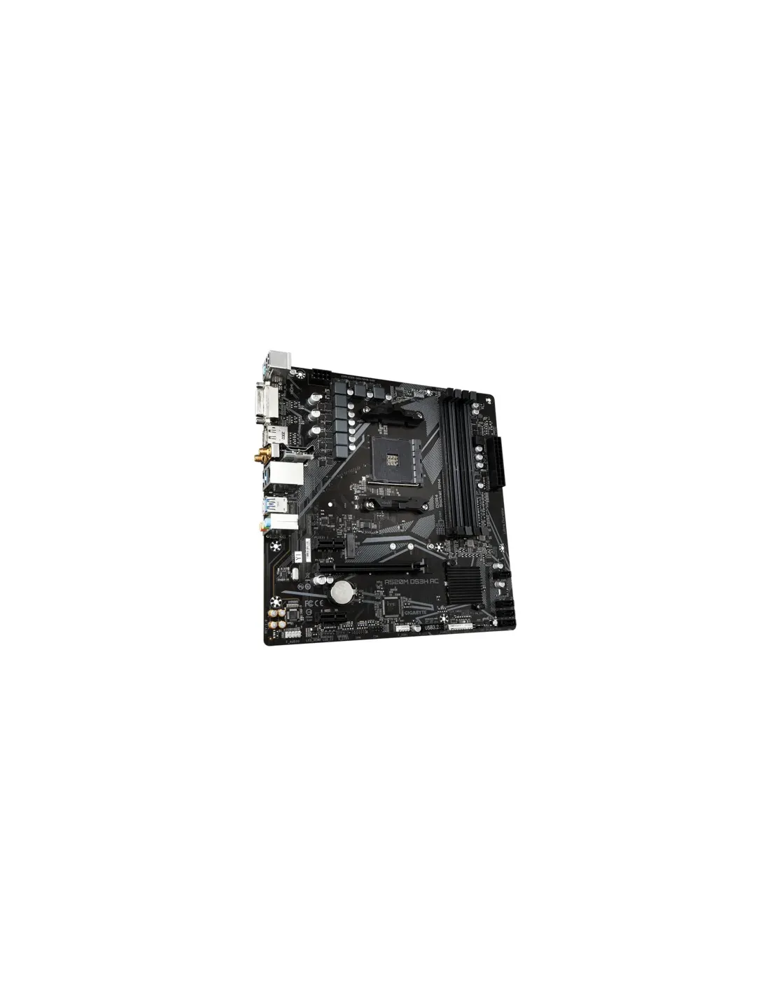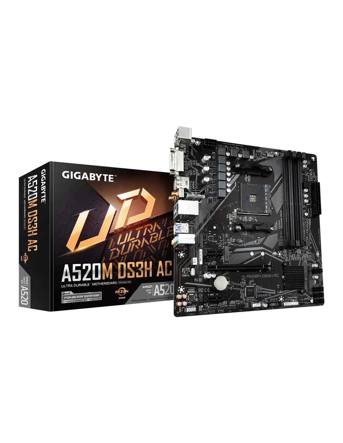GIGABYTE A520M DS3H AC Scheda Madre - CPU AMD Ryzen Serie 5000, VRM 5+3 fasi, fino a 4733 MHz DDR5 (OC), 1xPCIe 3.0 M.2, LAN GbE, WIFI 5, USB 3.2 Gen 1. Produttore processore: AMD, Presa per processore: Socket AM4, Processori compatibili: AMD Ryzen 3000 Series, AMD Ryzen Threadripper 3000 Series, AMD Ryzen Threadripper PRO 3000 WX-Series. Tipi di memoria supportati: DDR4-SDRAM, RAM massima supportata: 128 GB, tipo di slot di memoria: DIMM. Interfacce dell'unità di archiviazione supportate: M.2, SATA III, Tipi di unità di archiviazione supportate: HDD & SSD, Livelli RAID: 0, 1, 10. Risoluzione massima: 5120 x 2880 Pixel. Tipo di interfaccia Ethernet: Gigabit Ethernet, Wi-Fi standard: Wi-Fi 5 (802.11ac), Standard Wi-Fi: 802.11a, 802.11b, 802.11g, Wi-Fi 4 (802.11n), Wi-Fi 5 (802.11ac)