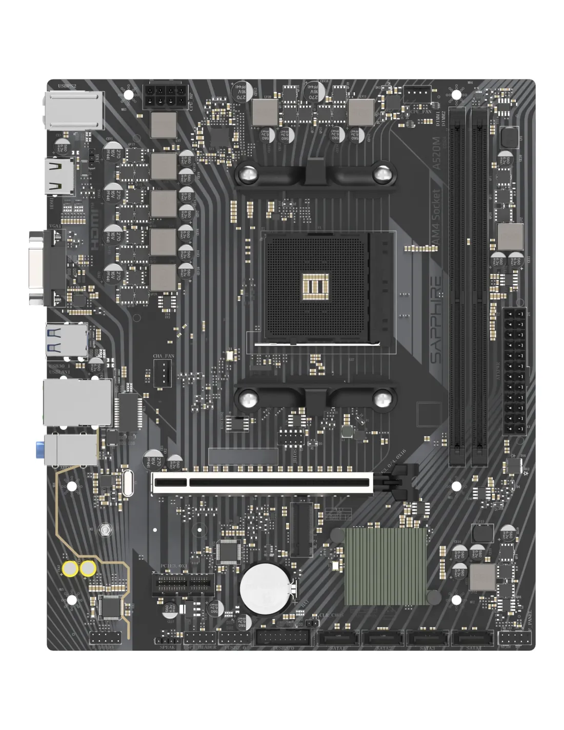 SapphireSapphire A520M-E, AMD, Socket AM4, AMD Ryzen 3000 Series, AMD Ryzen 4000 Series, AMD Ryzen 5000 Series, Socket AM4, DDR4-SDRAM, 64 GB