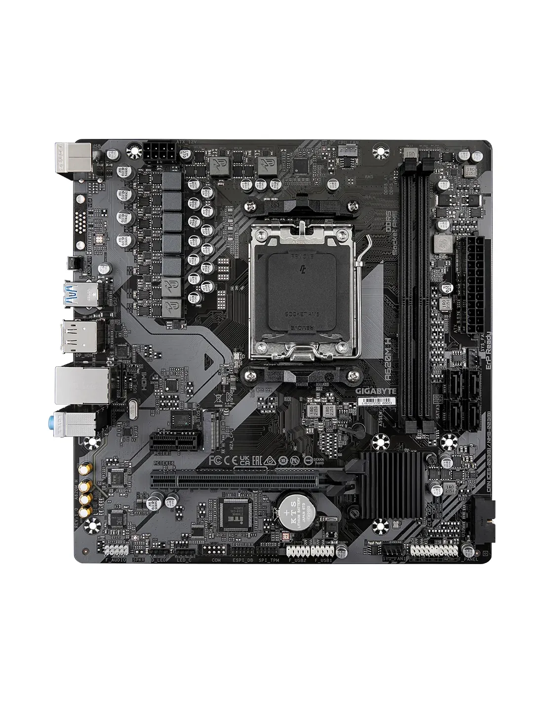 GIGABYTE A620M H Scheda madre - Supporta CPU AMD Ryzen 8000, VRM digitale 5+2+2 fasi, fino a 7200MHz DDR5 (OC), 1xPCIe 4.0 M.2, GbE LAN, USB 3.2 Gen 1. Produttore processore: AMD, Presa per processore: Socket AM5, Processori compatibili: AMD Ryzen 7000 Series. Tipi di memoria supportati: DDR5-SDRAM, RAM massima supportata: 96 GB, tipo di slot di memoria: DIMM. Interfacce dell'unità di archiviazione supportate: M.2, SATA III, Tipi di unità di archiviazione supportate: HDD & SSD, Livelli RAID: 0, 1, 10. Risoluzione massima: 4096 x 2160 Pixel. Connettore USB: USB tipo A, USB tipo-C