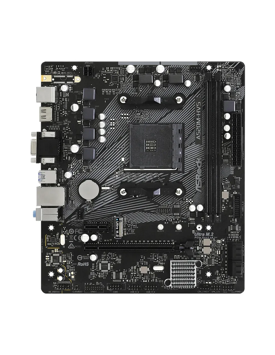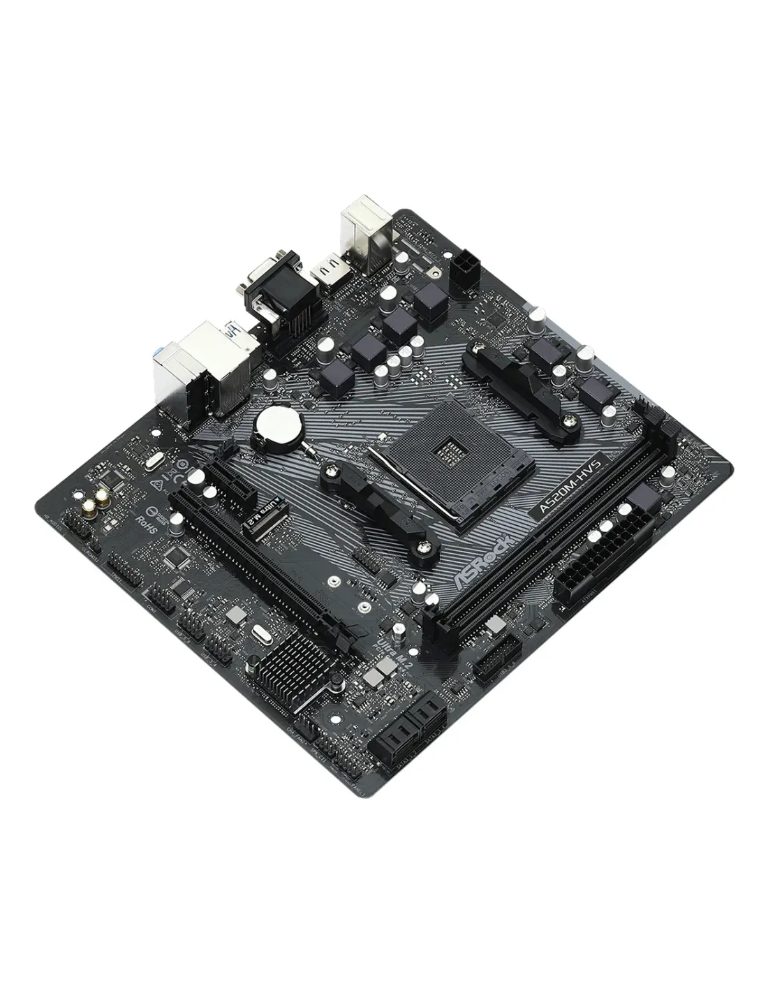 Asrock A520M-HVS. Produttore processore: AMD, Presa per processore: Socket AM4, Processori compatibili: AMD Ryzen 3000 Series. Tipi di memoria supportati: DDR4-SDRAM, RAM massima supportata: 64 GB, tipo di slot di memoria: DIMM. Interfacce dell'unità di archiviazione supportate: M.2, SATA III. Famiglia della scheda grafica: AMD, Adattatore grafico: Radeon Vega. Tipo di interfaccia Ethernet: Gigabit Ethernet, Controller LAN: Realtek RTL8111H