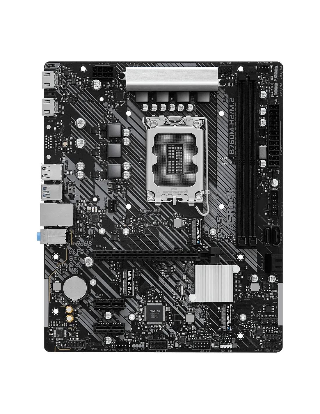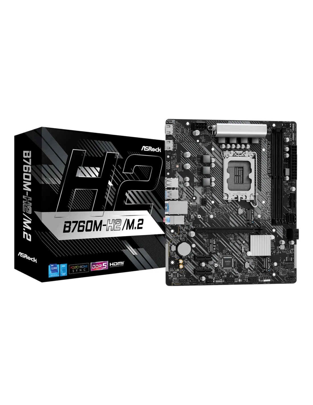 Asrock B760M-H2/M.2. Produttore processore: Intel, Presa per processore: LGA 1700, Processori compatibili: Intel® Core™ i3, Intel® Core™ i5, Intel® Core™ i7, Intel® Core™ i9. Tipi di memoria supportati: DDR5-SDRAM, RAM massima supportata: 128 GB, tipo di slot di memoria: DIMM. Interfacce dell'unità di archiviazione supportate: M.2, SATA III, Livelli RAID: 0, 1, 5, 10. Tipo di interfaccia Ethernet: 2.5 Gigabit Ethernet. Componente per: PC, Fattore di forma scheda madre: micro ATX, Famiglia di chipset per scheda madre: Intel