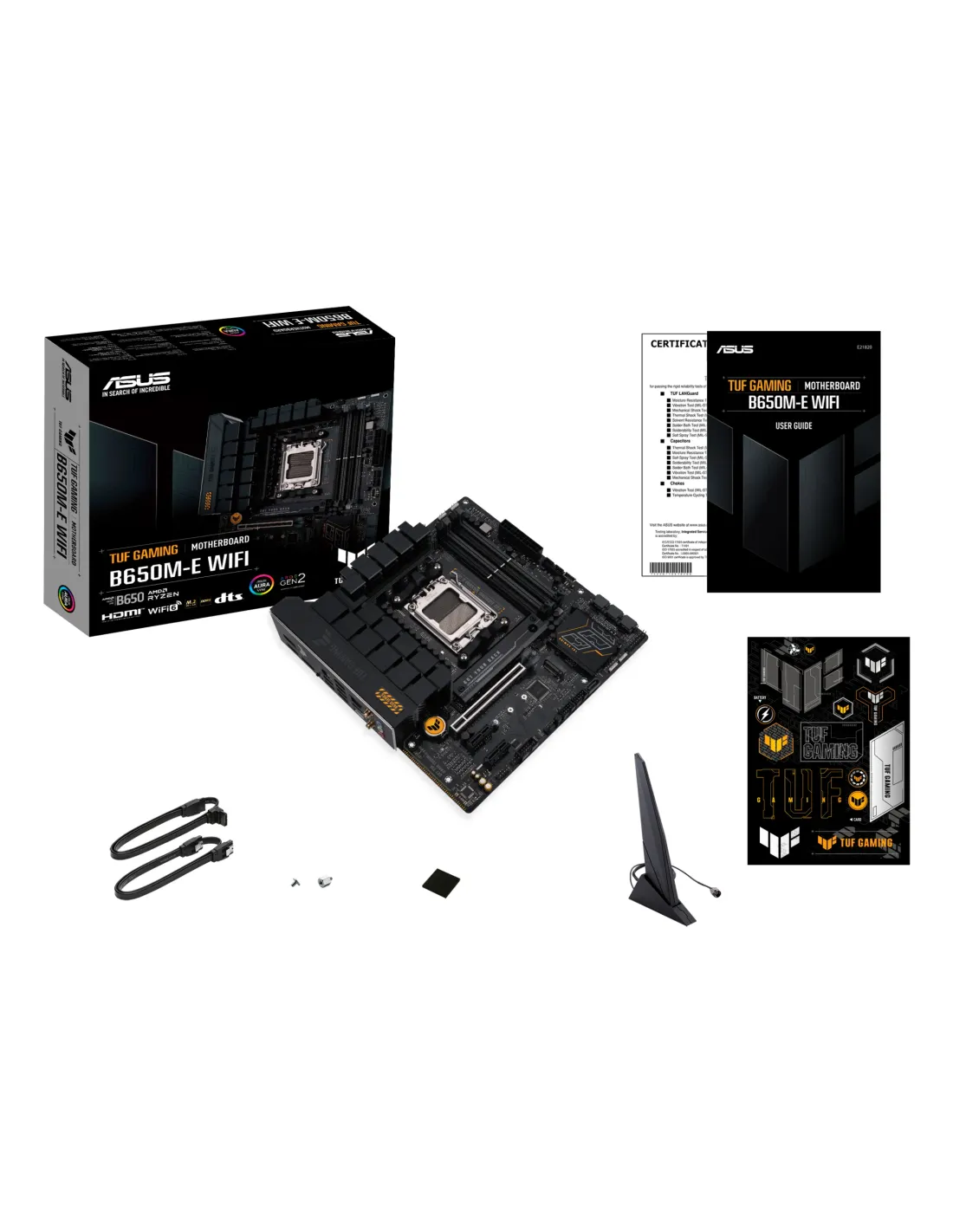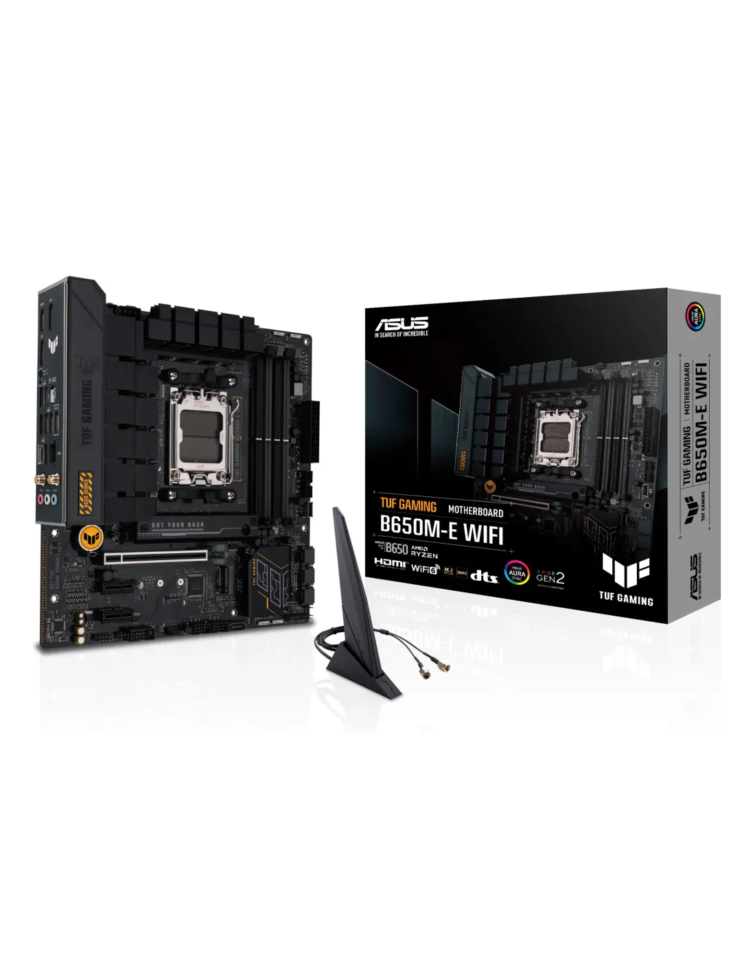 ASUS TUF GAMING B650M-E WIFI. Produttore processore: AMD, Presa per processore: Socket AM5, Processori compatibili: AMD Ryzen 7000 Series. Tipi di memoria supportati: DDR5-SDRAM, RAM massima supportata: 128 GB, tipo di slot di memoria: DIMM. Interfacce dell'unità di archiviazione supportate: M.2, SATA III, Tipi di unità di archiviazione supportate: HDD & SSD, Livelli RAID: 0, 1, 10. Tipo di interfaccia Ethernet: 2.5 Gigabit Ethernet, Gigabit Ethernet, Wi-Fi standard: Wi-Fi 6 (802.11ax), Standard Wi-Fi: 802.11a, 802.11b, 802.11g, Wi-Fi 4 (802.11n), Wi-Fi 5 (802.11ac), Wi-Fi 6 (802.11ax). Componente per: PC, Fattore di forma scheda madre: micro ATX, Famiglia di chipset per scheda madre: AMD