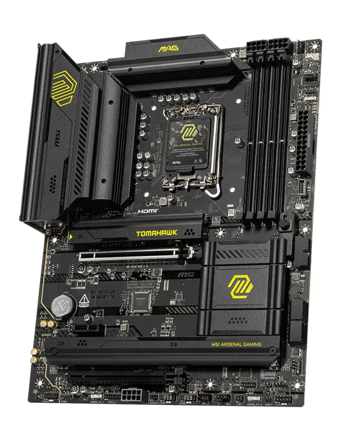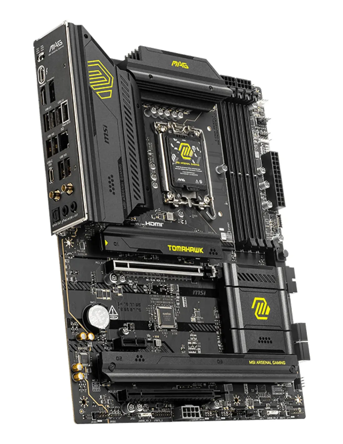 MSI MAG B860 TOMAHAWK WIFI. Produttore processore: Intel, Presa per processore: LGA 1851 (Socket V1), Processori compatibili: Intel Core Ultra (Series 2). Tipi di memoria supportati: DDR5-SDRAM, RAM massima supportata: 256 GB, tipo di slot di memoria: DIMM. Interfacce dell'unità di archiviazione supportate: M.2, Micro SATA III, Tipi di unità di archiviazione supportate: HDD & SSD, Livelli RAID: 0, 1, 5, 10. Tipo di interfaccia Ethernet: 5 Gigabit Ethernet, Wi-Fi standard: Wi-Fi 7 (802.11be), Standard Wi-Fi: 802.11a, 802.11b, 802.11g, Wi-Fi 4 (802.11n), Wi-Fi 5 (802.11ac), Wi-Fi 6 (802.11ax), Wi-Fi 6E.... Componente per: PC, Fattore di forma scheda madre: ATX, Famiglia di chipset per scheda madre: AMD
