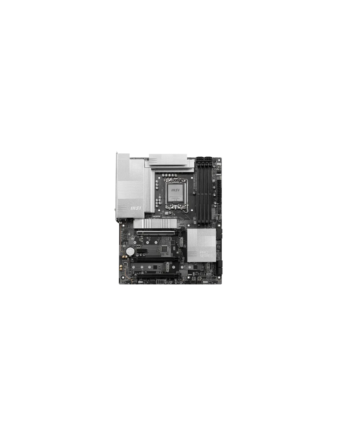 PRO Z890-P WIFI offre un design semplice con un armonioso schema di colori argento che si abbina perfettamente sia ai PC bianchi che a quelli neri. È progettato con molte caratteristiche oggi indispensabili come Wi-Fi 7 con antenna EZ, 5G LAN, Thunderbolt 4, PCIe 5.0 M.2 con EZ M.2 Shield Frozr II e alimentazione PCIe supplementare, pronto per i processori Intel® Core™ Ultra