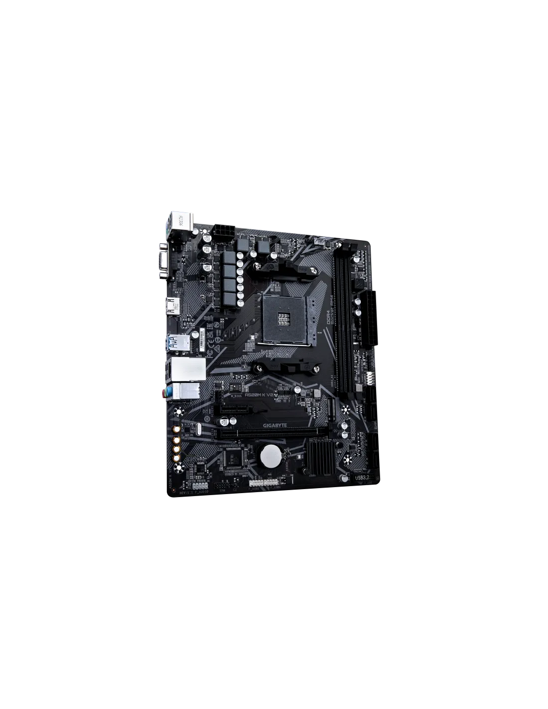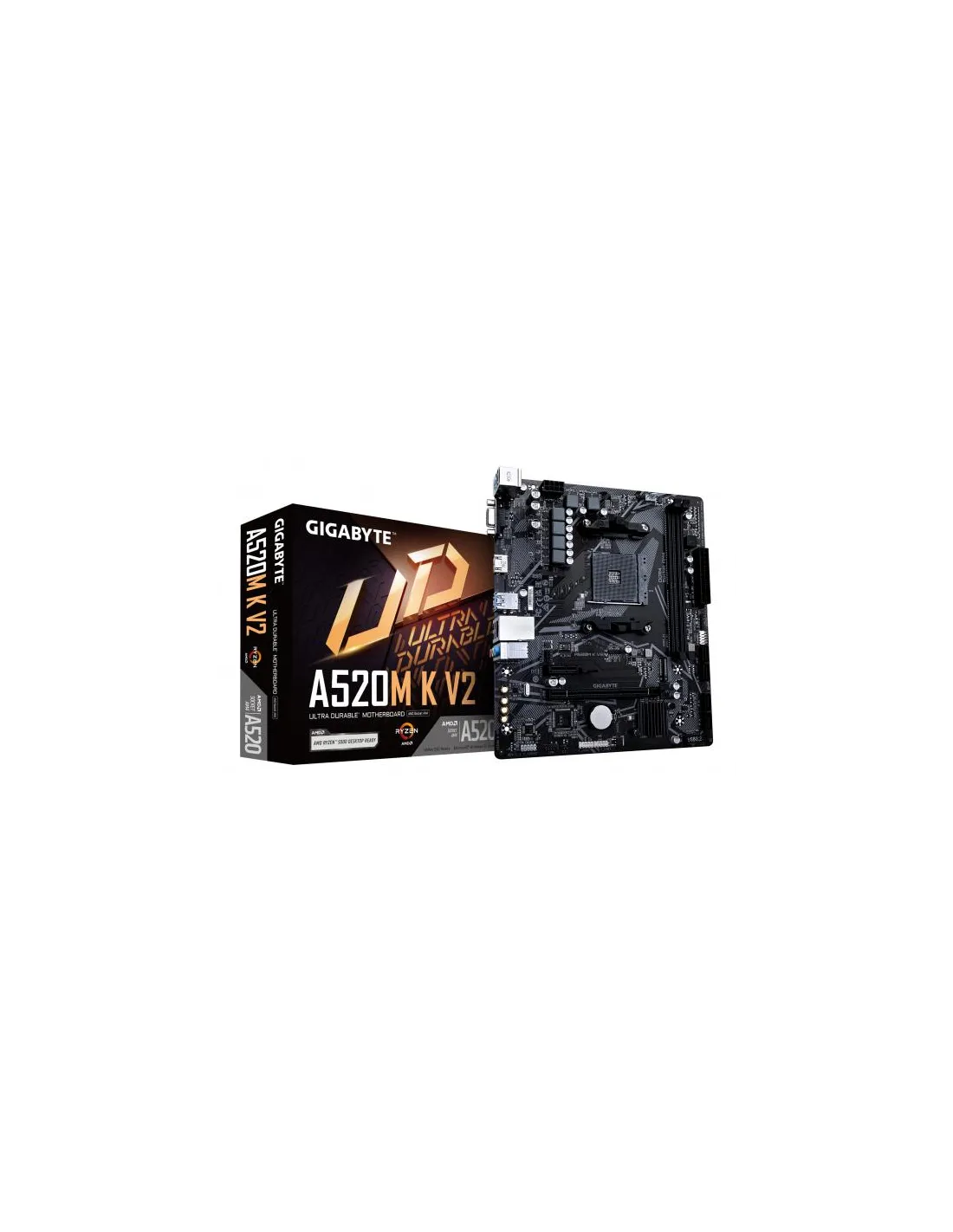 GIGABYTE Scheda madre A520M K V2 - Supporta CPU AMD Ryzen serie 5000 AM4, fino a 5100MHz DDR4 (OC), PCIe Gen3 x4 M.2, LAN GbE, USB 3.2 Gen 1. Produttore processore: AMD, Presa per processore: Socket AM4, Processori compatibili: AMD Ryzen 3000 Series, AMD Ryzen 5000 Series. Tipi di memoria supportati: DDR4-SDRAM, RAM massima supportata: 64 GB, tipo di slot di memoria: DIMM. Interfacce dell'unità di archiviazione supportate: M.2, SATA III, Tipi di unità di archiviazione supportate: HDD & SSD, Livelli RAID: 0, 1, 10. Risoluzione massima: 4096 x 2160 Pixel. Connettore USB: USB tipo A