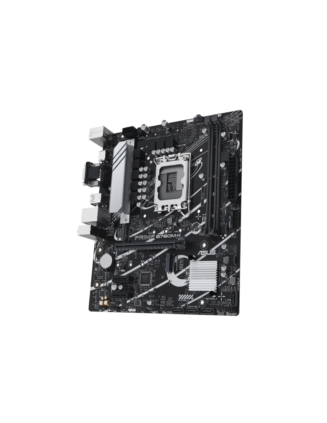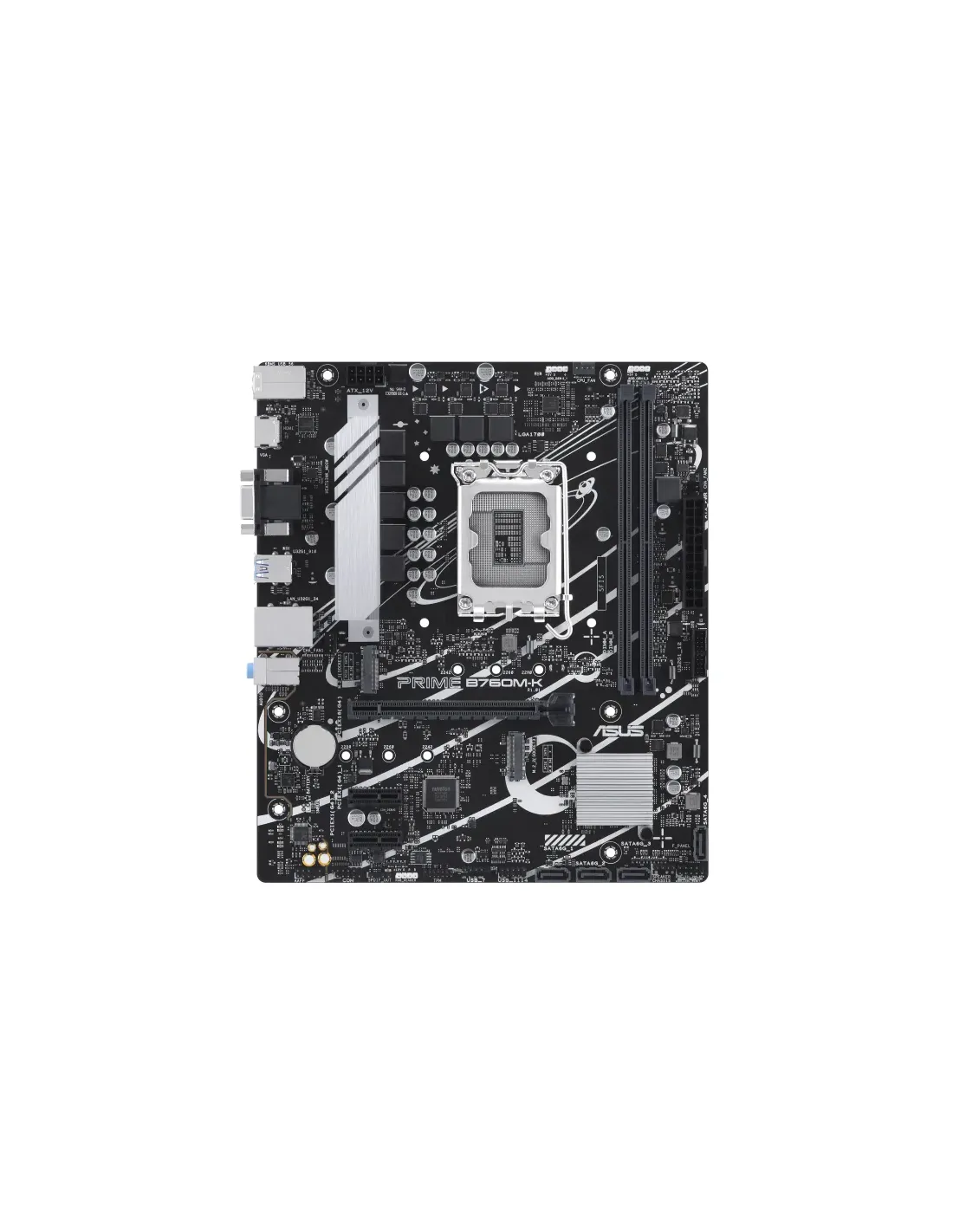 ASUS PRIME B760M-K. Produttore processore: Intel, Presa per processore: LGA 1700, Processori compatibili: Intel® Celeron®, Intel® Pentium® Gold, Intel® Core™ i3, Intel® Core™ i5, Intel® Core™.... Tipi di memoria supportati: DDR5-SDRAM, RAM massima supportata: 96 GB, tipo di slot di memoria: DIMM. Interfacce dell'unità di archiviazione supportate: M.2, SATA III, Tipi di unità di archiviazione supportate: HDD & SSD, Livelli RAID: 0, 1, 5, 10. Tipo di interfaccia Ethernet: 2.5 Gigabit Ethernet. Componente per: PC, Fattore di forma scheda madre: micro ATX, Famiglia di chipset per scheda madre: Intel