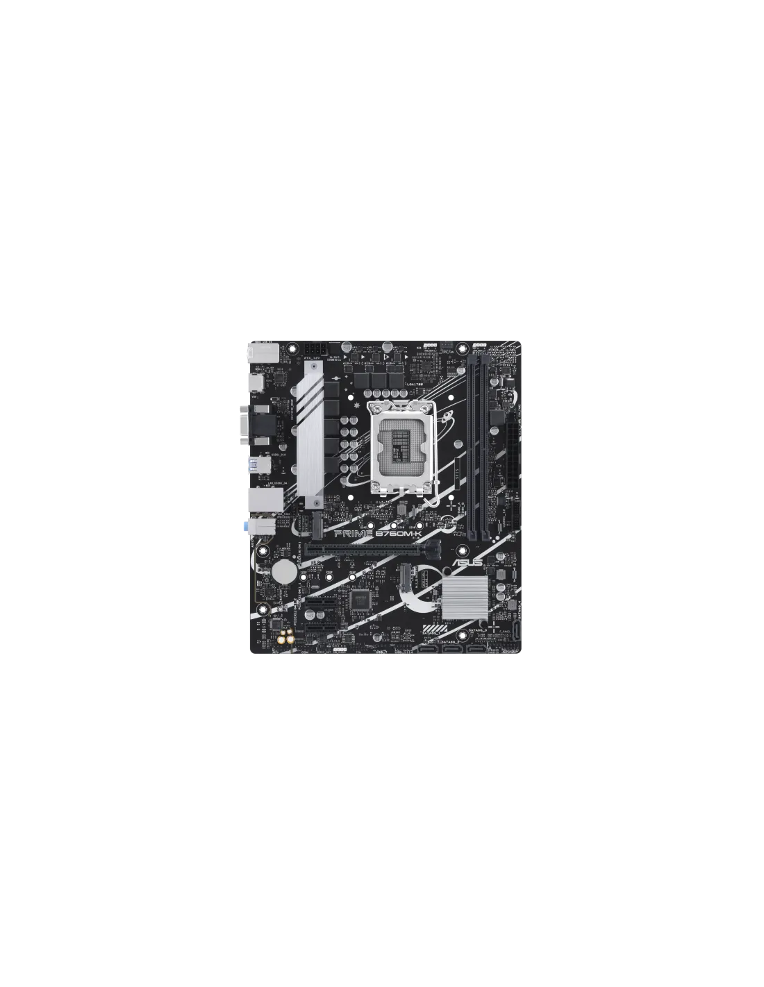 ASUS Prime B760 M-K, una scheda madre Intel ® B760 LGA 1700 mATX con PCIe 4.0, due slot PCIe 4.0 M.2, DDR5, Realtek 2.5Gb Ethernet, VGA, HDMI™, SATA 6 Gbps, USB 3.2 frontale Gen 1, Aura Sync.