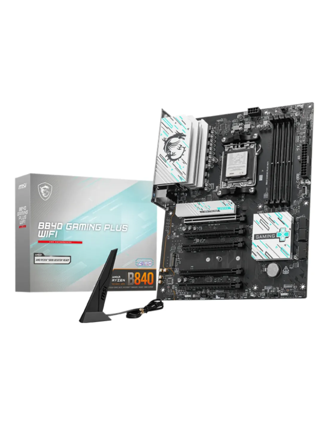 MSI B840 GAMING PLUS WIFI. Produttore processore: AMD, Presa per processore: Socket AM5, Processori compatibili: AMD Ryzen 7000 Series, AMD Ryzen 8000 Series, AMD Ryzen 9000 Series. Tipi di memoria supportati: DDR5-SDRAM, RAM massima supportata: 256 GB, tipo di slot di memoria: DIMM. Interfacce dell'unità di archiviazione supportate: M.2, Micro SATA III, Tipi di unità di archiviazione supportate: HDD & SSD, Livelli RAID: 0, 1, 10. Tipo di interfaccia Ethernet: 2.5 Gigabit Ethernet, Wi-Fi standard: Wi-Fi 7 (802.11be), Standard Wi-Fi: 802.11a, 802.11b, 802.11g, Wi-Fi 4 (802.11n), Wi-Fi 5 (802.11ac), Wi-Fi 6 (802.11ax), Wi-Fi 6E.... Componente per: PC, Fattore di forma scheda madre: ATX, Famiglia di chipset per scheda madre: AMD
