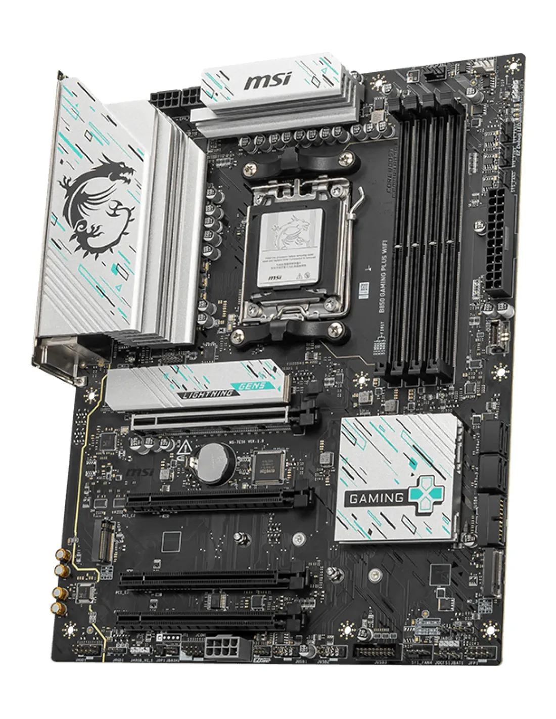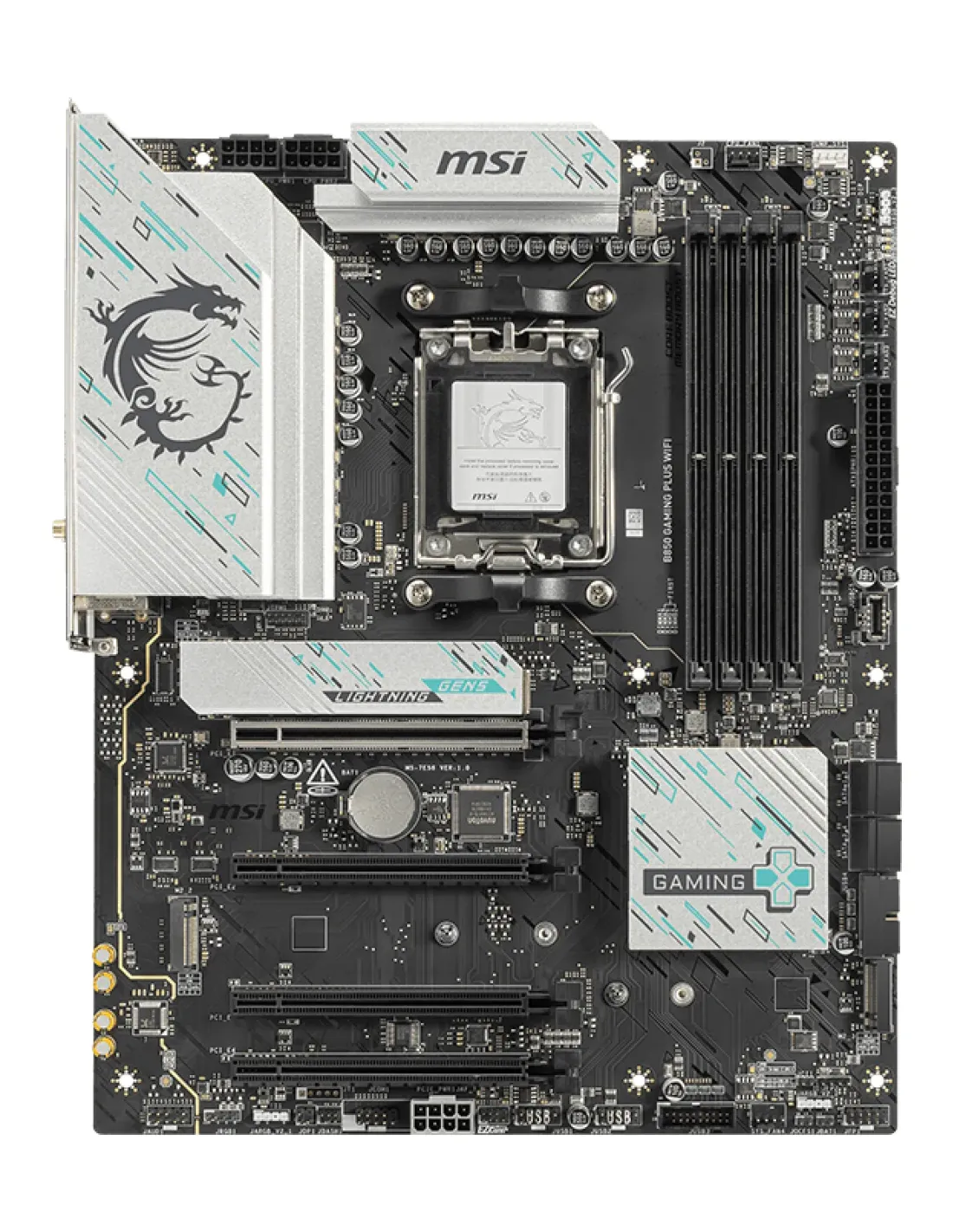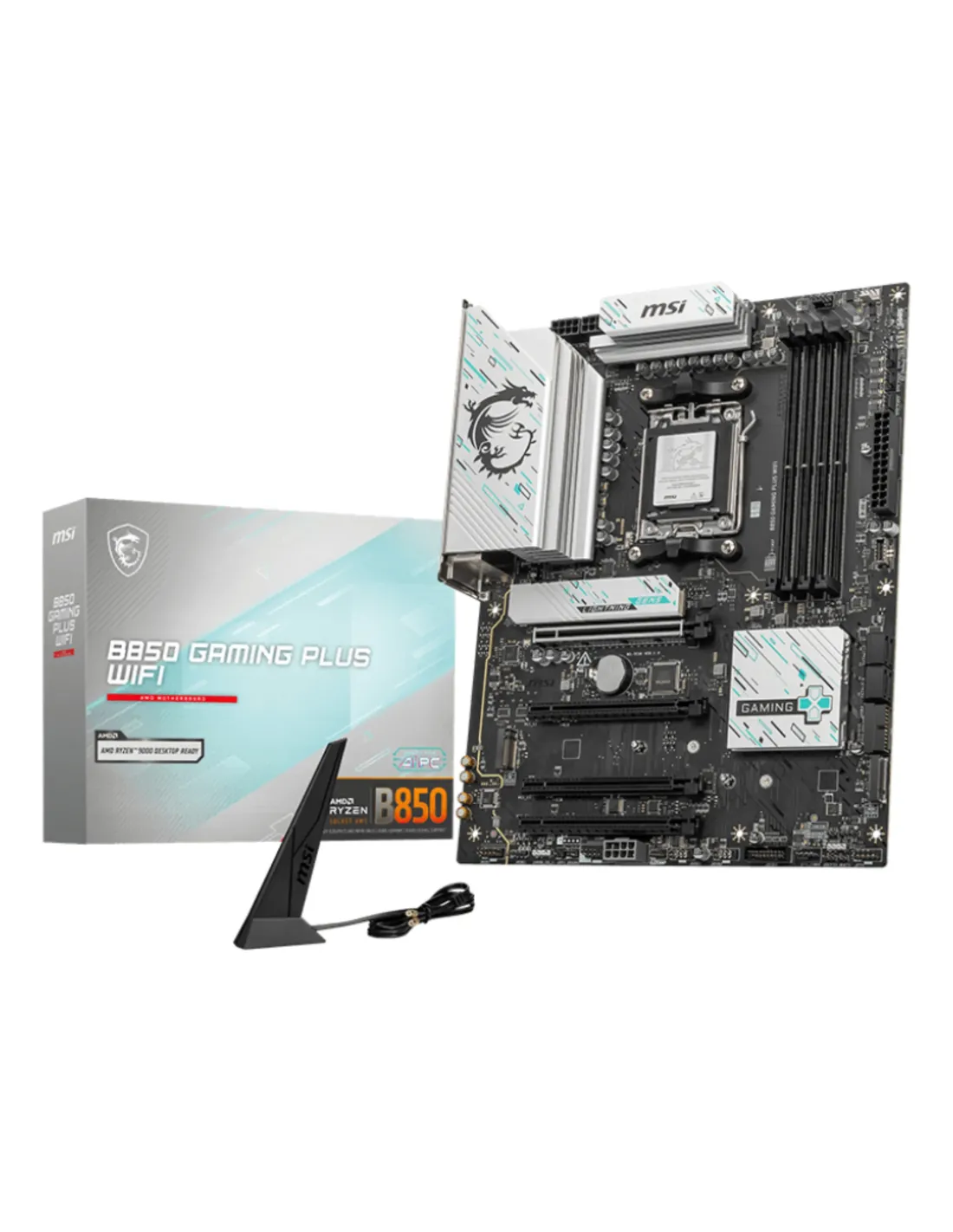 MSI B850 GAMING PLUS WIFI. Produttore processore: AMD, Presa per processore: Socket AM5, Processori compatibili: AMD Ryzen 7000 Series, AMD Ryzen 8000 Series, AMD Ryzen 9000 Series. Tipi di memoria supportati: DDR5-SDRAM, RAM massima supportata: 256 GB, tipo di slot di memoria: DIMM. Interfacce dell'unità di archiviazione supportate: M.2, Micro SATA III, Tipi di unità di archiviazione supportate: HDD & SSD, Livelli RAID: 0, 1. Tipo di interfaccia Ethernet: 5 Gigabit Ethernet, Wi-Fi standard: Wi-Fi 7 (802.11be), Standard Wi-Fi: 802.11a, 802.11b, 802.11g, Wi-Fi 4 (802.11n), Wi-Fi 5 (802.11ac), Wi-Fi 6 (802.11ax), Wi-Fi 6E.... Componente per: PC, Fattore di forma scheda madre: ATX, Famiglia di chipset per scheda madre: AMD