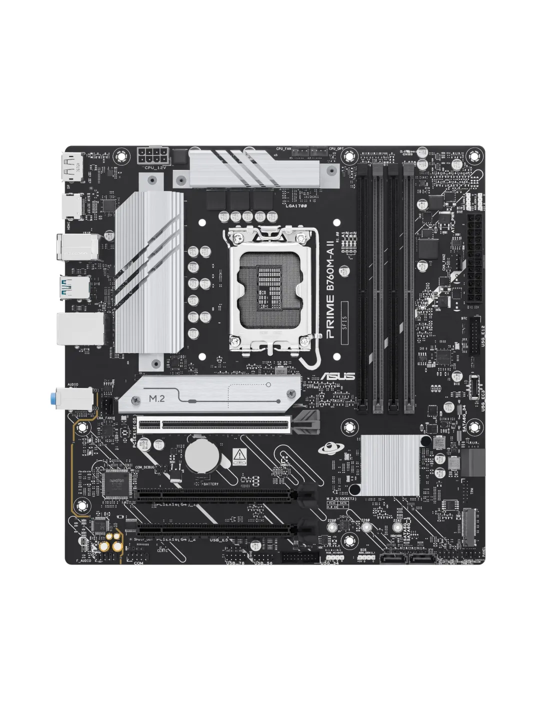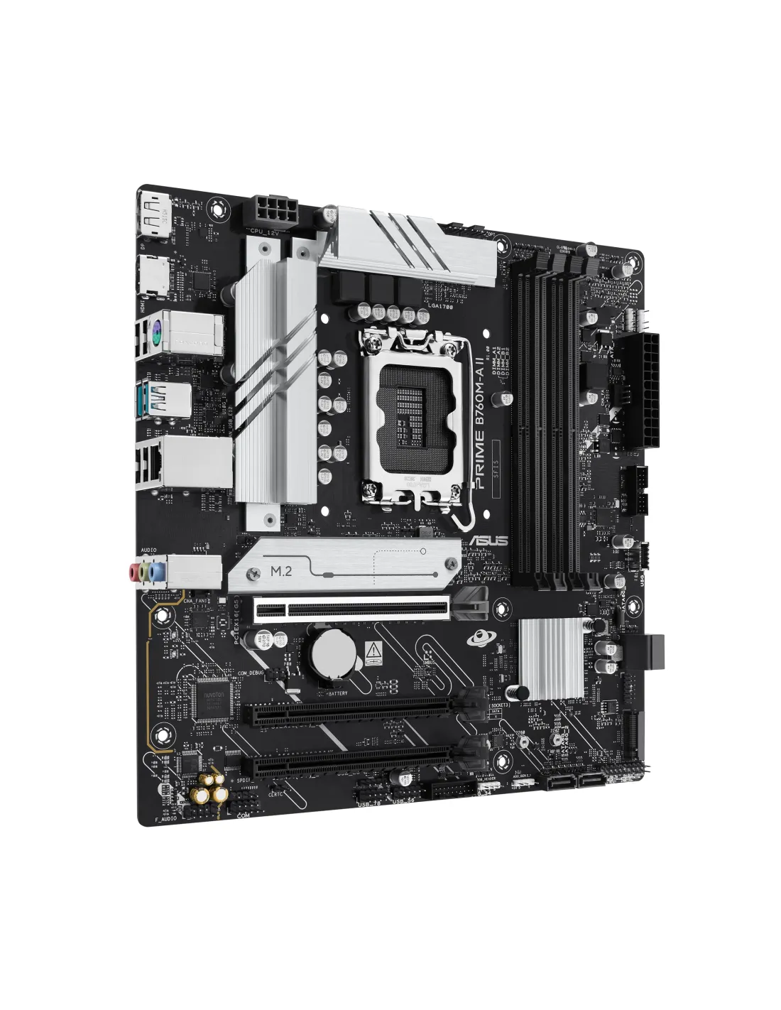 ASUS PRIME B760M-A II-CSM. Produttore processore: Intel, Presa per processore: LGA 1700, Processori compatibili: Intel® Celeron®, Intel® Pentium® Gold, Intel® Core™ i3, Intel® Core™ i5, Intel® Core™.... Tipi di memoria supportati: DDR5-SDRAM, RAM massima supportata: 256 GB, tipo di slot di memoria: DIMM. Interfacce dell'unità di archiviazione supportate: M.2, PCI Express 4.0, SATA III, Tipi di unità di archiviazione supportate: HDD & SSD, Livelli RAID: 0, 1, 5, 10. Risoluzione massima: 3840 x 2160 Pixel. Tipo di interfaccia Ethernet: 2.5 Gigabit Ethernet