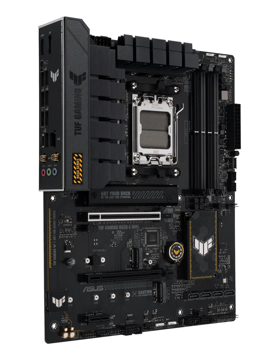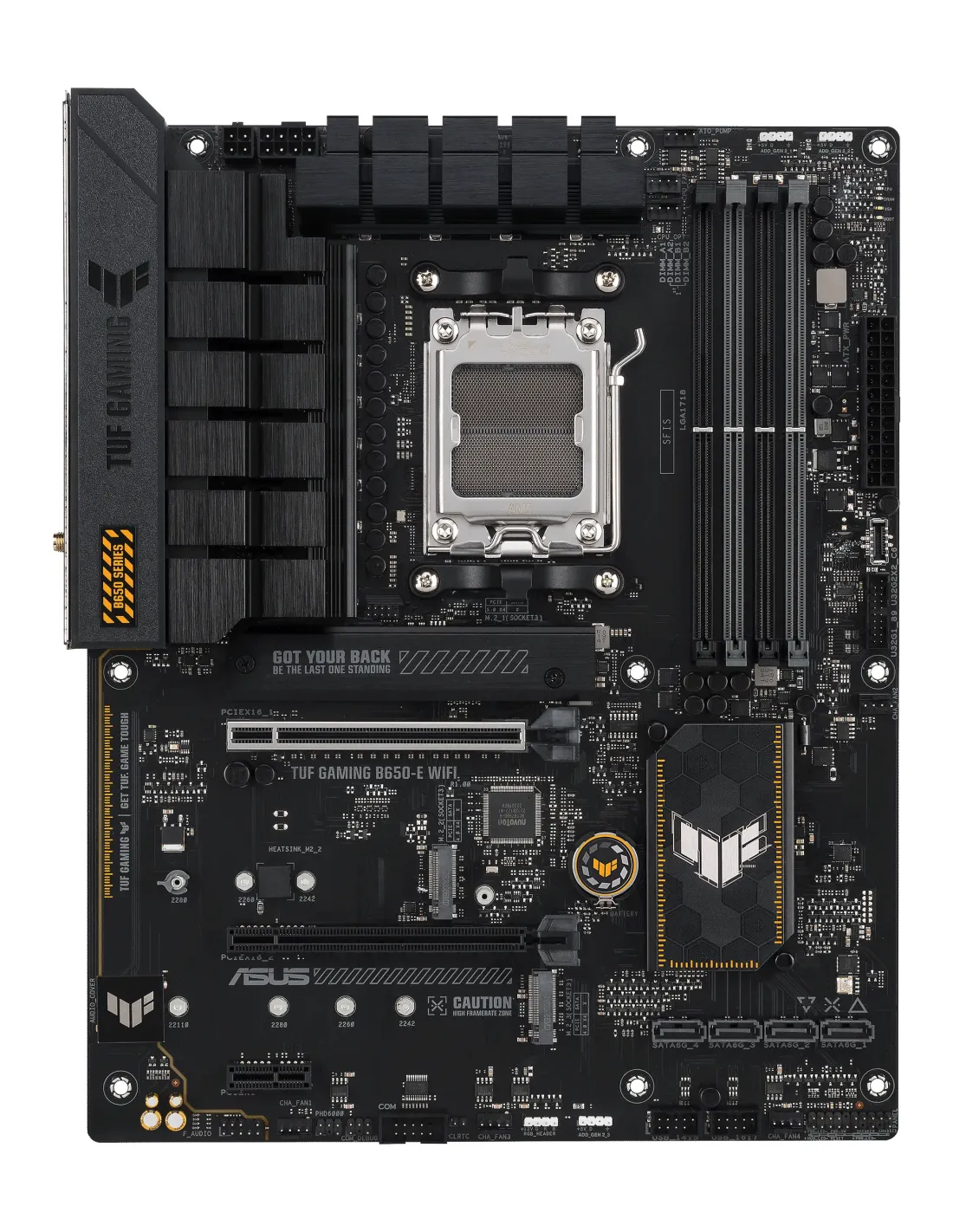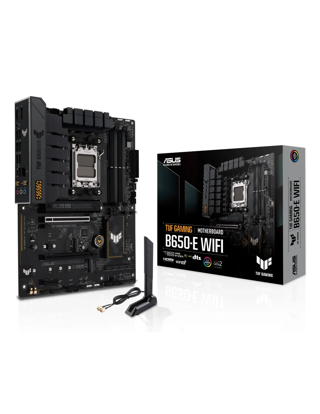 ASUS TUF GAMING B650-E WIFI. Produttore processore: AMD, Presa per processore: Socket AM5, Socket Processori supportati: Socket AM5. Tipi di memoria supportati: DDR5-SDRAM, RAM massima supportata: 192 GB, tipo di slot di memoria: DIMM. Interfacce dell'unità di archiviazione supportate: M.2, SATA III, Tipi di unità di archiviazione supportate: HDD & SSD, Livelli RAID: 0, 1, 10. Tipo di interfaccia Ethernet: 2.5 Gigabit Ethernet, Wi-Fi standard: Wi-Fi 6E (802.11ax), Standard Wi-Fi: 802.11a, 802.11b, 802.11g, Wi-Fi 4 (802.11n), Wi-Fi 5 (802.11ac), Wi-Fi 6 (802.11ax), Wi-Fi 6E.... Componente per: PC, Fattore di forma scheda madre: ATX, Famiglia di chipset per scheda madre: AMD