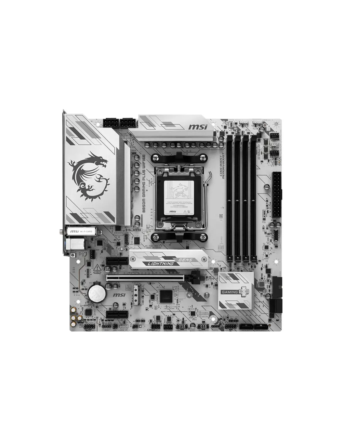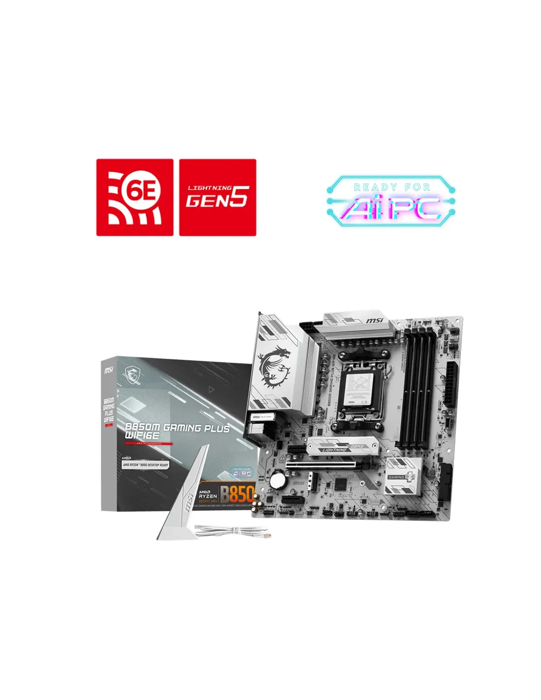 MSI B850M GAMING PLUS WIFI6E. Produttore processore: AMD, Presa per processore: Socket AM5, Processori compatibili: AMD Ryzen 7000 Series, AMD Ryzen 8000 Series, AMD Ryzen 9000 Series. Tipi di memoria supportati: DDR5-SDRAM, RAM massima supportata: 256 GB, tipo di slot di memoria: DIMM. Interfacce dell'unità di archiviazione supportate: M.2, Tipi di unità di archiviazione supportate: HDD & SSD, Livelli RAID: 0, 1, 10. Tipo di interfaccia Ethernet: 5 Gigabit Ethernet, Controller LAN: Realtek RTL8126, Wi-Fi standard: Wi-Fi 7 (802.11be). Componente per: PC, Fattore di forma scheda madre: micro ATX, Famiglia di chipset per scheda madre: AMD