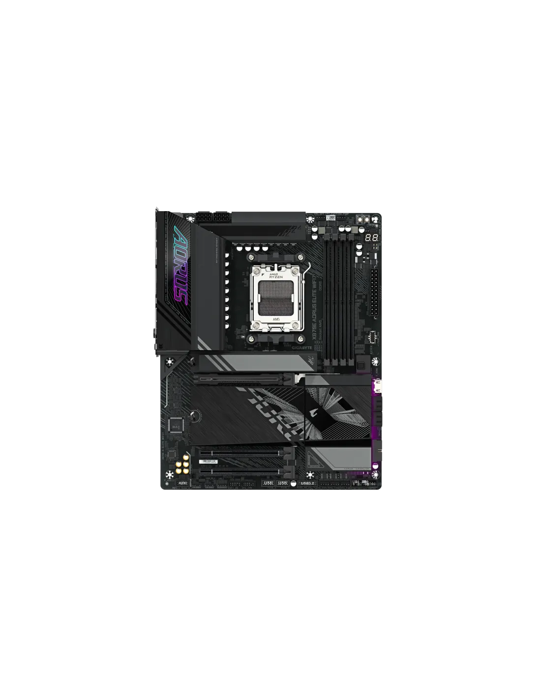 GIGABYTE X870E AORUS ELITE WIFI7 Scheda Madre - Supporta CPU AMD Ryzen 9000, 16+2+2 fasi VRM digitali, fino a 8000Hz DDR5 (OC), 3xPCIe 5.0 + 1xPCIe 4.0, Wi-Fi 7, LAN 2.5GbE, USB 4. Produttore processore: AMD, Presa per processore: Socket AM5, Processori compatibili: AMD Ryzen 7000 Series, AMD Ryzen 8000 Series, AMD Ryzen 9000 Series. Tipi di memoria supportati: DDR5-SDRAM, RAM massima supportata: 256 GB, tipo di slot di memoria: DIMM. Interfacce dell'unità di archiviazione supportate: M.2, SATA III, Tipi di unità di archiviazione supportate: HDD & SSD, Livelli RAID: 0, 1, 10. Tipo di interfaccia Ethernet: 2.5 Gigabit Ethernet, Controller LAN: Realtek RTL8125, Wi-Fi standard: Wi-Fi 7 (802.11be). Componente per: PC, Fattore di forma scheda madre: ATX, Famiglia di chipset per scheda madre: AMD