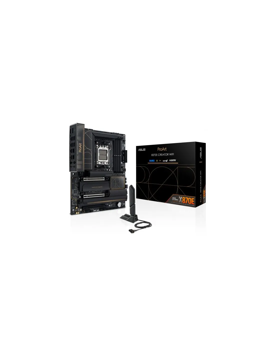 ASUS ProArt X870E-CREATOR WIFI. Produttore processore: AMD, Presa per processore: Socket AM5, Socket Processori supportati: Socket AM5. Tipi di memoria supportati: DDR5-SDRAM, RAM massima supportata: 192 GB, tipo di slot di memoria: DIMM. Interfacce dell'unità di archiviazione supportate: M.2, SATA III, Tipi di unità di archiviazione supportate: HDD & SSD, Livelli RAID: 0, 1, 10, 5. Tipo di interfaccia Ethernet: 2.5 Gigabit Ethernet, 10 Gigabit Ethernet, Wi-Fi standard: Wi-Fi 7 (802.11be), Standard Wi-Fi: Wi-Fi 7 (802.11be). Componente per: PC, Fattore di forma scheda madre: ATX, Famiglia di chipset per scheda madre: AMD