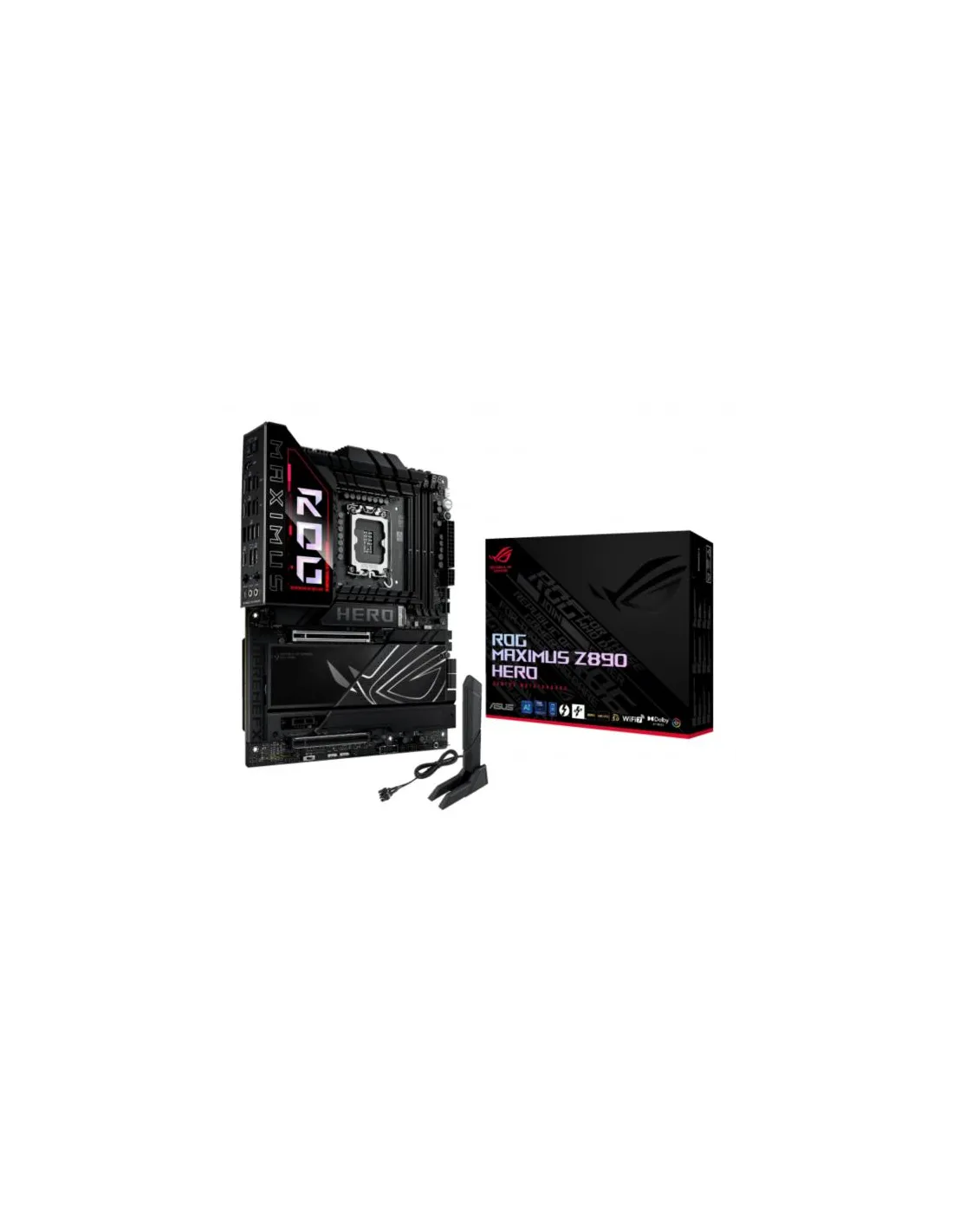 ASUS ROG MAXIMUS Z890 HERO. Produttore processore: Intel, Presa per processore: LGA 1851 (Socket V1), Processori compatibili: Intel Core Ultra (Series 2). Tipi di memoria supportati: DDR5-SDRAM, RAM massima supportata: 192 GB, tipo di slot di memoria: DIMM. Interfacce dell'unità di archiviazione supportate: M.2, SATA III, Tipi di unità di archiviazione supportate: HDD & SSD, Livelli RAID: 0, 1, 5. Connettore USB: USB tipo A, USB tipo-C. Tipo di interfaccia Ethernet: 2.5 Gigabit Ethernet, 5 Gigabit Ethernet, Wi-Fi standard: Wi-Fi 7 (802.11be)