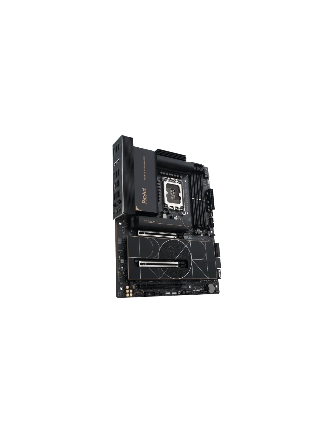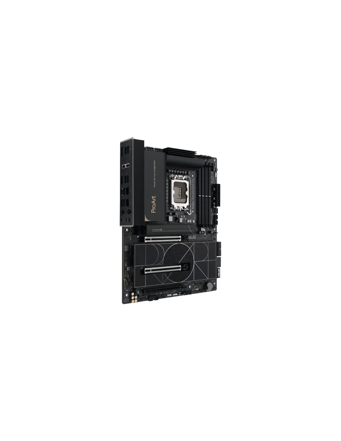 Questa scheda madre esprime una visione professionale, elegante e precisa per i creatori di contenuti di ogni tipo, con uno stile elevato da strati di nero tono su tono infusi con tocchi di oro metallico. Una cover I/O dal design raffinato conferisce un aspetto elegante e sofisticato, nascondendo al contempo i connettori di qualità superiore all'interno.