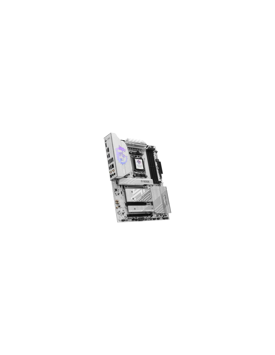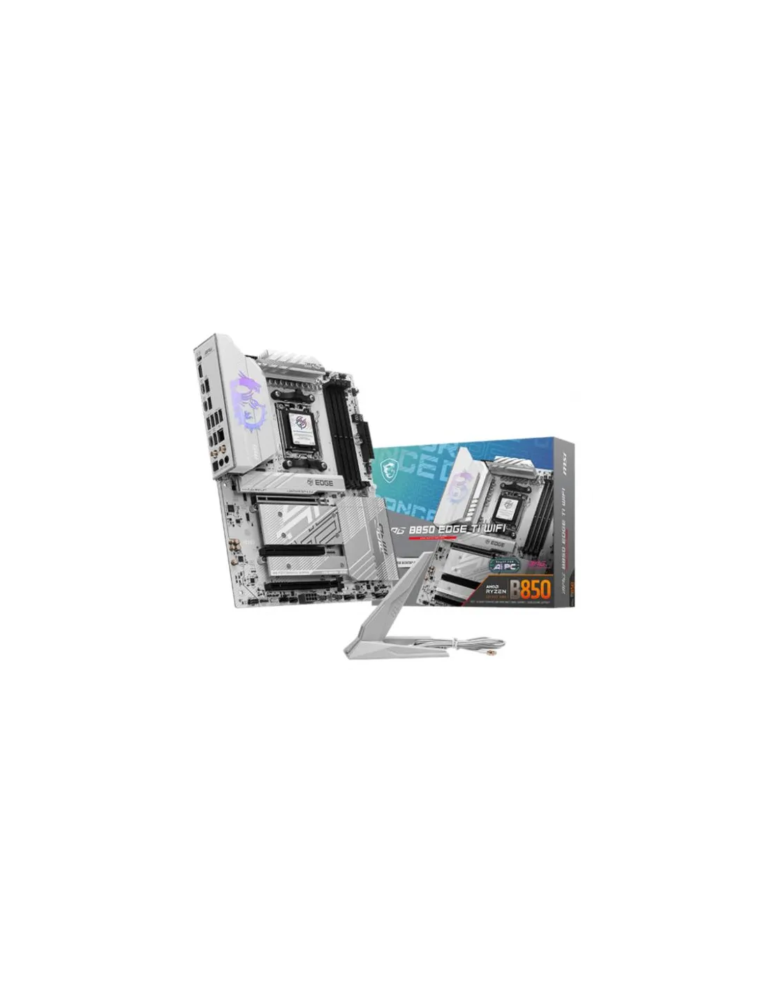 MSI MPG B850 EDGE TI WIFI. Produttore processore: AMD, Presa per processore: Socket AM5, Processori compatibili: AMD Ryzen 7000 Series, AMD Ryzen 8000 Series, AMD Ryzen 9000 Series. Tipi di memoria supportati: DDR5-SDRAM, RAM massima supportata: 256 GB, tipo di slot di memoria: DIMM. Interfacce dell'unità di archiviazione supportate: M.2, Micro SATA III, Tipi di unità di archiviazione supportate: HDD & SSD, Livelli RAID: 0, 1, 10. Tipo di interfaccia Ethernet: 2.5 Gigabit Ethernet, Wi-Fi standard: Wi-Fi 7 (802.11be), Standard Wi-Fi: 802.11a, 802.11b, 802.11g, Wi-Fi 4 (802.11n), Wi-Fi 5 (802.11ac), Wi-Fi 6 (802.11ax), Wi-Fi 6E.... Componente per: PC, Fattore di forma scheda madre: ATX, Famiglia di chipset per scheda madre: AMD