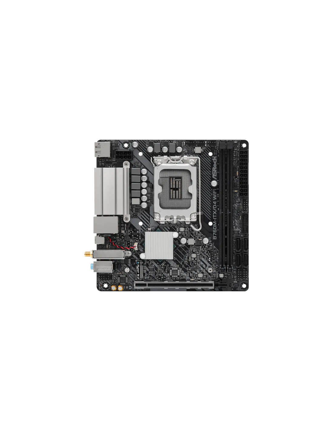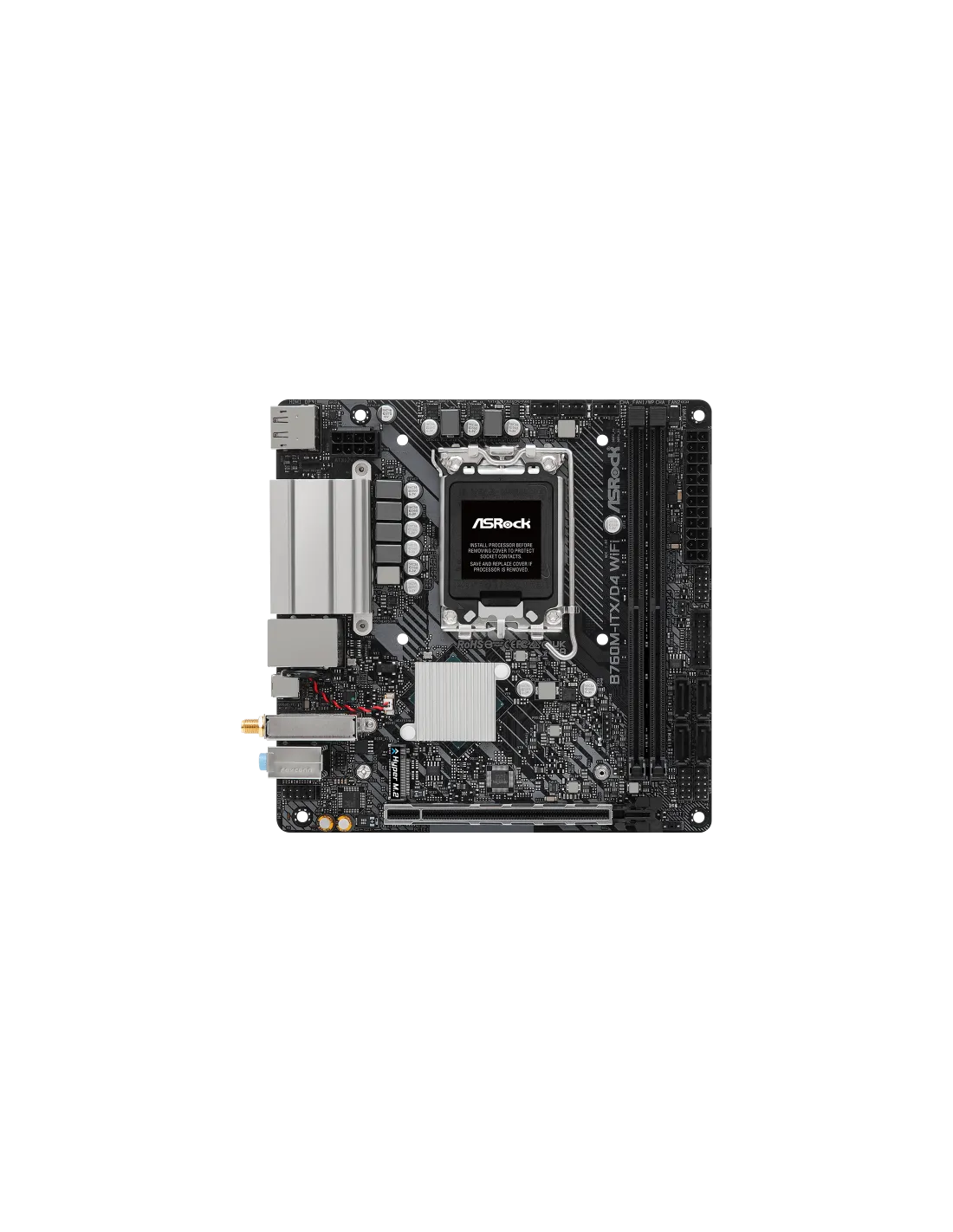 Asrock B760M-ITX/D4 WiFi. Produttore processore: Intel, Presa per processore: LGA 1700, Processori compatibili: Intel® Core™ i3, Intel® Core™ i5, Intel® Core™ i7, Intel® Core™ i9. Tipi di memoria supportati: DDR4-SDRAM, RAM massima supportata: 64 GB, tipo di slot di memoria: DIMM. Interfacce dell'unità di archiviazione supportate: M.2, SATA III, Tipi di unità di archiviazione supportate: HDD & SSD, Livelli RAID: 0, 1, 5, 10. Tipo di interfaccia Ethernet: Gigabit Ethernet, Controller LAN: Realtek RTL8111H, Wi-Fi standard: Wi-Fi 6E (802.11ax). Componente per: PC, Fattore di forma scheda madre: mini ITX, Famiglia di chipset per scheda madre: Intel