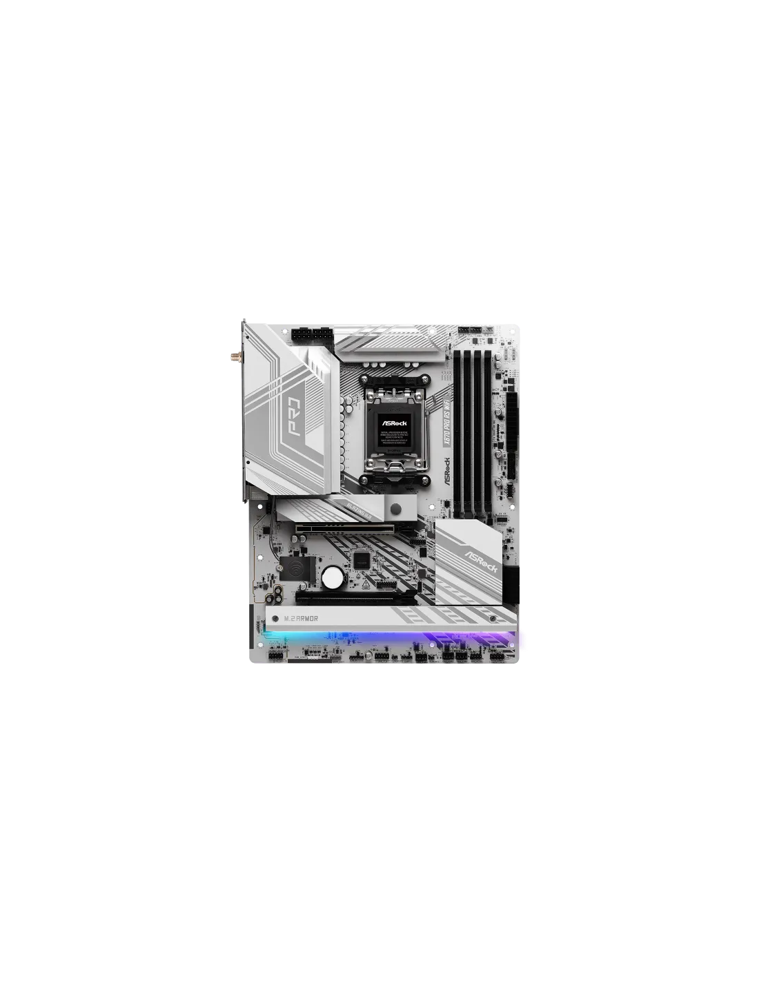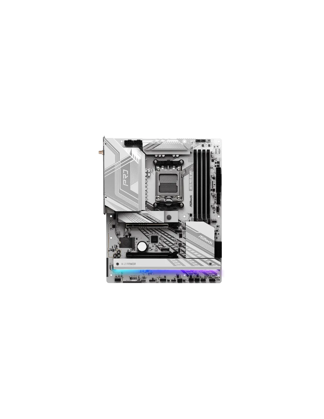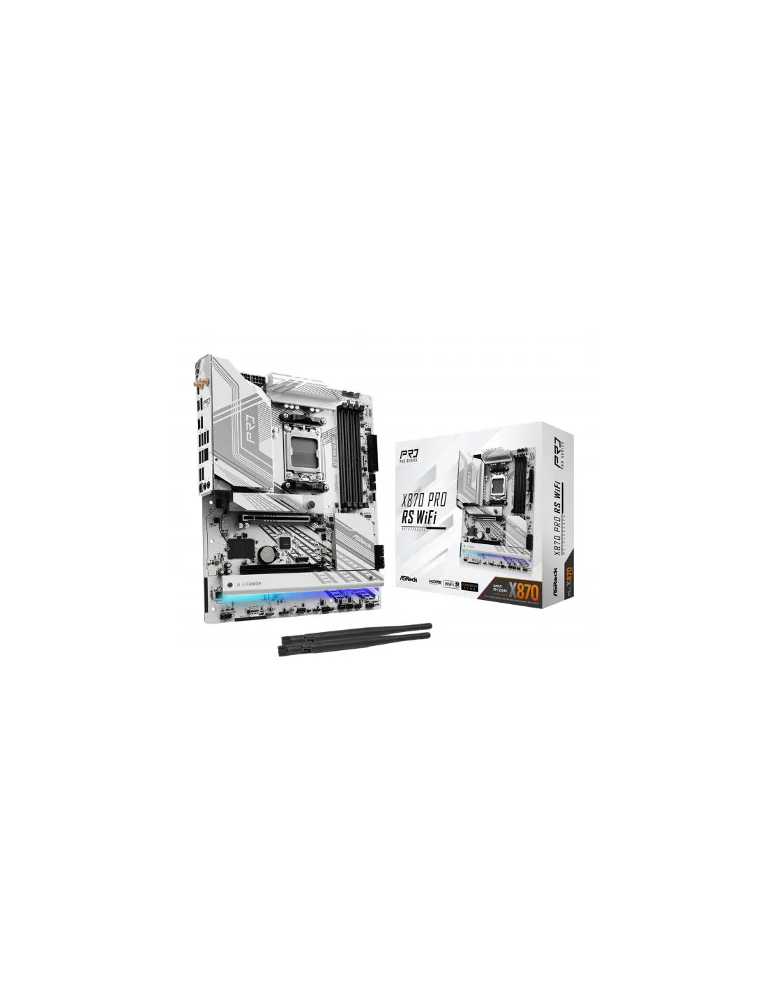 Asrock X870 Pro RS WiFi. Produttore processore: AMD, Presa per processore: Socket AM5, Processori compatibili: AMD Ryzen 7000 Series, AMD Ryzen 8000 Series, AMD Ryzen 9000 Series. Tipi di memoria supportati: DDR5-SDRAM, RAM massima supportata: 256 GB, tipo di slot di memoria: DIMM. Interfacce dell'unità di archiviazione supportate: M.2, SATA III, Tipi di unità di archiviazione supportate: HDD & SSD, Livelli RAID: 0, 1. Tecnologia di processo parallela: CrossFire. Tipo di interfaccia Ethernet: 2.5 Gigabit Ethernet, Controller LAN: Dragon RTL8125BG, Wi-Fi standard: Wi-Fi 7 (802.11be)