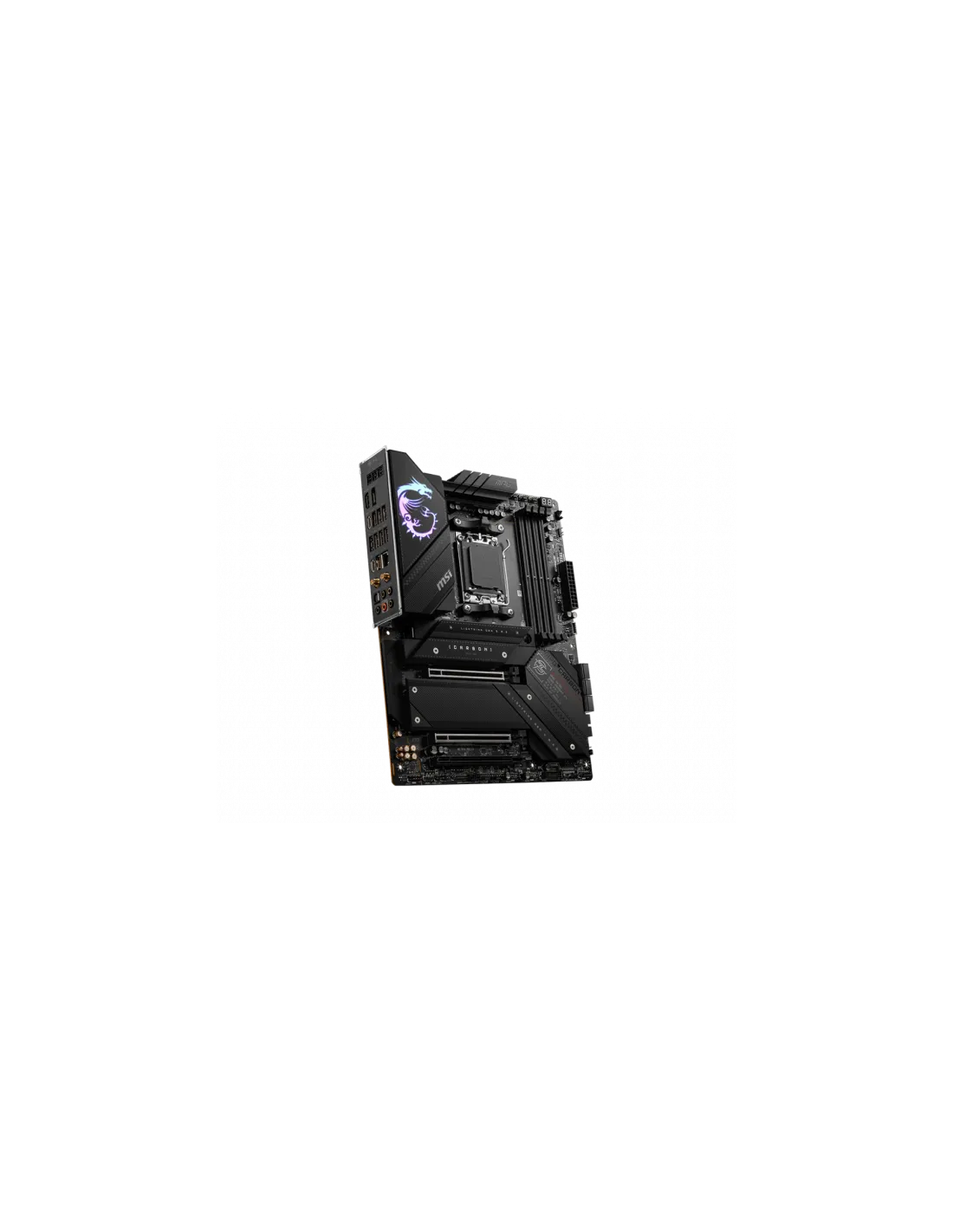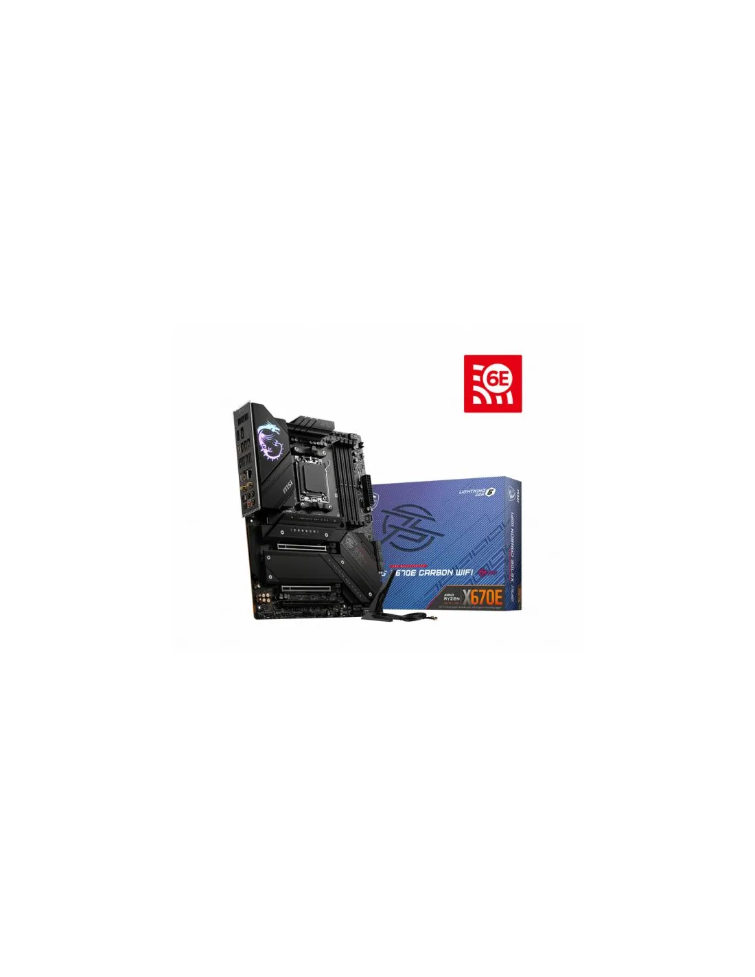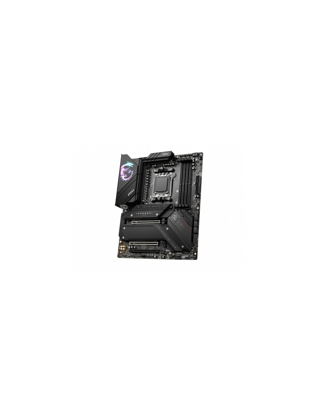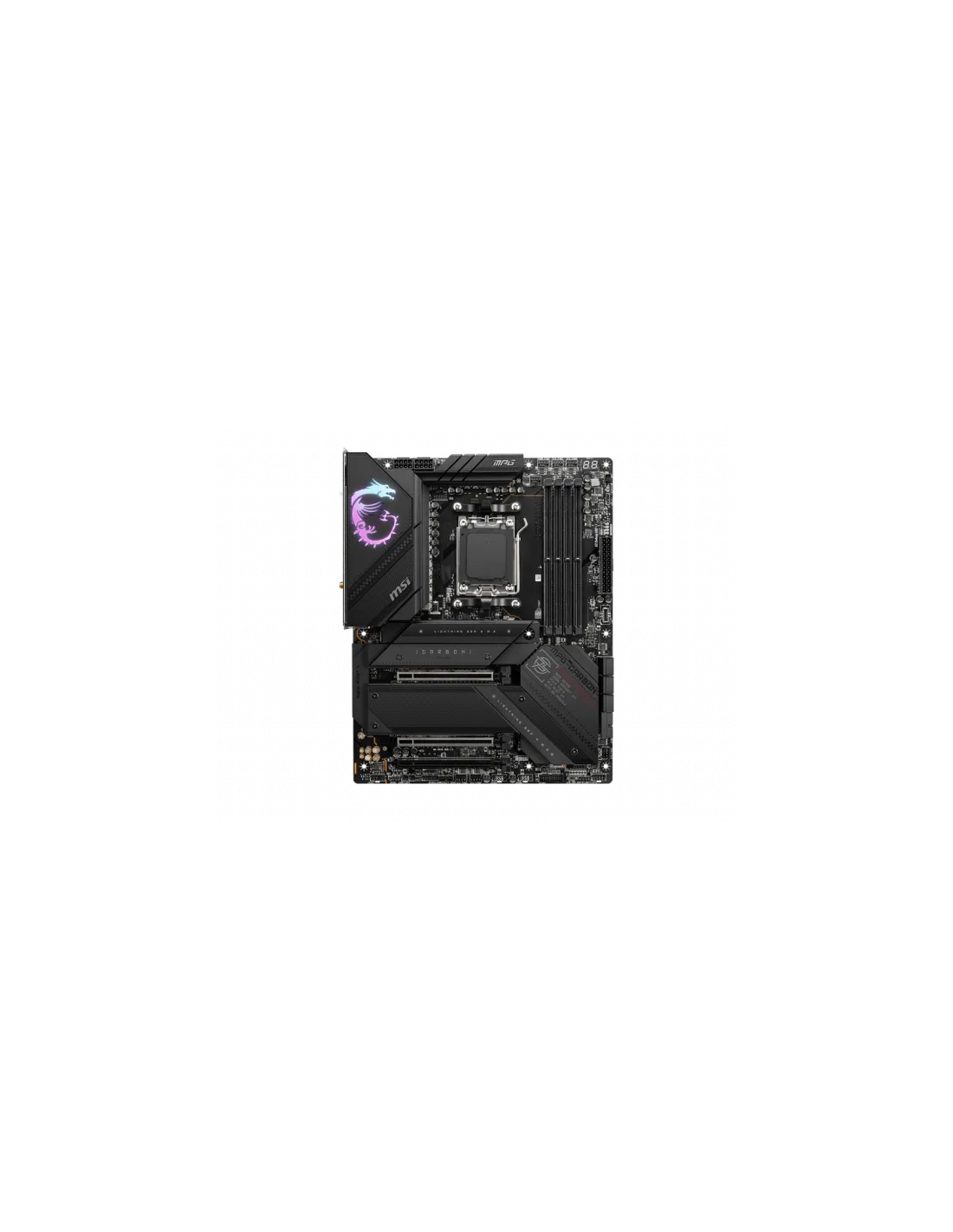 MSI MPG X670E CARBON WIFI. Produttore processore: AMD, Presa per processore: Socket AM5, Processori compatibili: AMD Ryzen™ 7. Tipi di memoria supportati: DDR5-SDRAM, RAM massima supportata: 128 GB, tipo di slot di memoria: DIMM. Interfacce dell'unità di archiviazione supportate: M.2, SATA II, Tipi di unità di archiviazione supportate: HDD & SSD, Livelli RAID: 0, 1, 10. Tipo di interfaccia Ethernet: 2.5 Gigabit Ethernet, Controller LAN: Realtek RTL8125-BG, Wi-Fi standard: Wi-Fi 6E (802.11ax). Componente per: PC, Fattore di forma scheda madre: ATX, Famiglia di chipset per scheda madre: AMD
