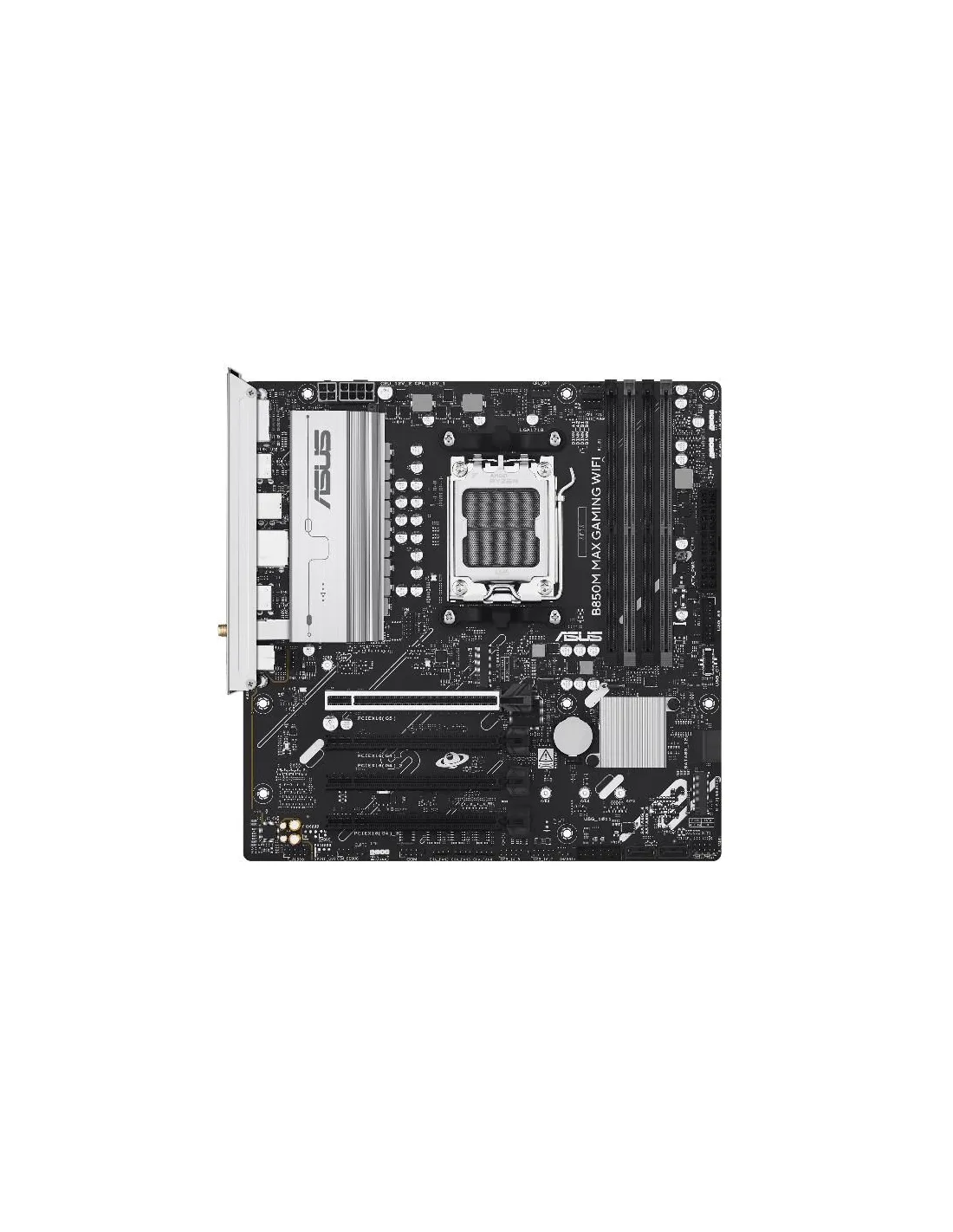 ASUS B850M MAX GAMING WIFI. Produttore processore: AMD, Presa per processore: Socket AM5, Processori compatibili: AMD Ryzen 7000 Series, AMD Ryzen 8000 Series, AMD Ryzen 9000 Series. Tipi di memoria supportati: DDR5-SDRAM, RAM massima supportata: 256 GB, tipo di slot di memoria: DIMM. Interfacce dell'unità di archiviazione supportate: M.2, SATA III, Tipi di unità di archiviazione supportate: HDD & SSD, Livelli RAID: 0, 1, 5, 10. Tipo di interfaccia Ethernet: Gigabit Ethernet, Wi-Fi standard: Wi-Fi 6 (802.11ax), Standard Wi-Fi: Wi-Fi 6 (802.11ax). Componente per: PC, Fattore di forma scheda madre: micro ATX, Famiglia di chipset per scheda madre: AMD