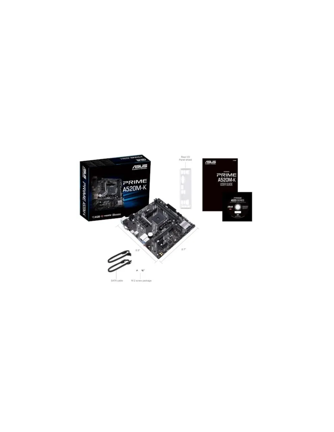 ASUS PRIME A520M-K. Produttore processore: AMD, Presa per processore: Socket AM4, Processori compatibili: AMD Ryzen™ 3, AMD Ryzen™ 5, AMD Ryzen™ 7. Tipi di memoria supportati: DDR4-SDRAM, RAM massima supportata: 64 GB, tipo di slot di memoria: DIMM. Interfacce dell'unità di archiviazione supportate: M.2, SATA III, Tipi di unità di archiviazione supportate: HDD & SSD, Livelli RAID: 0, 1, 10. Connettore USB: USB tipo A. Tipo di interfaccia Ethernet: Gigabit Ethernet, Controller LAN: Realtek RTL8111H