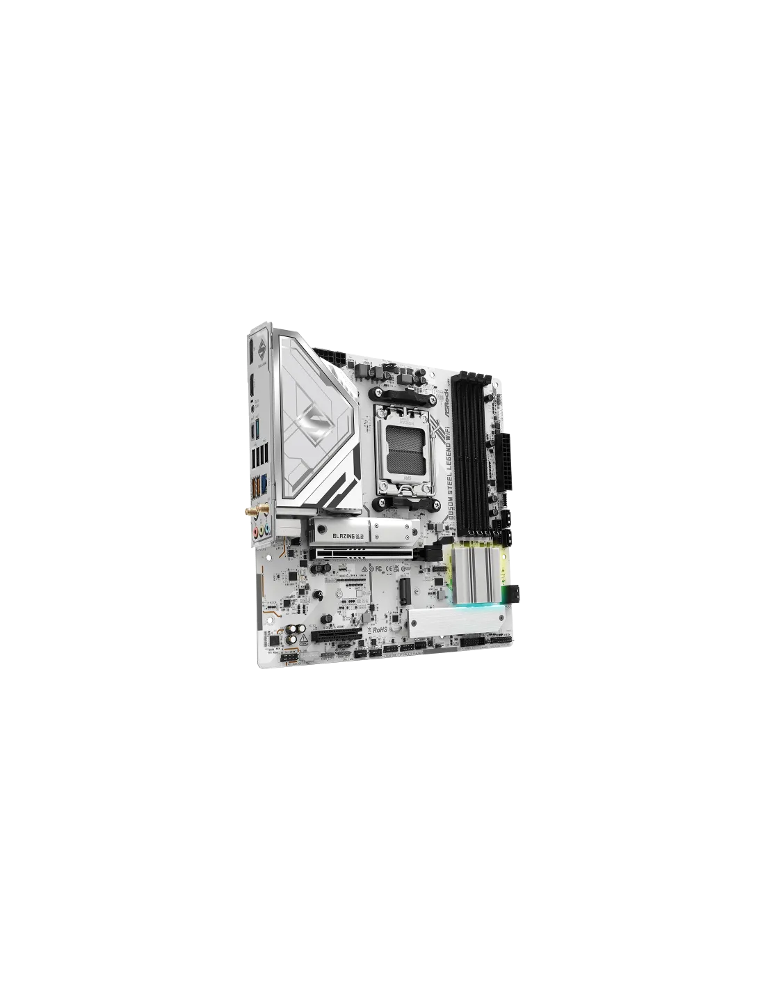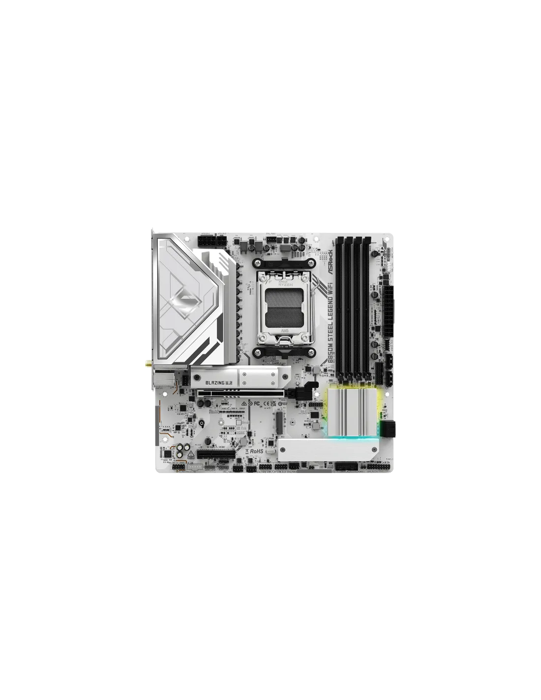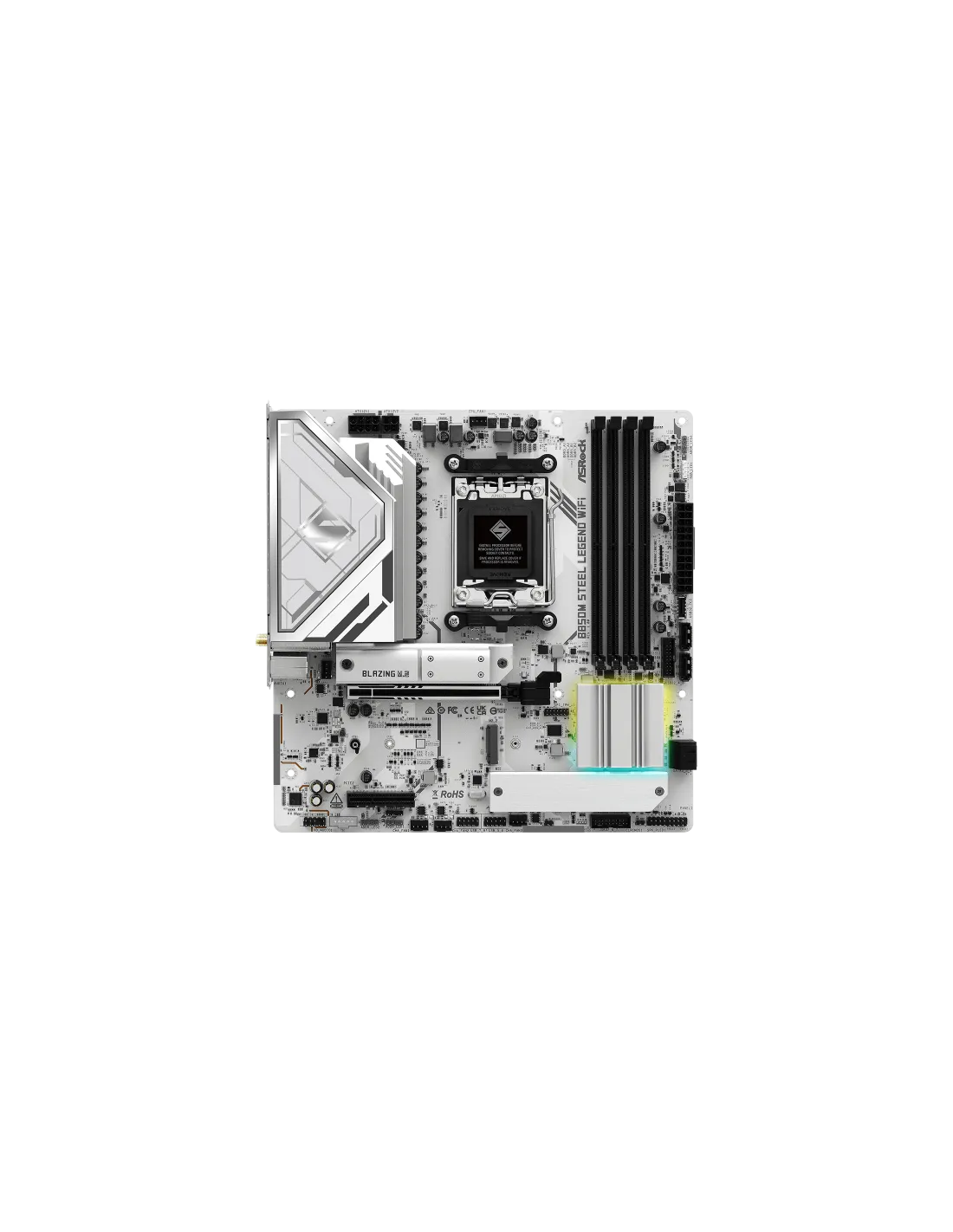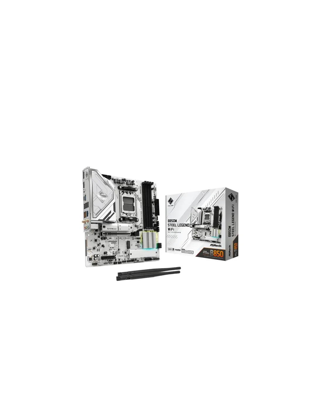 Asrock B850M Steel Legend WiFi. Produttore processore: AMD, Presa per processore: Socket AM5, Processori compatibili: AMD Ryzen 7000 Series, AMD Ryzen 8000 Series, AMD Ryzen 9000 Series. Tipi di memoria supportati: DDR5-SDRAM, RAM massima supportata: 256 GB, tipo di slot di memoria: DIMM. Interfacce dell'unità di archiviazione supportate: PCI Express 4.0, PCI Express 5.0, SATA III, Tipi di unità di archiviazione supportate: HDD & SSD, Livelli RAID: 0, 1, 10. Risoluzione massima: 3840 x 2160 Pixel. Connettore USB: USB tipo A, USB tipo-C