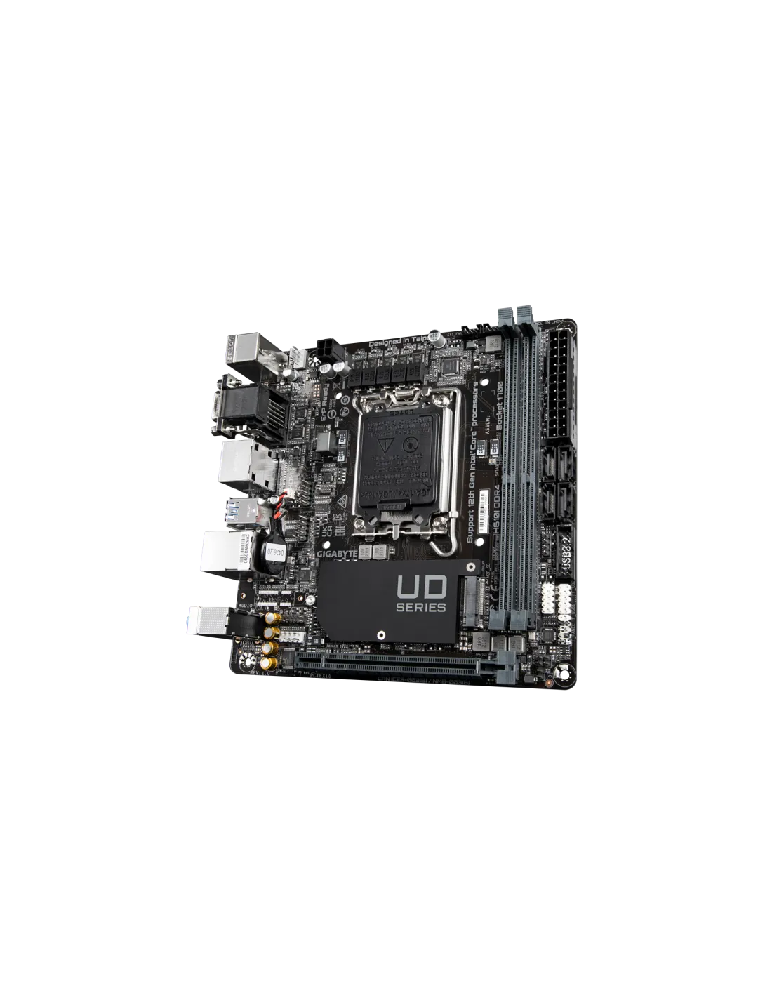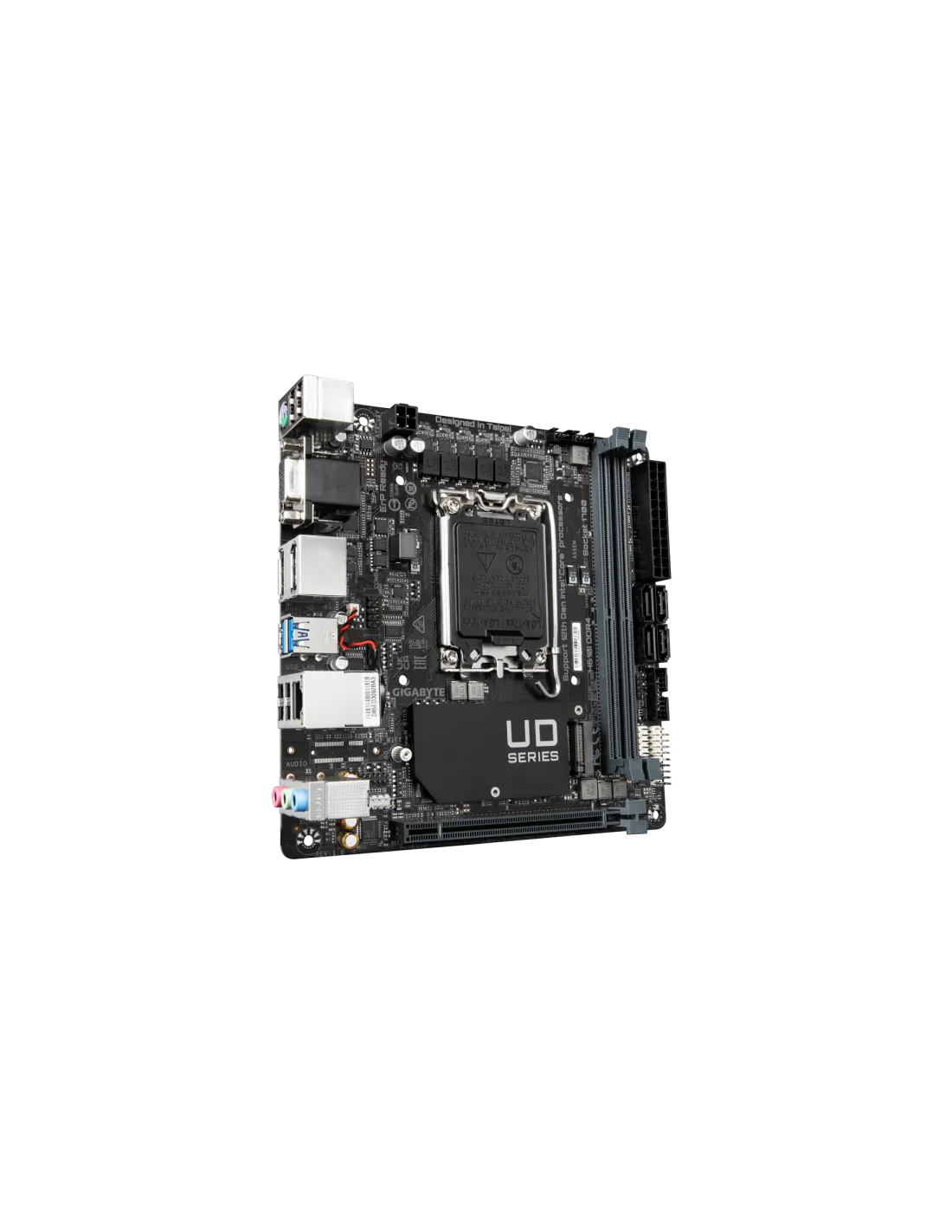 GIGABYTE H610I DDR4 Scheda madre - Supporta processori Intel Core 14th CPUs, 4+1+1 Hybrid Digital VRM, up to 3200MHz DDR4, 1xPCIe 3.0 M.2, GbE LAN, USB 3.2 Gen 1. Produttore processore: Intel, Presa per processore: LGA 1700, Processori compatibili: Intel® Celeron®, Intel® Core™ i3, Intel® Core™ i5, Intel® Core™ i7, Intel® Core™ i9,.... Tipi di memoria supportati: DDR4-SDRAM, RAM massima supportata: 64 GB, tipo di slot di memoria: DIMM. Interfacce dell'unità di archiviazione supportate: M.2, SATA III, Tipi di unità di archiviazione supportate: HDD & SSD. Risoluzione massima: 4096 x 2304 Pixel. Connettore USB: USB tipo A