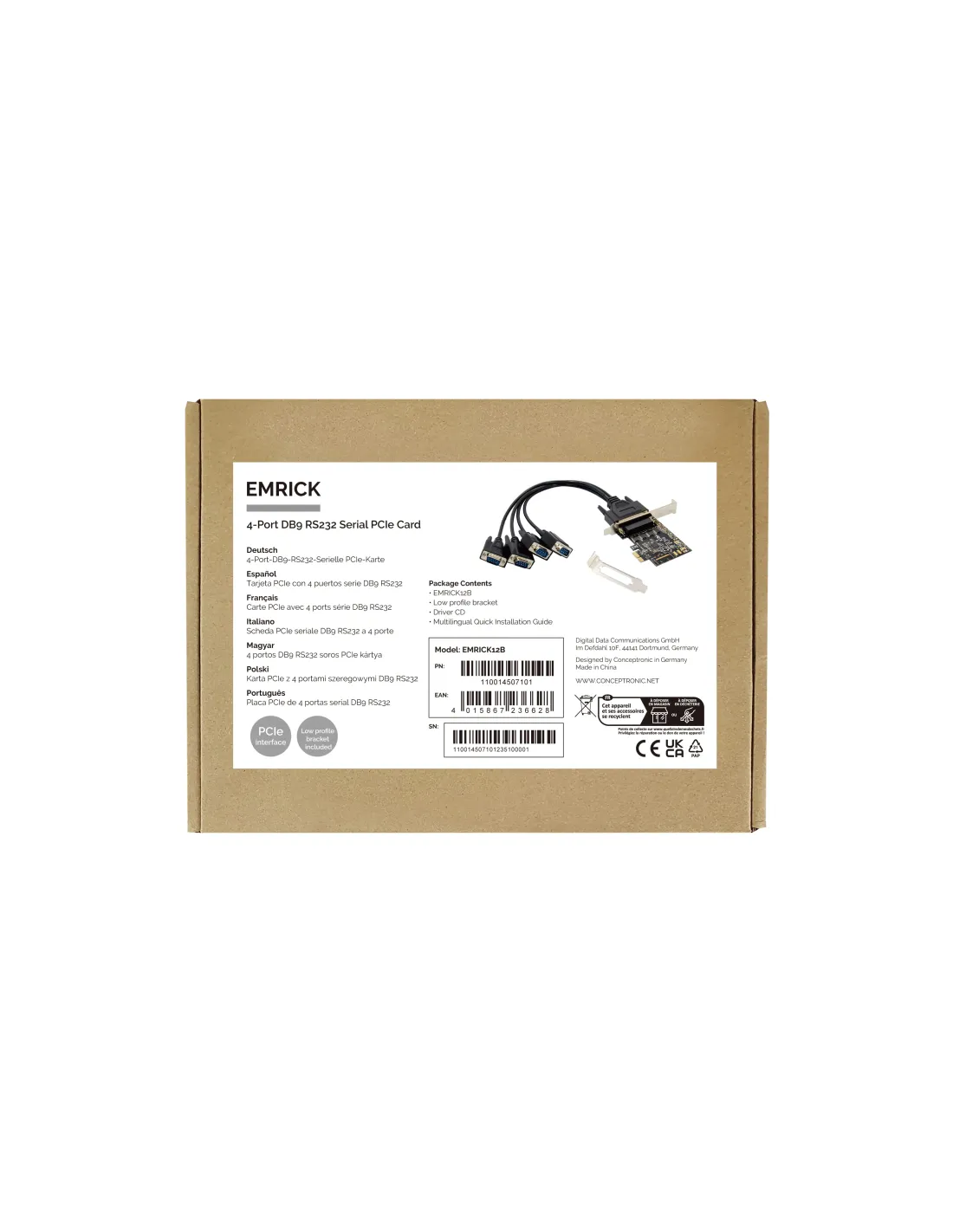 Conceptronic EMRICK12B, PCIe, RS-232, PCIe 2.0, RS-232, Nero, Cina